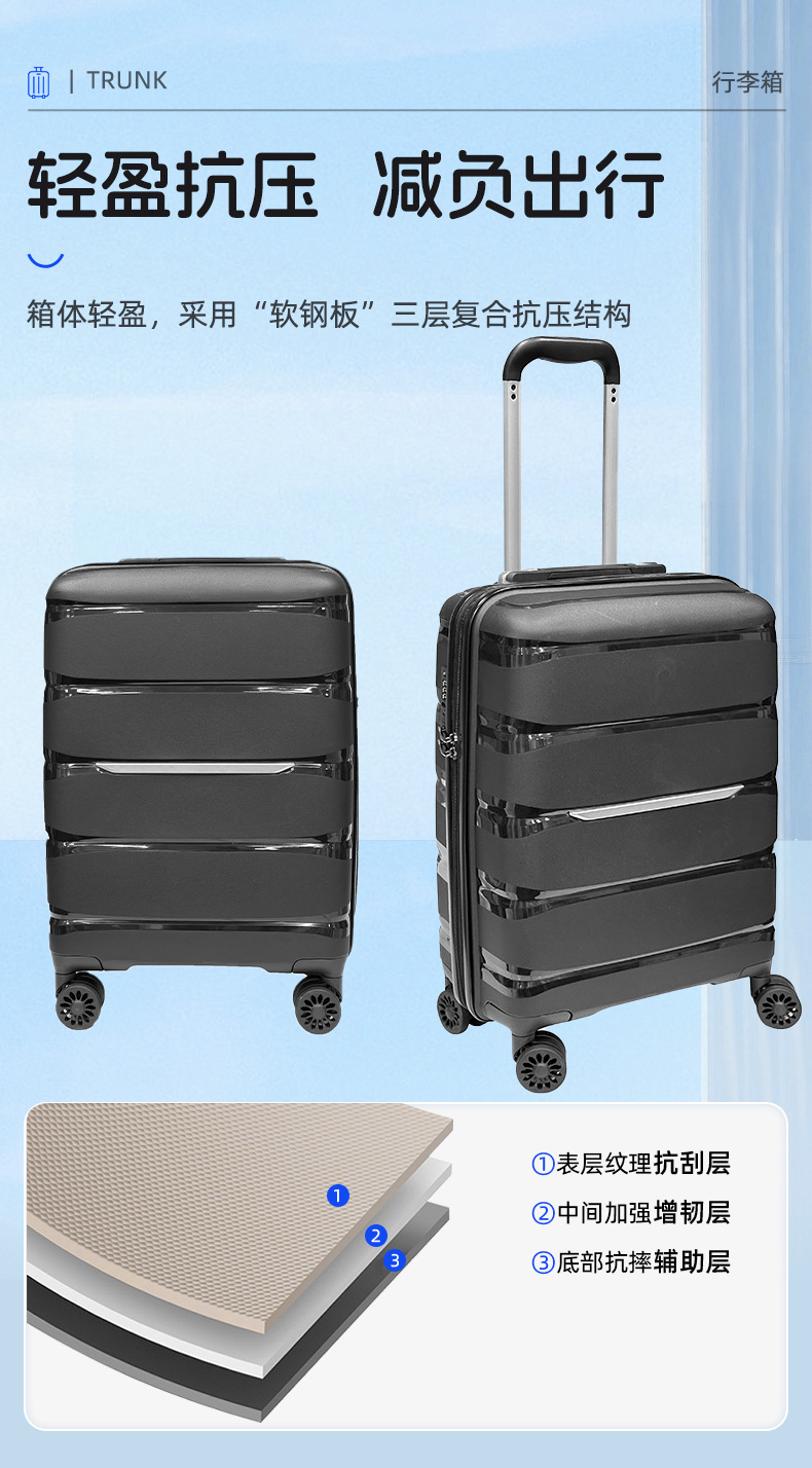 PP 수하물 케이스 세트 20/24/28 인치 수하물 케이스 3 종 인쇄 가능한 로고 유니버설 휠 탑승 수하물