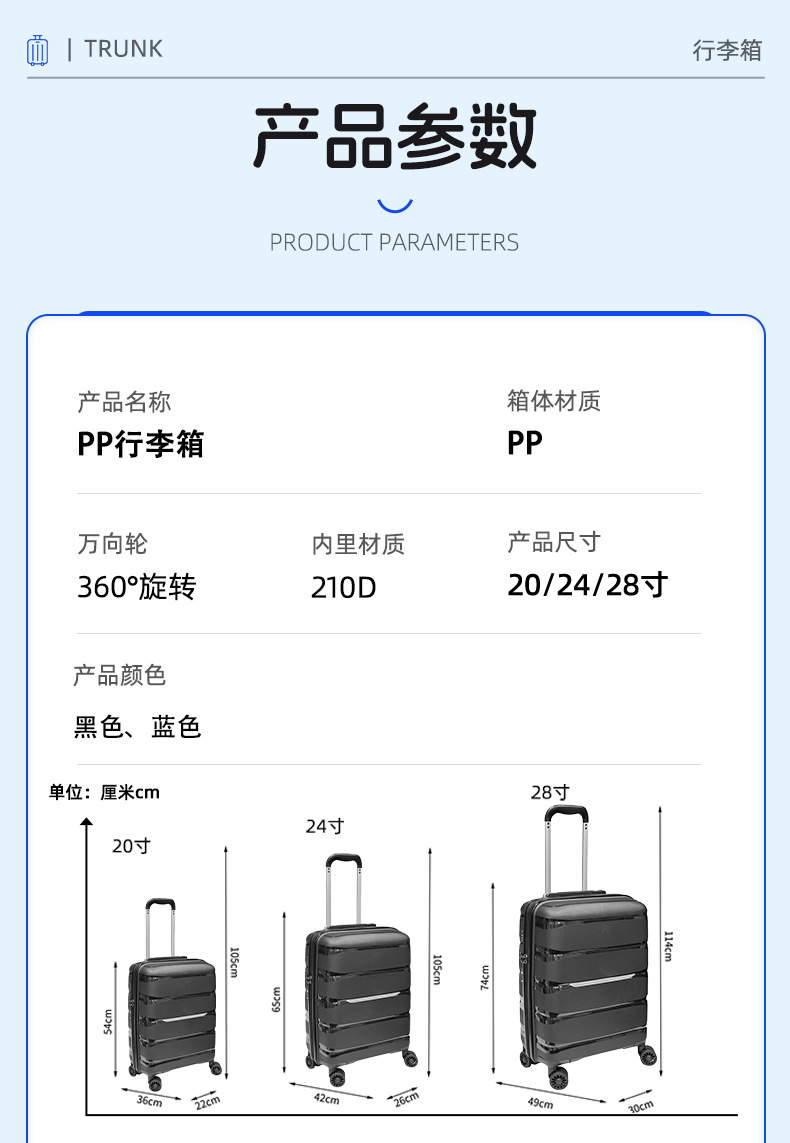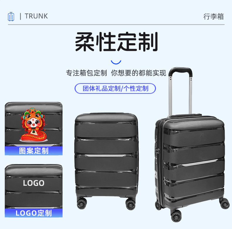 PP 수하물 케이스 세트 20/24/28 인치 수하물 케이스 3 종 인쇄 가능한 로고 유니버설 휠 탑승 수하물스토어 가기
