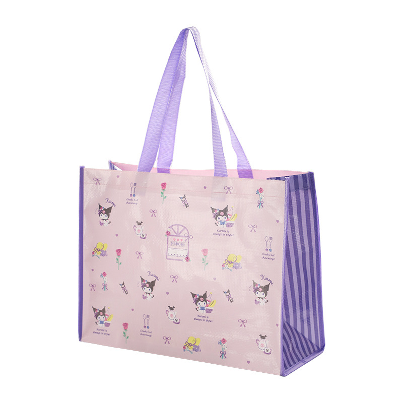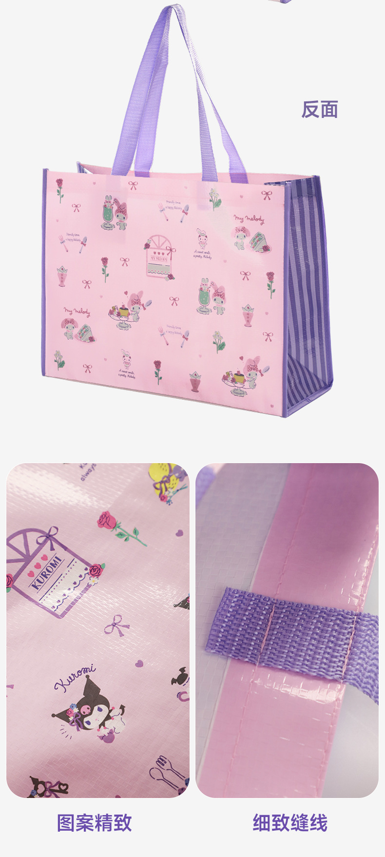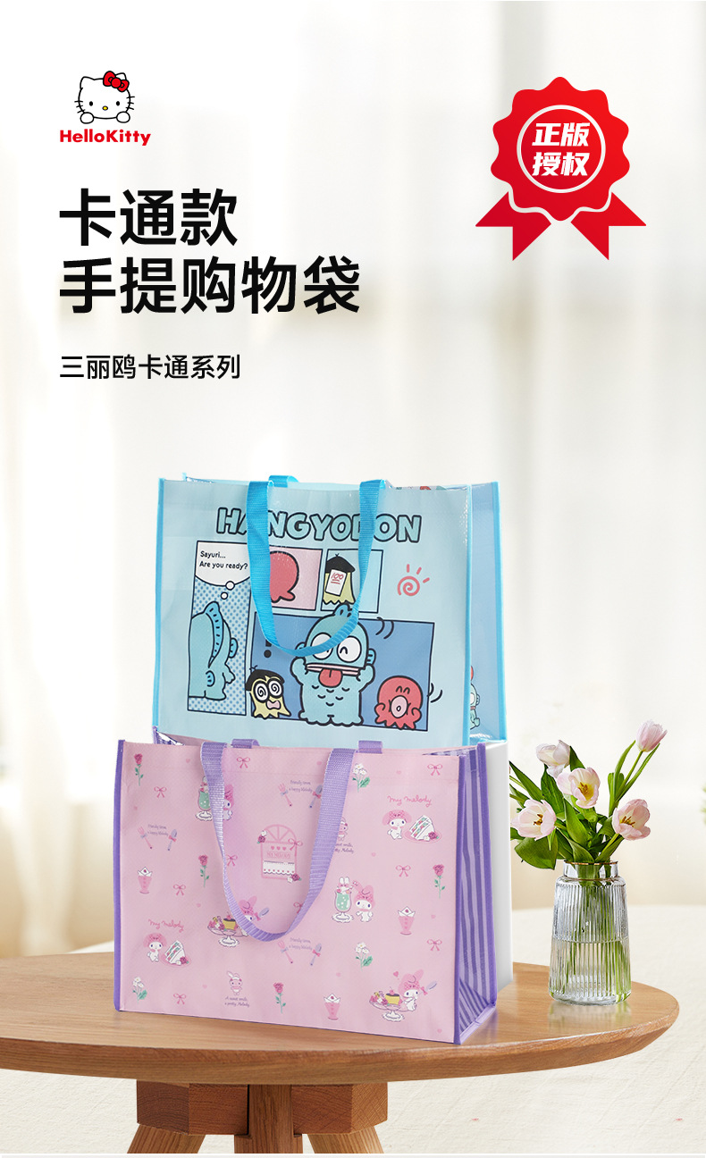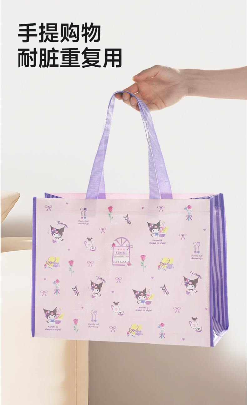 산리오 만화 귀여운 인쇄 휴대용 쇼핑백 휴대용 접이식 보관 가방 핸드백 대용량 환경 가방