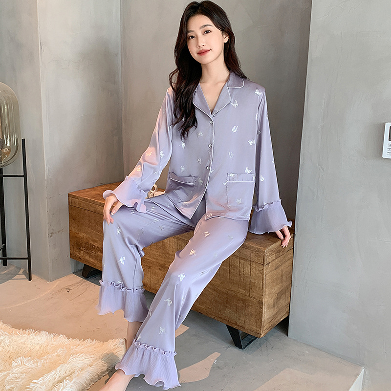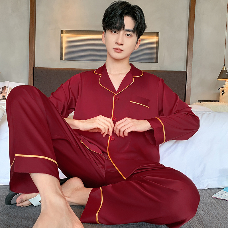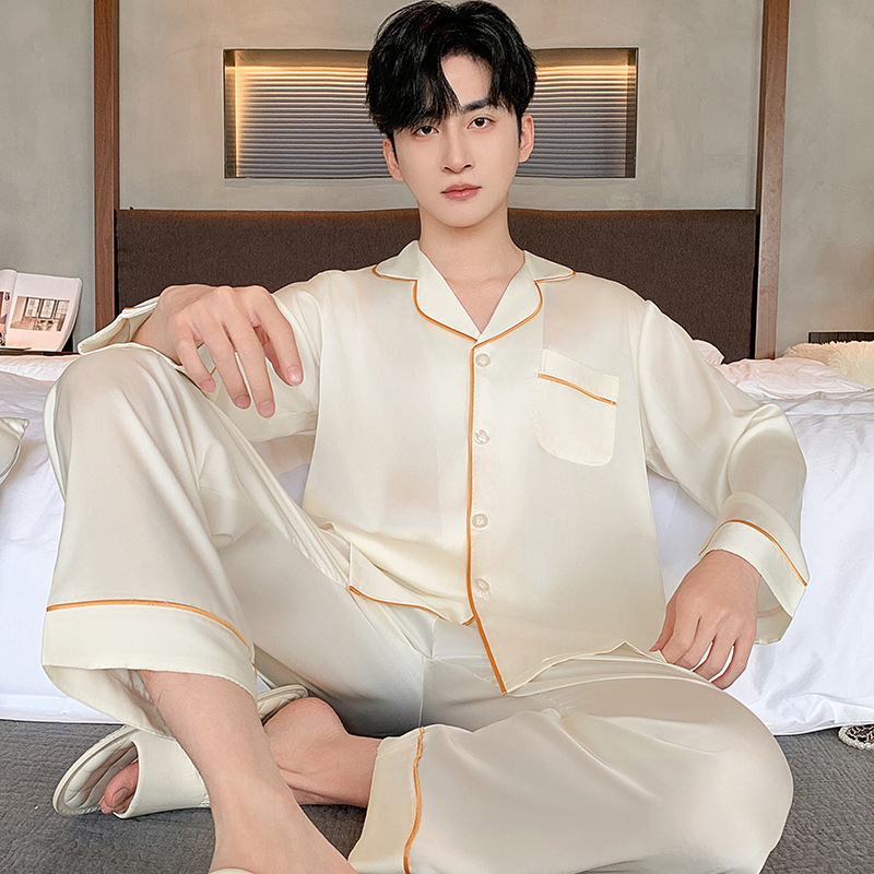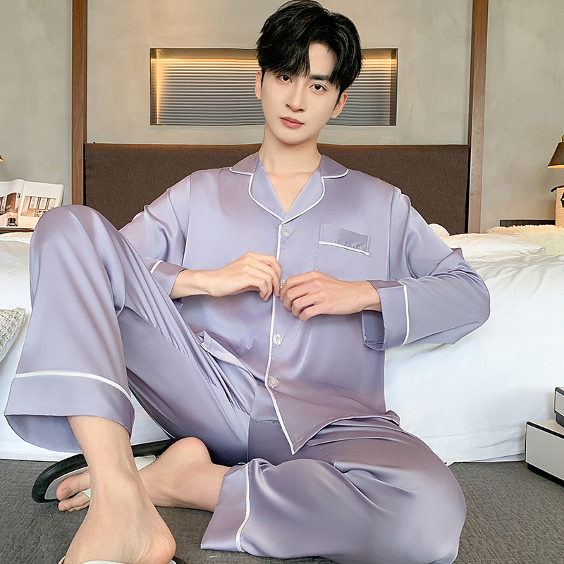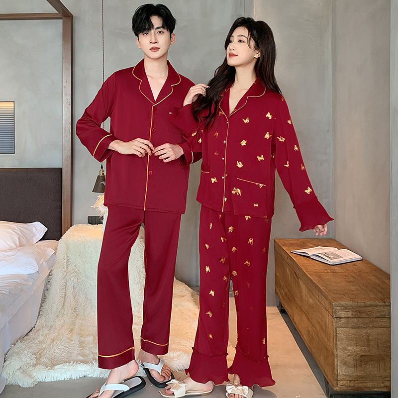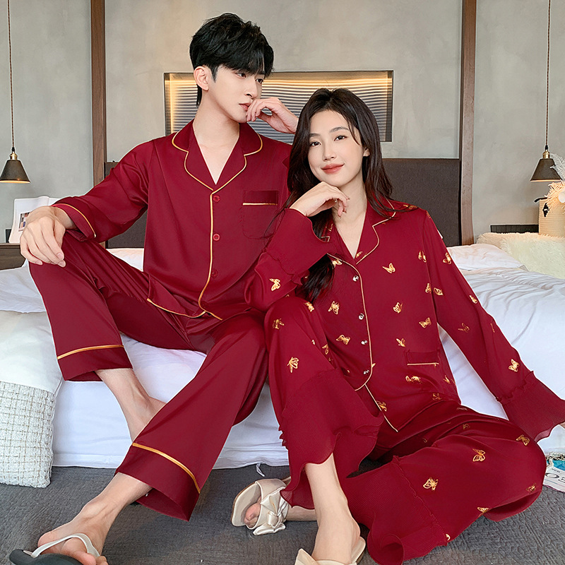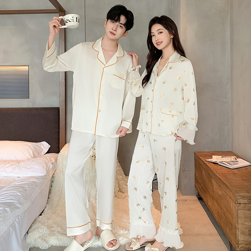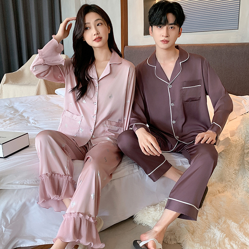 커플 잠옷 봄과 가을 새로운 새틴 여성 아이스 실크 하이 엔드 남성 여름 빛 럭셔리 홈 웨어 얇은 세트스토어 가기