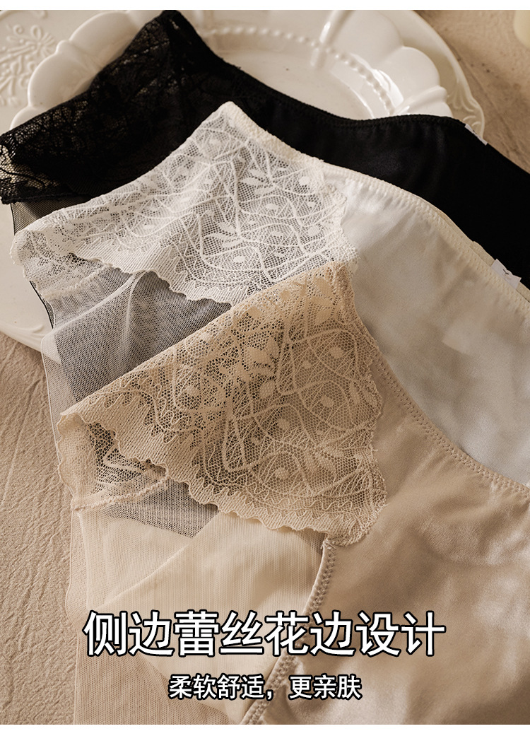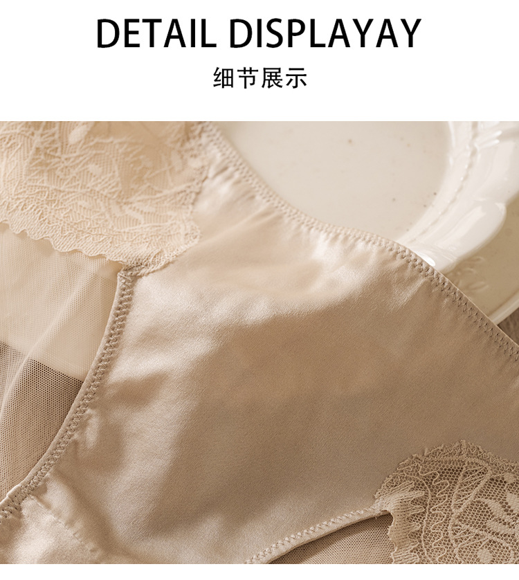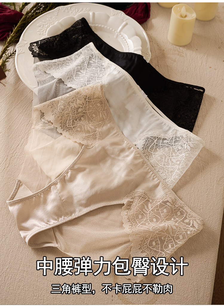 탕지 봄과 여름 실크 미드 웨이스트 여성 속옷 뽕나무 실크 레이스 섹시 레이스 통기성 힙합 랩 삼각형 반바지스토어 가기