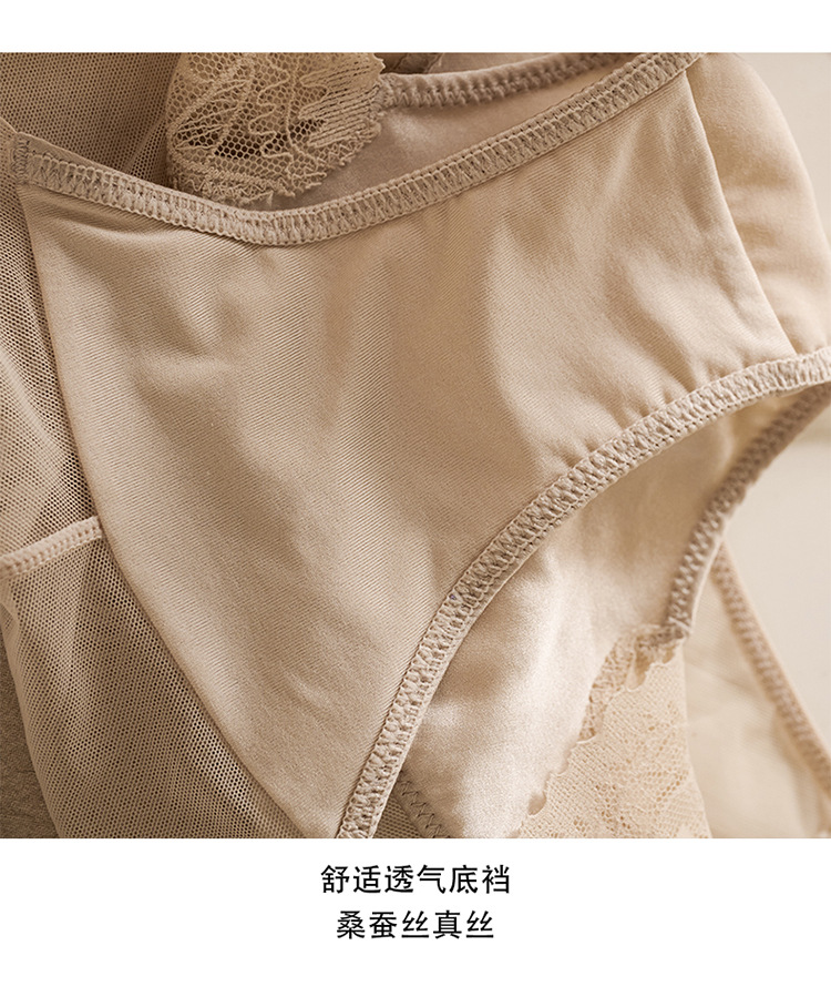 탕지 봄과 여름 실크 미드 웨이스트 여성 속옷 뽕나무 실크 레이스 섹시 레이스 통기성 힙합 랩 삼각형 반바지