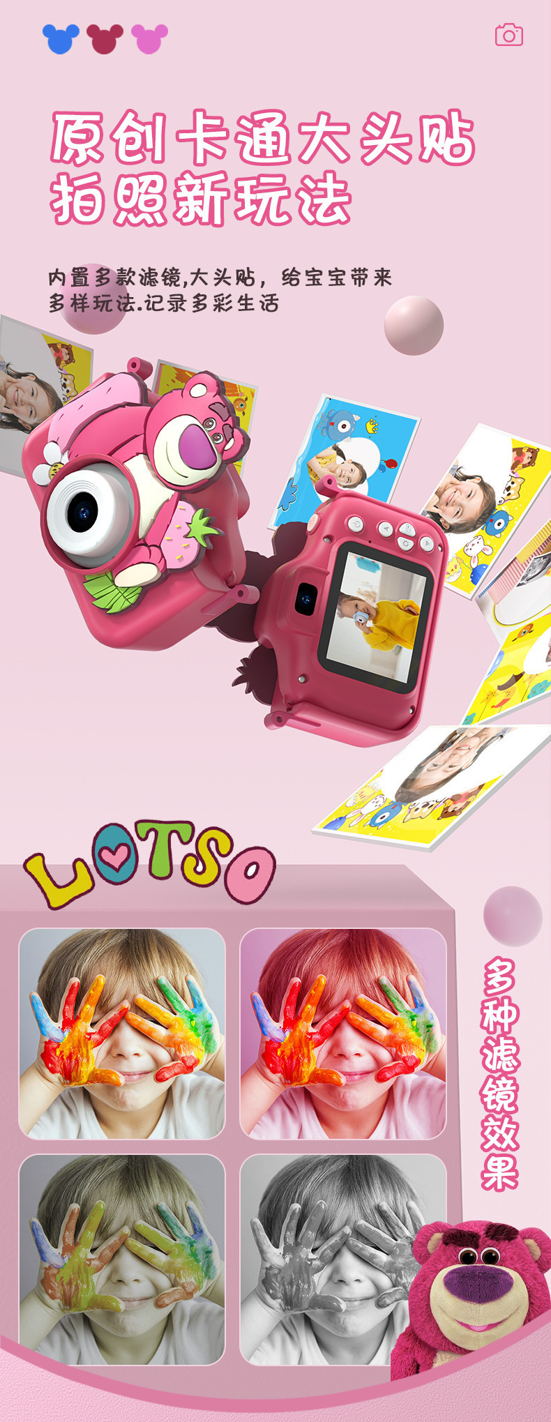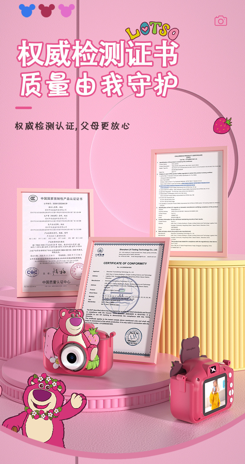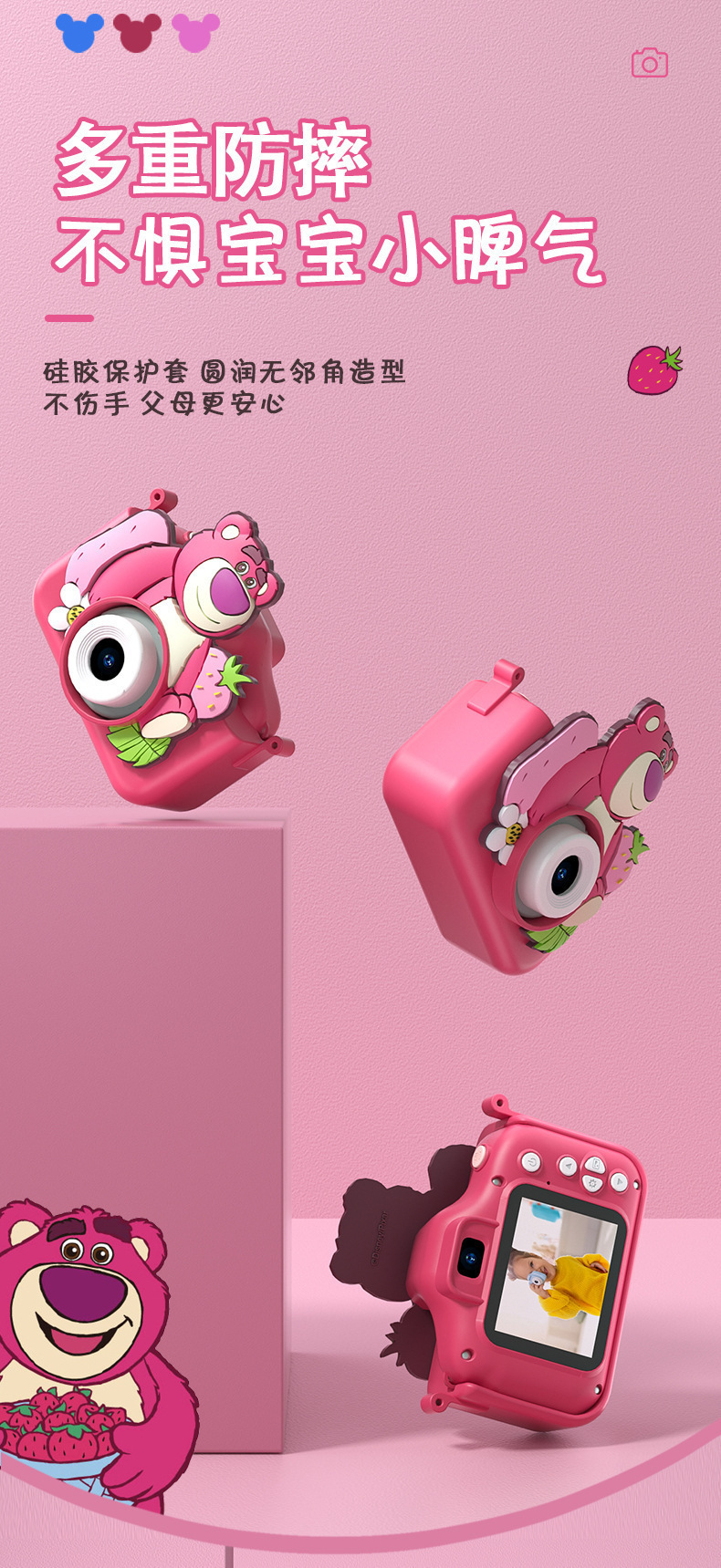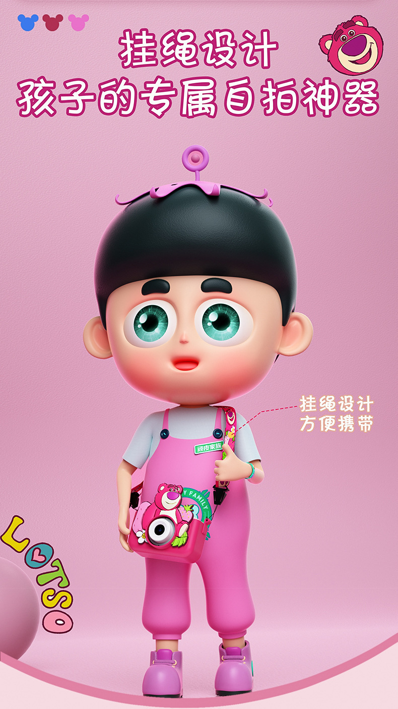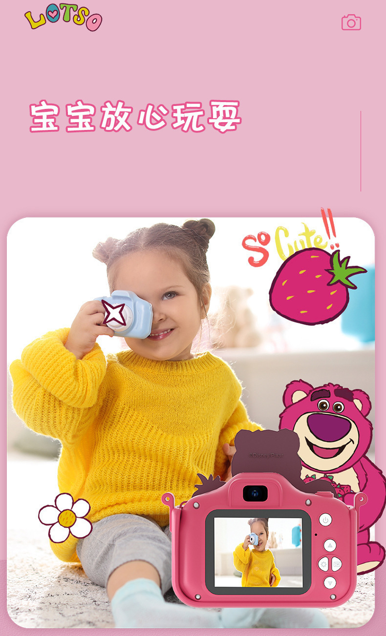 디즈니 딸기곰 어린이용 카메라 4800W 고화질 듀얼 카메라 2.4inch 어린이용 디지털 비디오 카메라 장난감스토어 가기