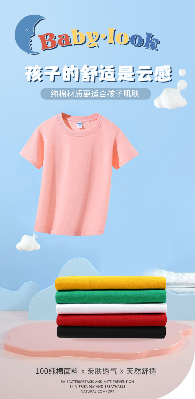 190g 아동복 순면 반팔 무지 티셔츠 라운드넥 유아 유치원 교복 교육용 로고 인쇄 가능스토어 가기