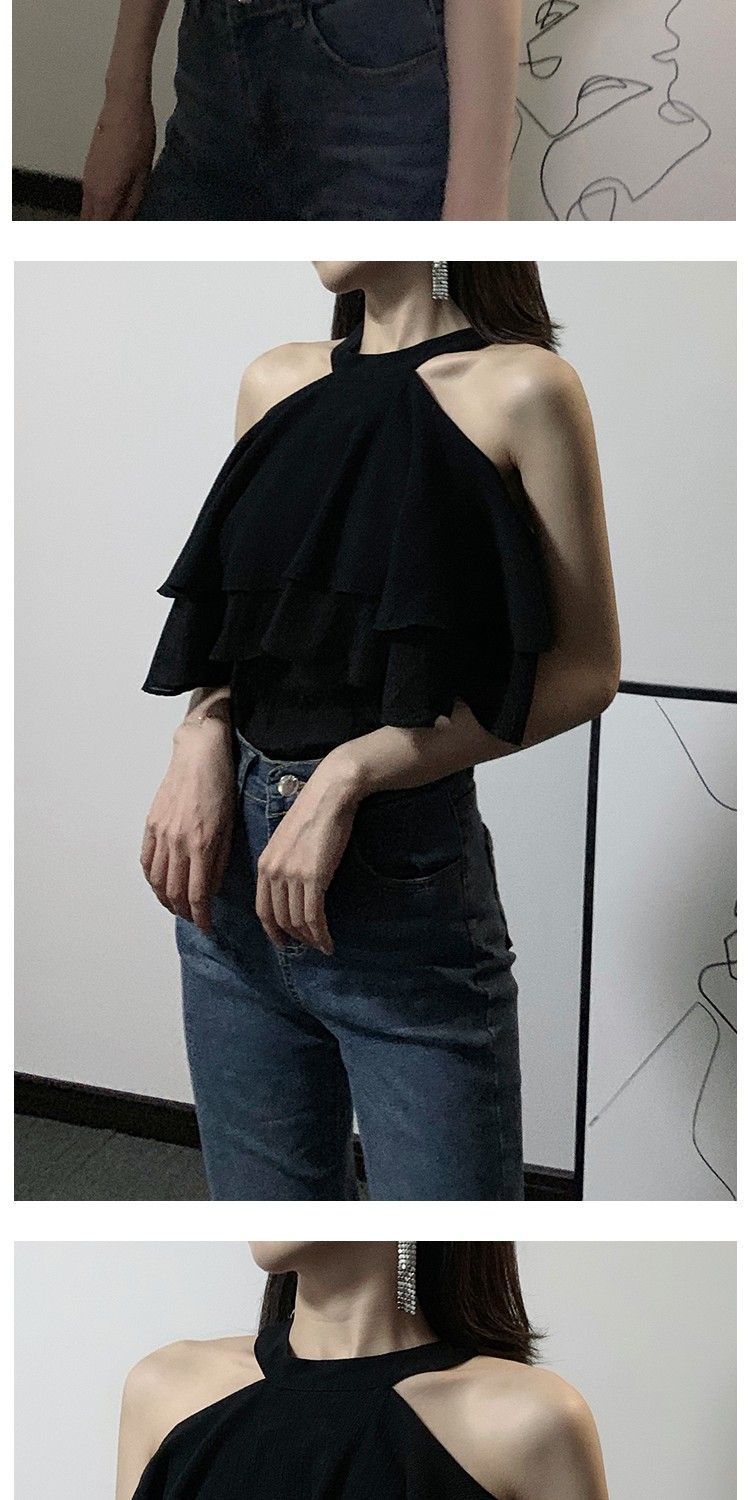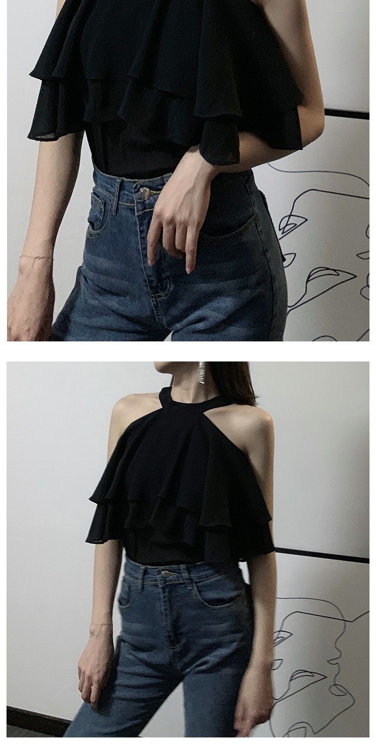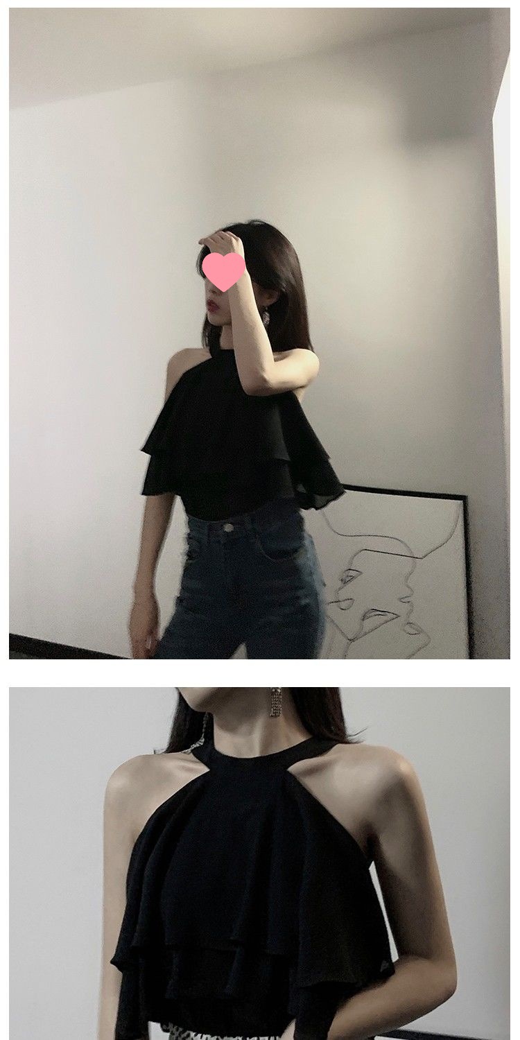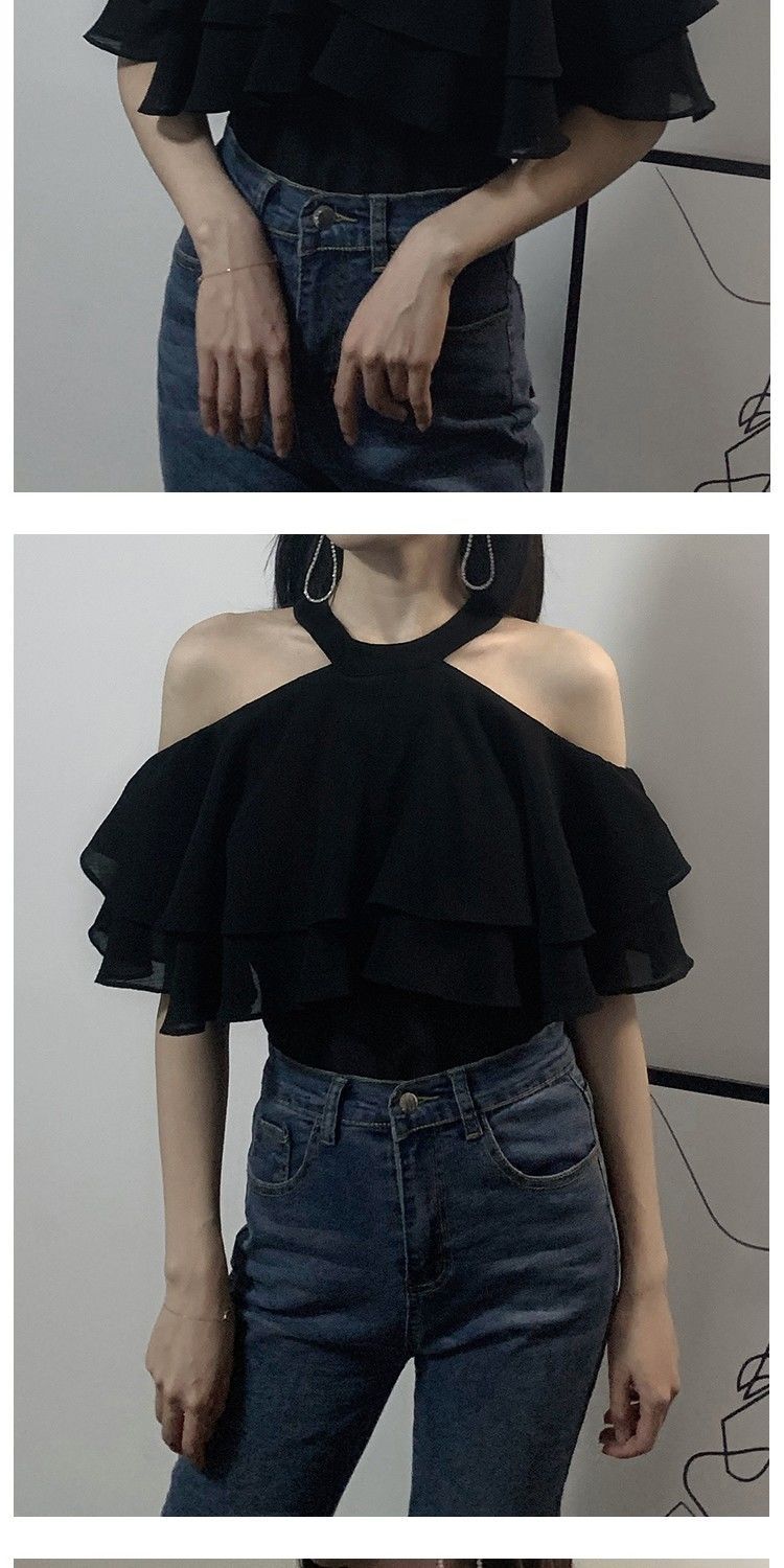 오프 숄더 쉬폰 탑 여성 여름 반팔 2025 새로운 디자인 감각 틈새 오프 숄더 쉬폰 셔츠 스위트 플랍스토어 가기