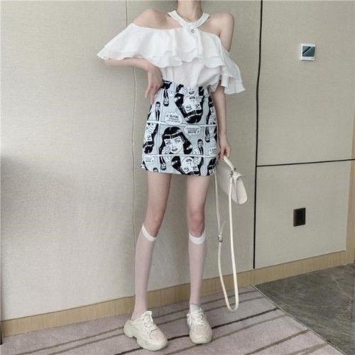 오프 숄더 쉬폰 탑 여성 여름 반팔 2025 새로운 디자인 감각 틈새 오프 숄더 쉬폰 셔츠 스위트 플랍