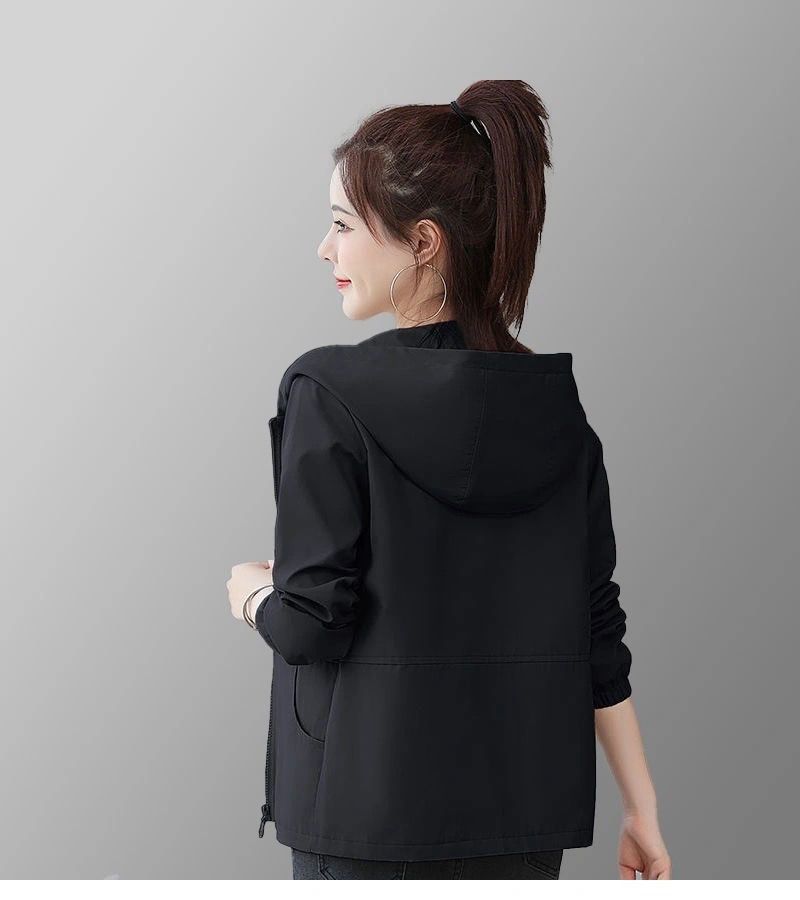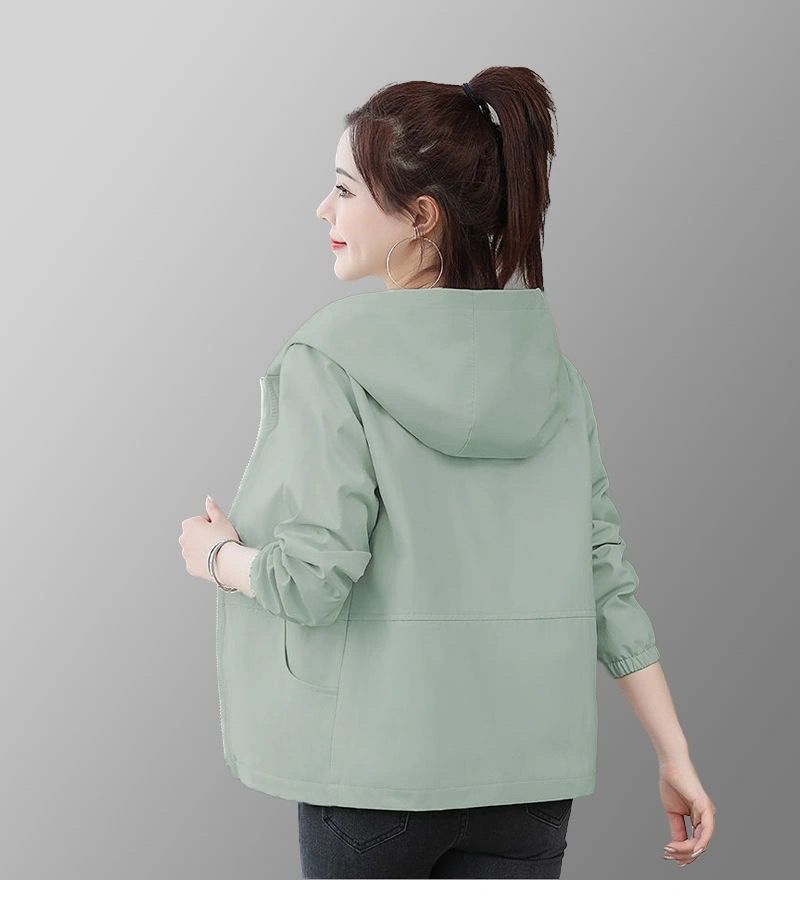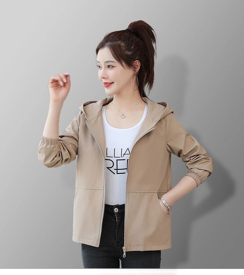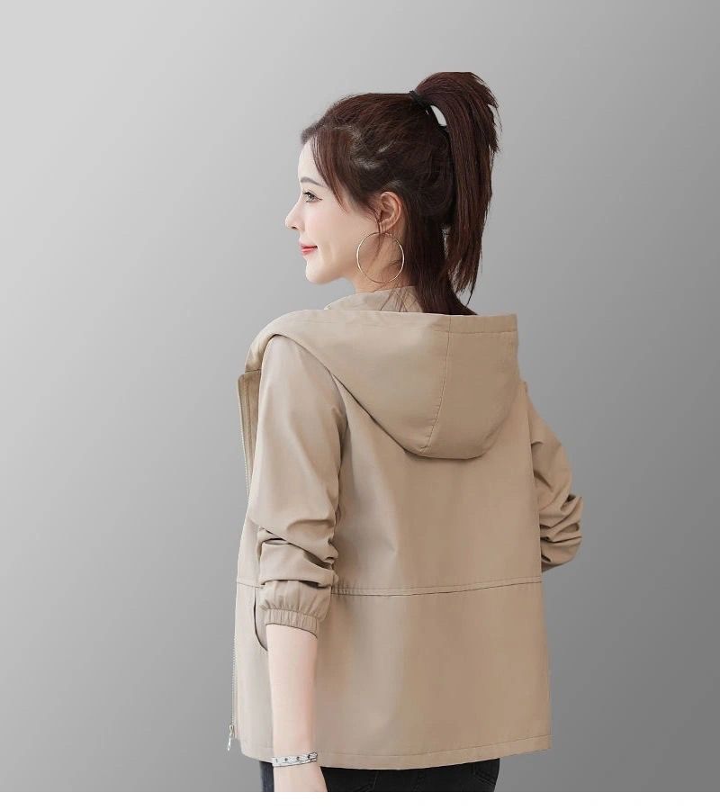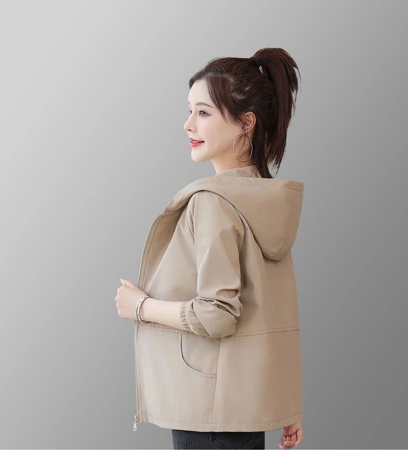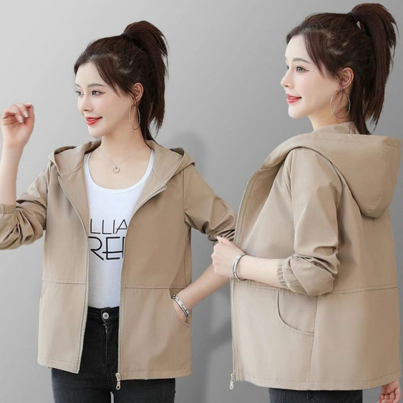 2025 새로운 봄과 가을 코트 여자 짧은 캐주얼 올 매치 느슨한 코트 후드 재킷