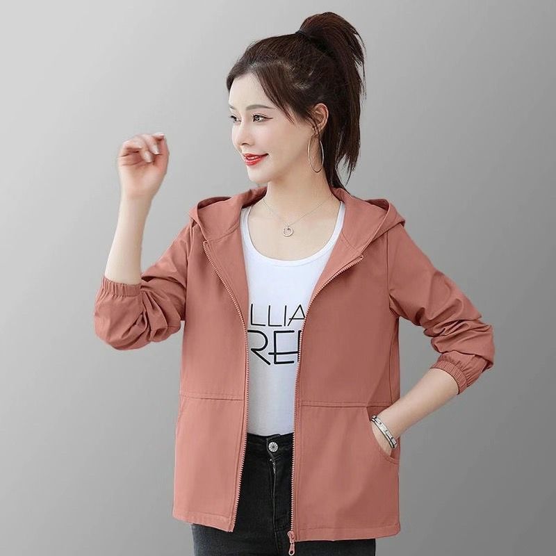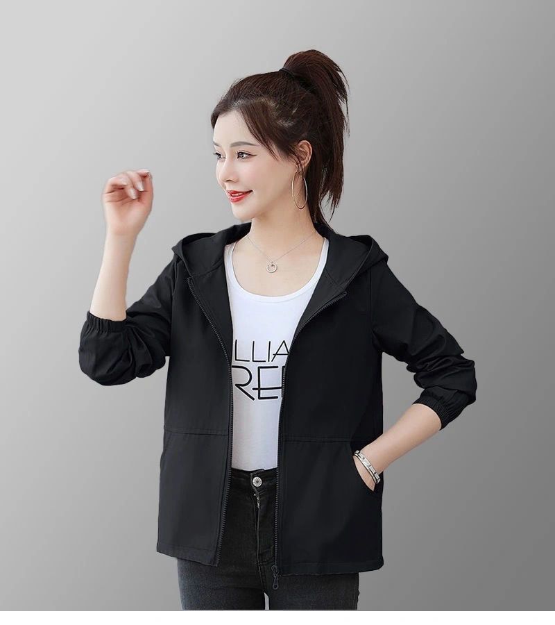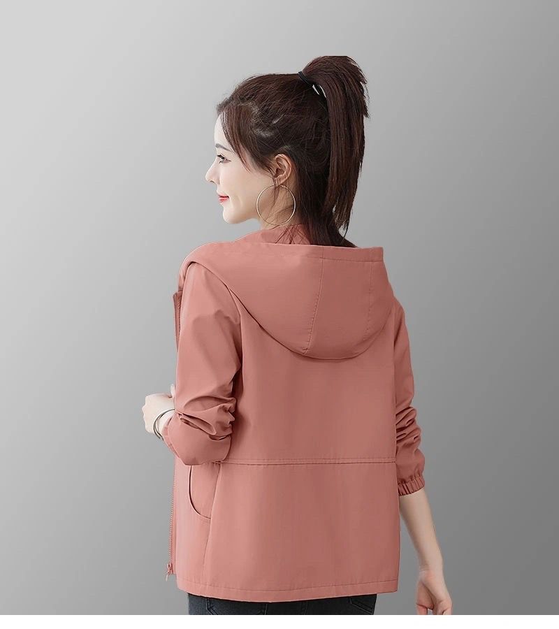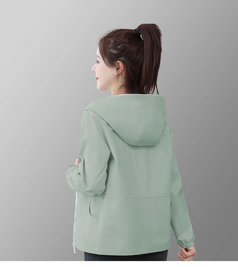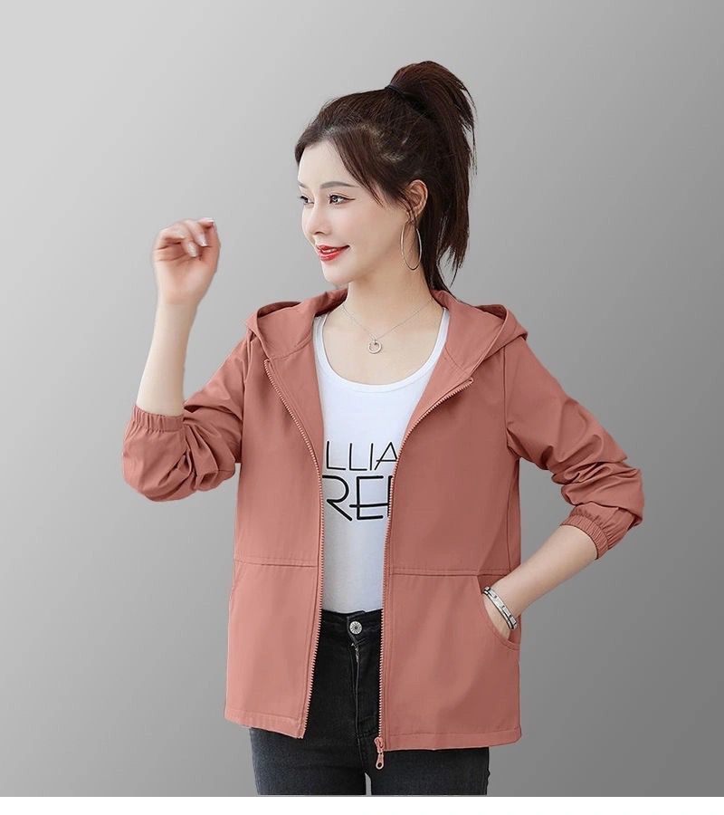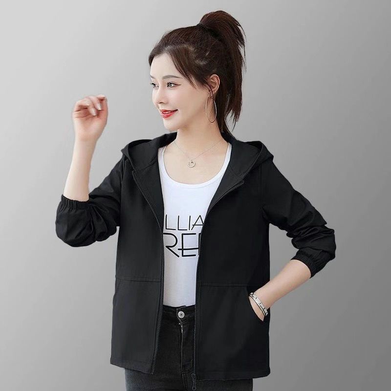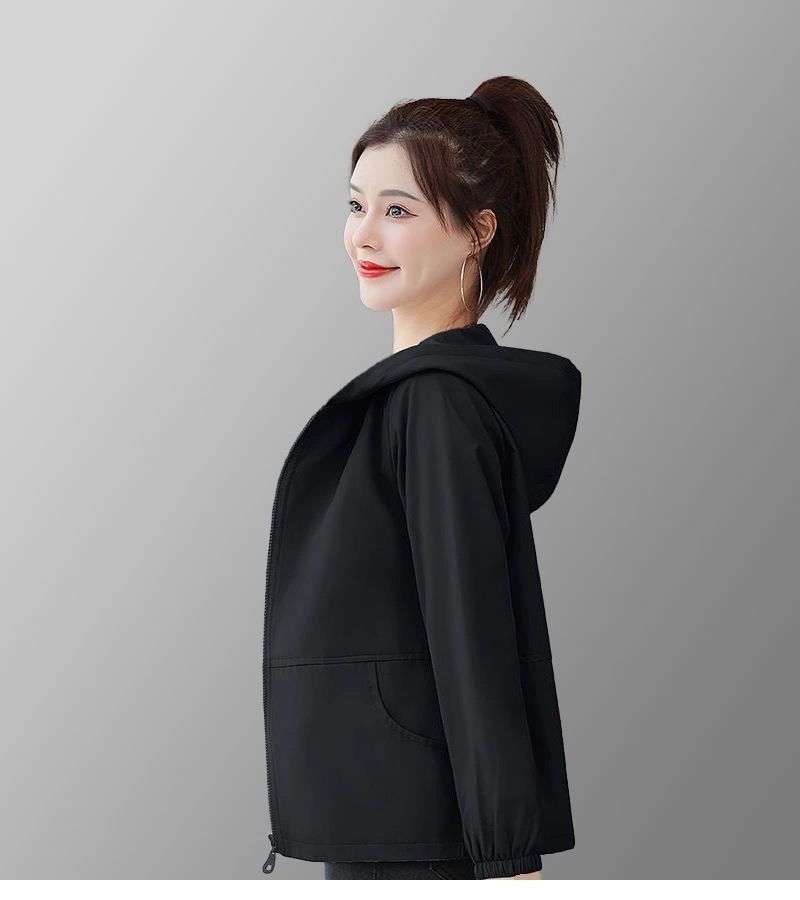 2025 새로운 봄과 가을 코트 여자 짧은 캐주얼 올 매치 느슨한 코트 후드 재킷