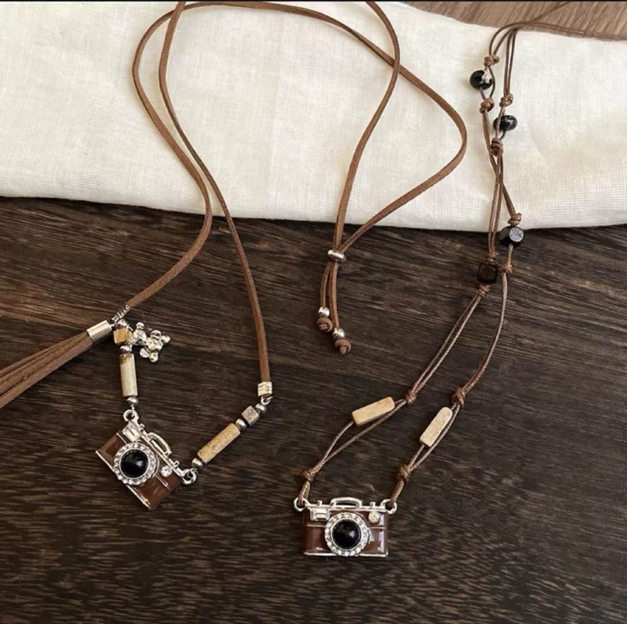 • 천연석 브라운 카메라 목걸이