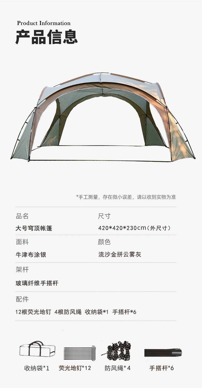 야외 캠핑 초대형 공간 다인용 차양 및 방수 텐트 여행 캠핑 돔형 텐트 장비 휴대용스토어 가기