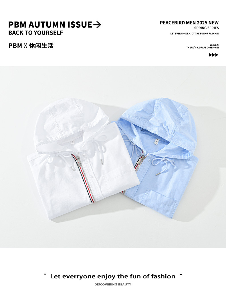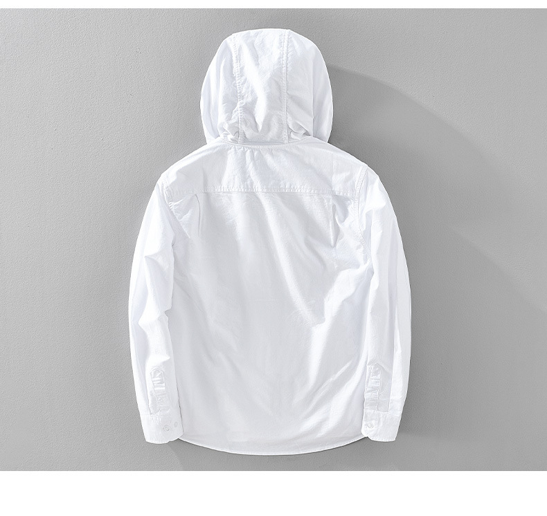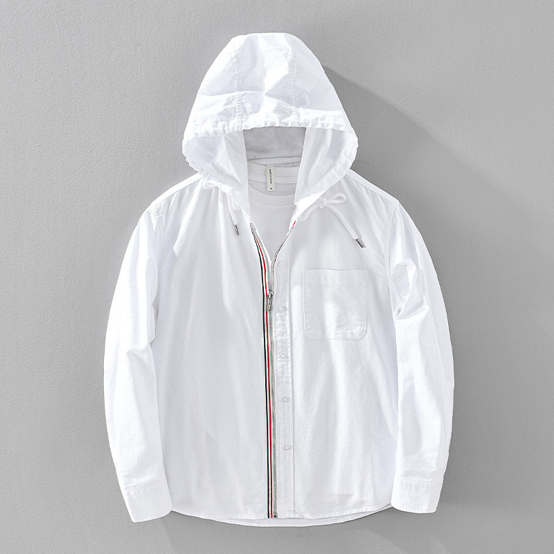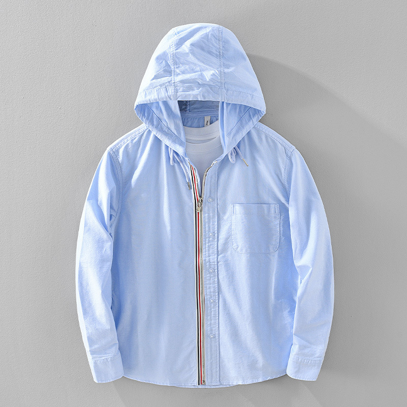 2451 스프링 옥스포드 스피닝 셔츠 남성 스트라이프 아메리칸 캐주얼 후드 셔츠 루즈 지퍼 홍콩 스타일 자켓