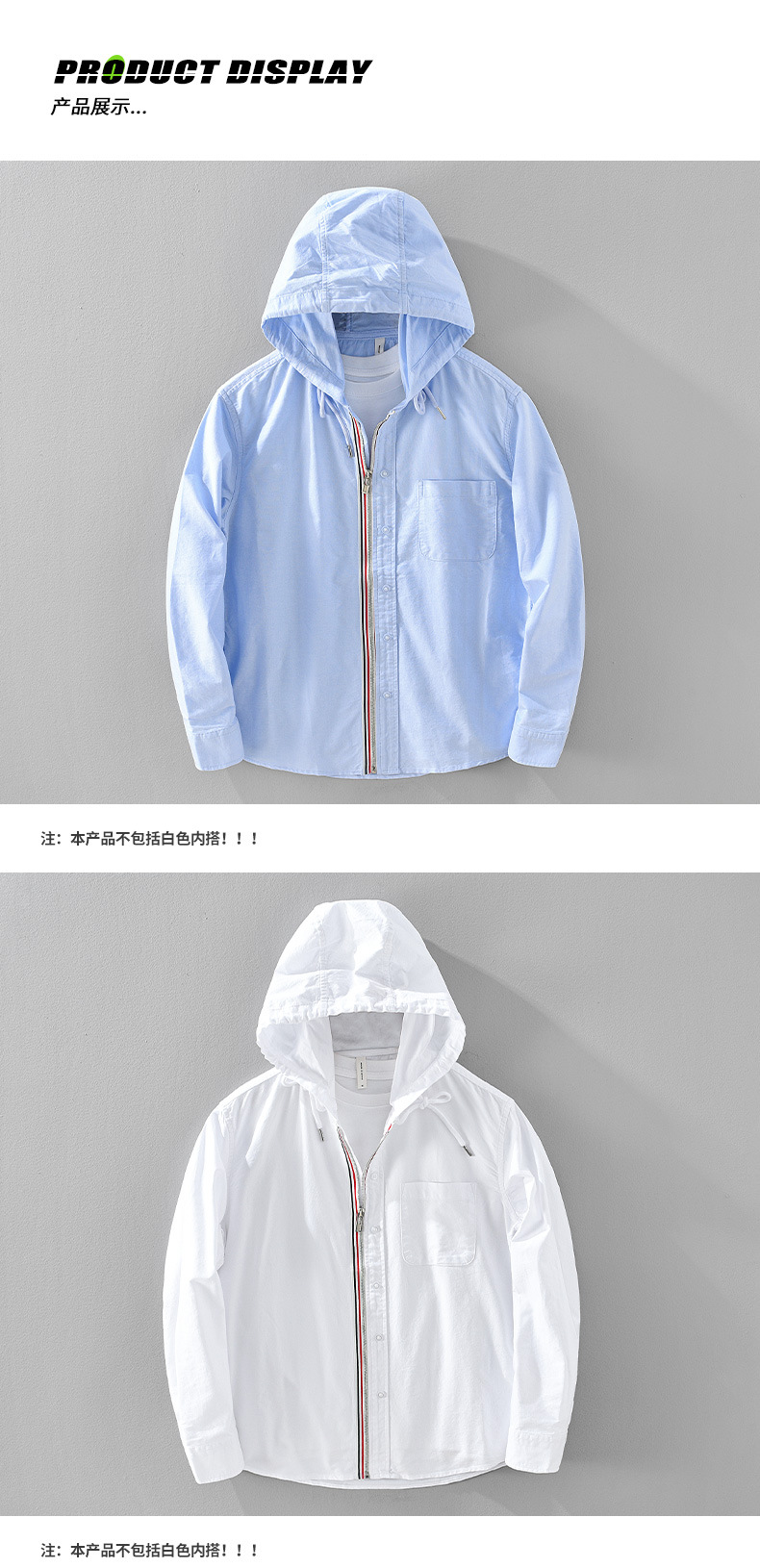 2451 스프링 옥스포드 스피닝 셔츠 남성 스트라이프 아메리칸 캐주얼 후드 셔츠 루즈 지퍼 홍콩 스타일 자켓스토어 가기