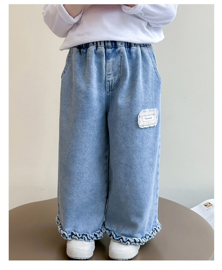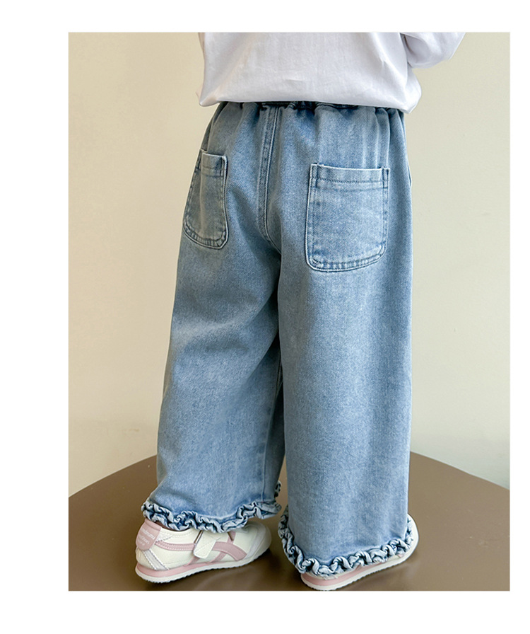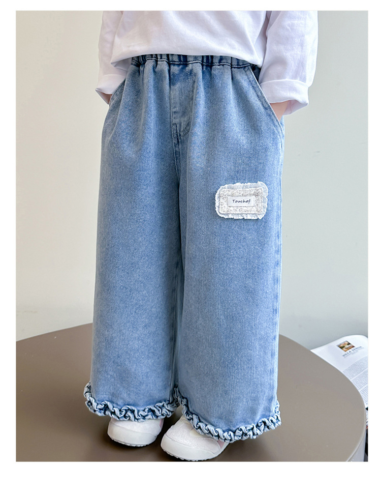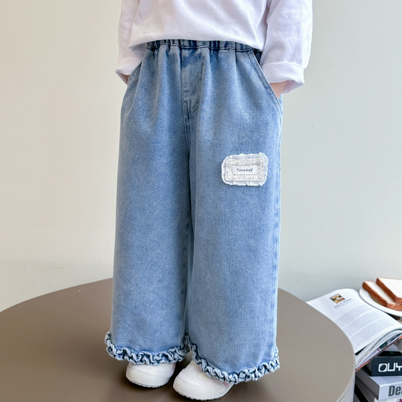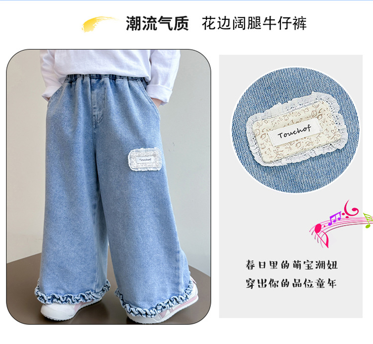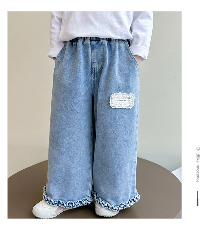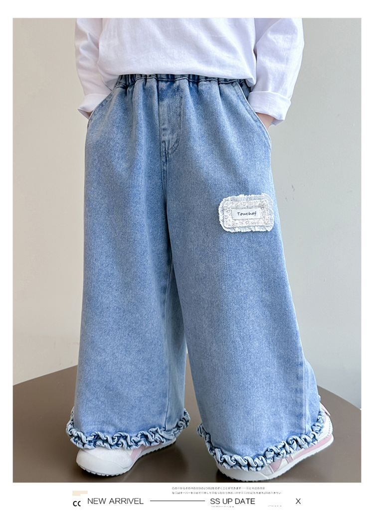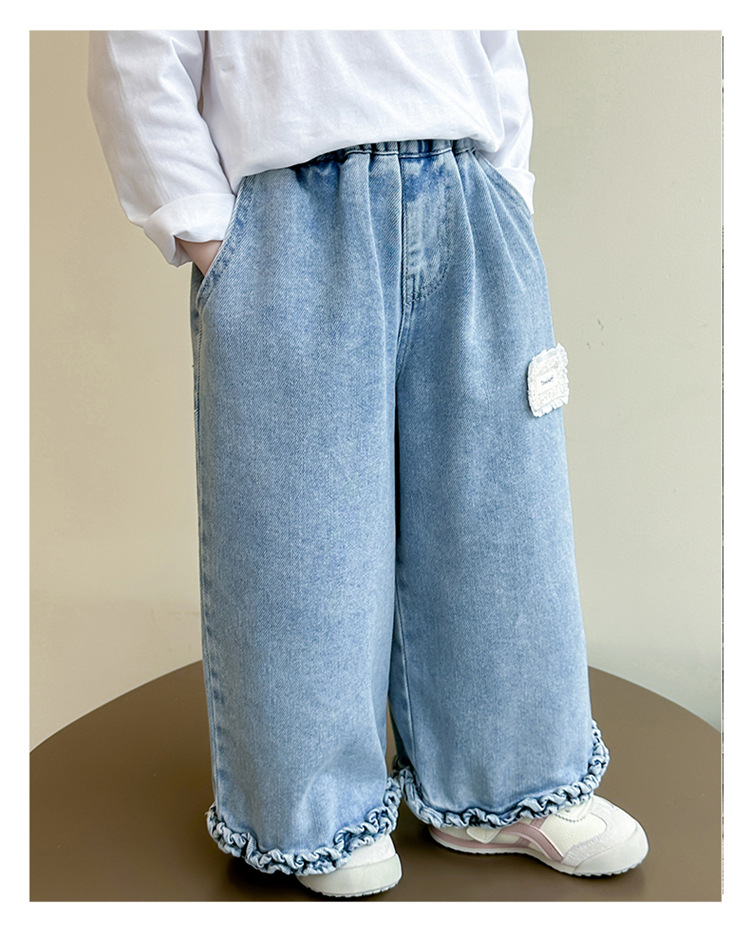 여자 청바지 봄 2025 새로운 어린이 서양식 한국 스타일 유행 넓은 다리 바지 유행 소녀 봄 바지스토어 가기