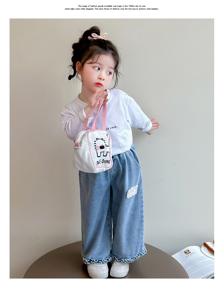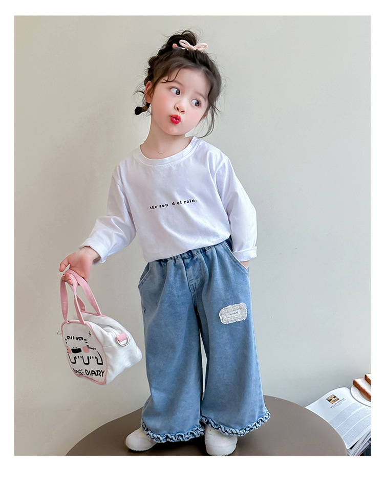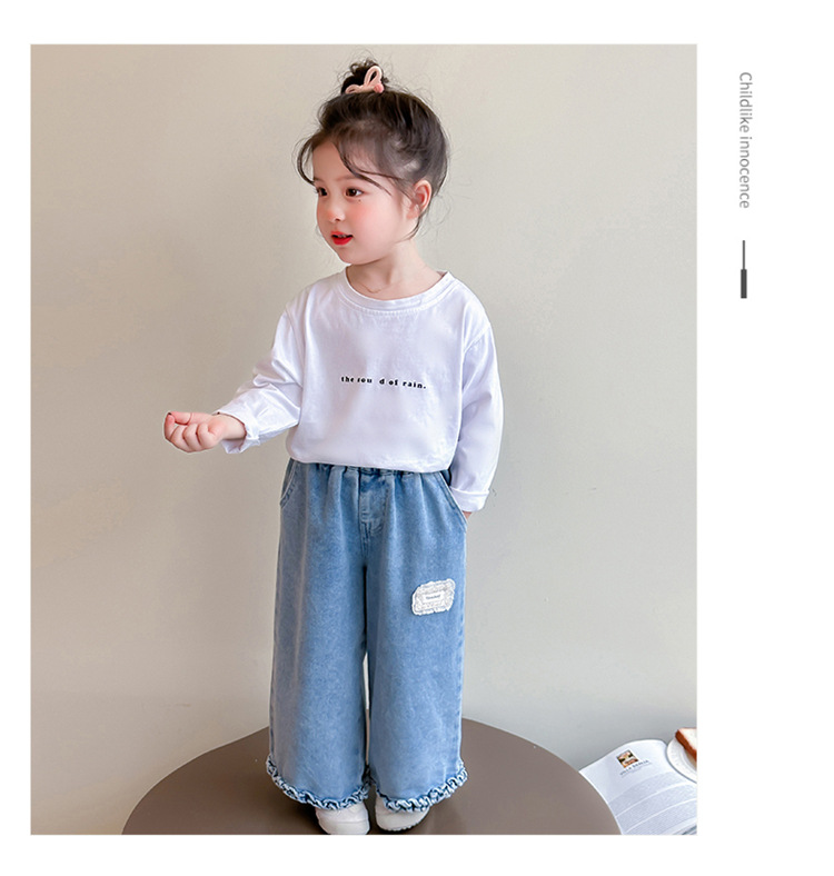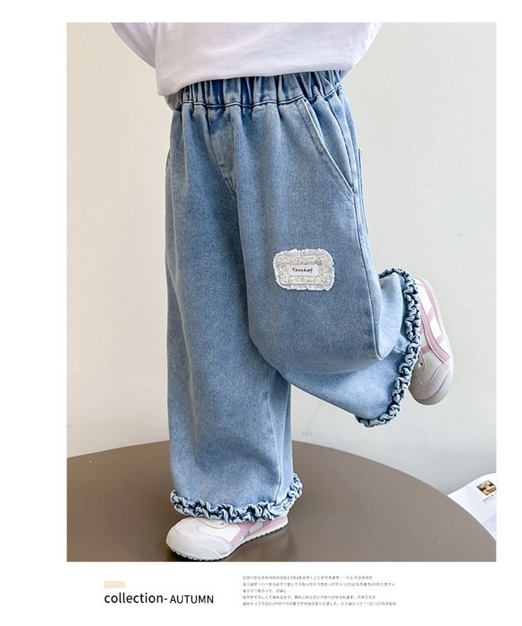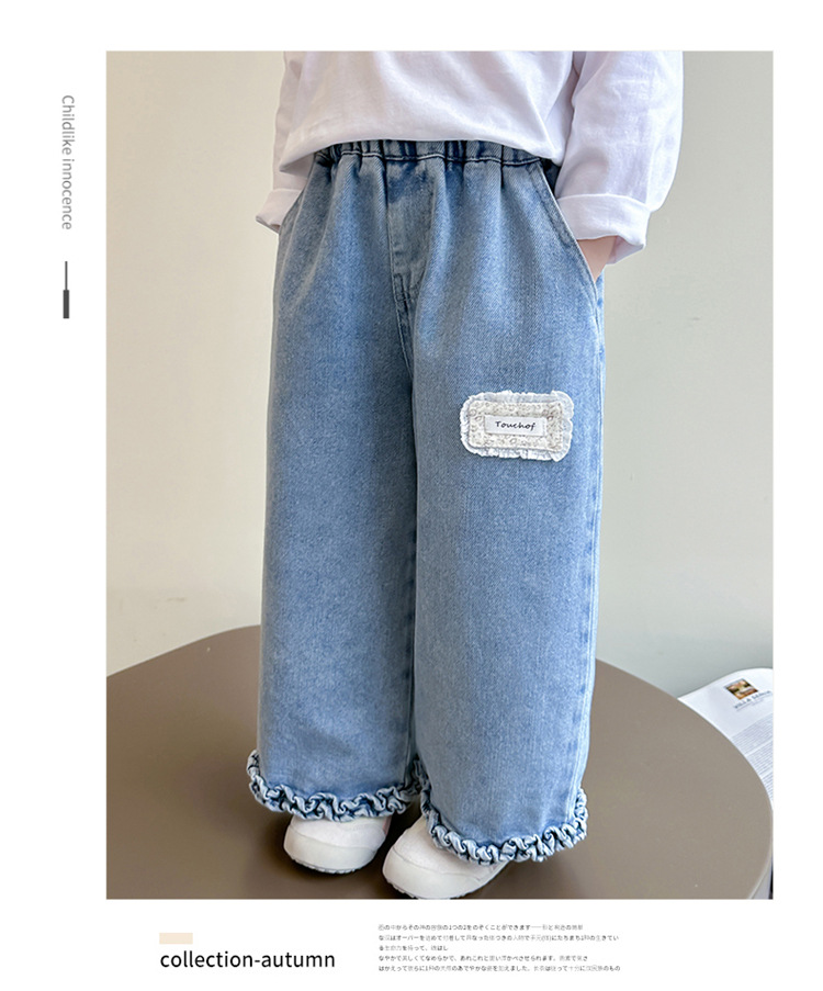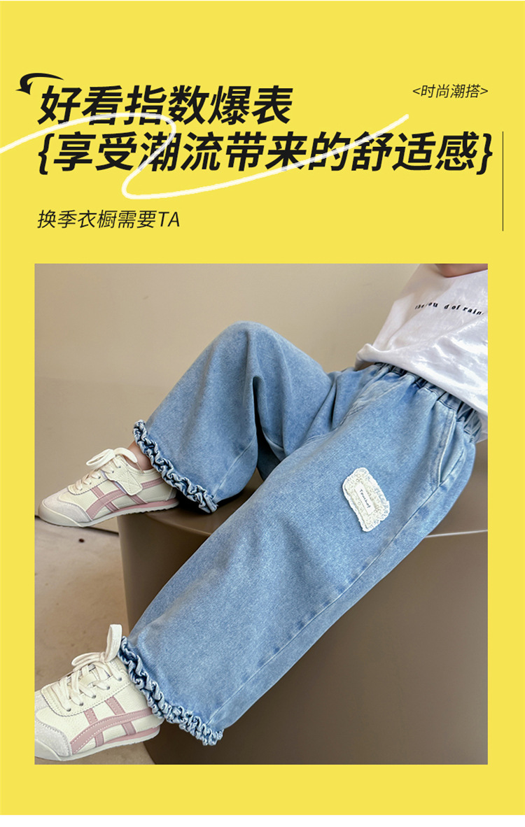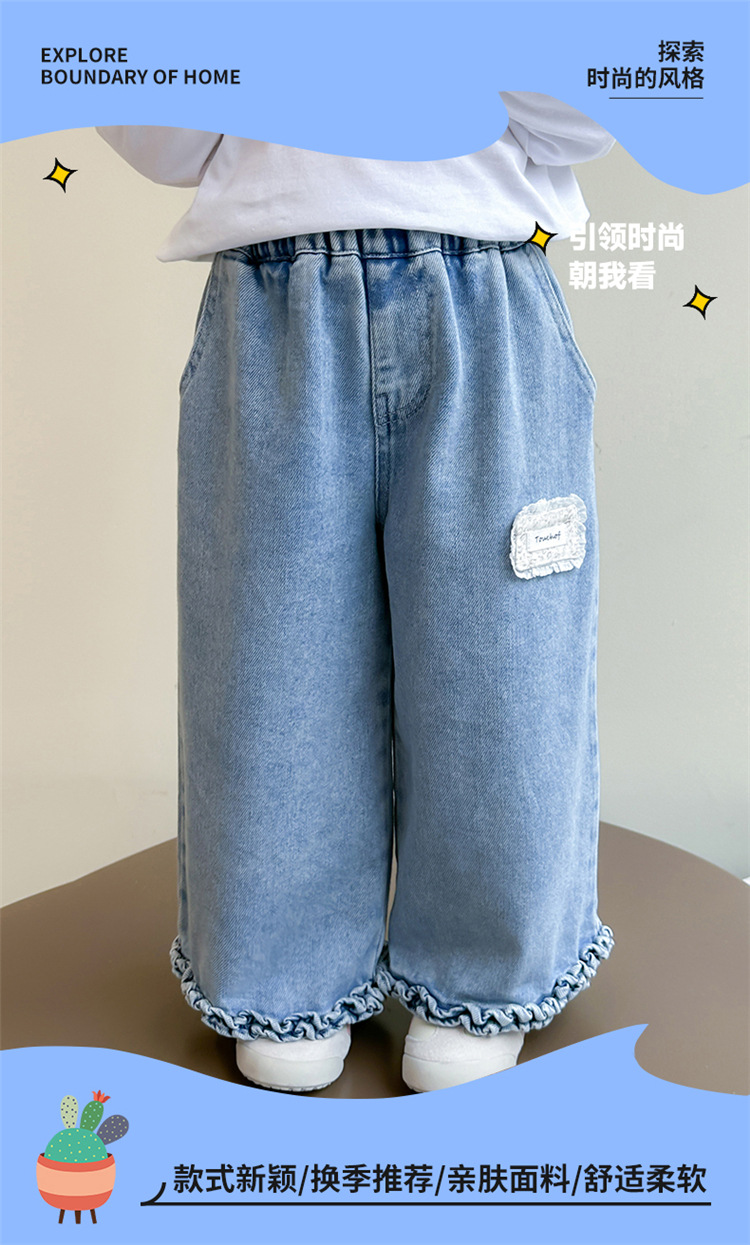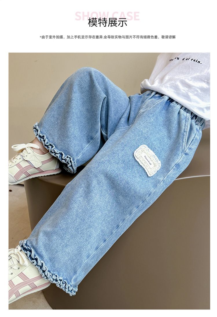 여자 청바지 봄 2025 새로운 어린이 서양식 한국 스타일 유행 넓은 다리 바지 유행 소녀 봄 바지스토어 가기