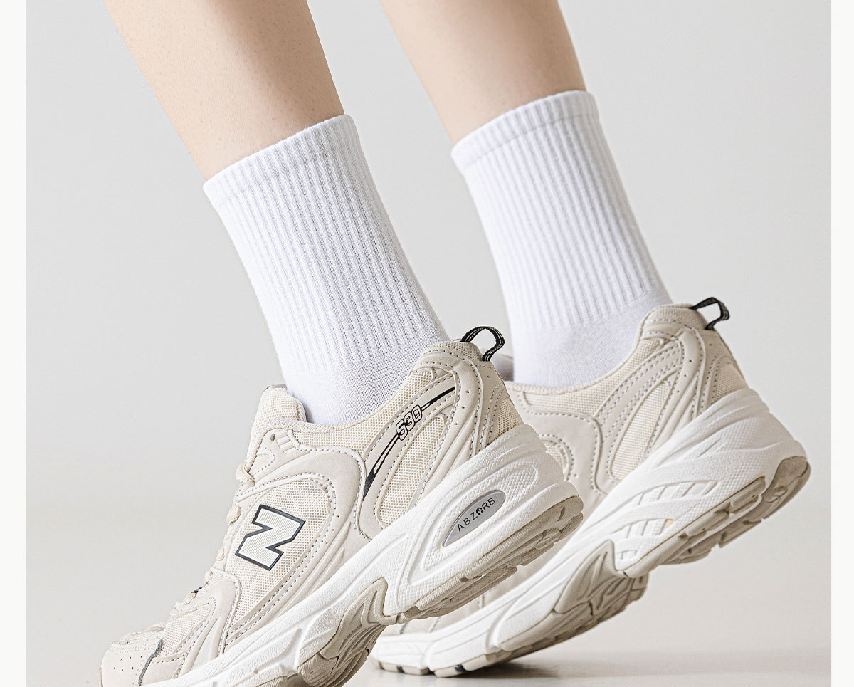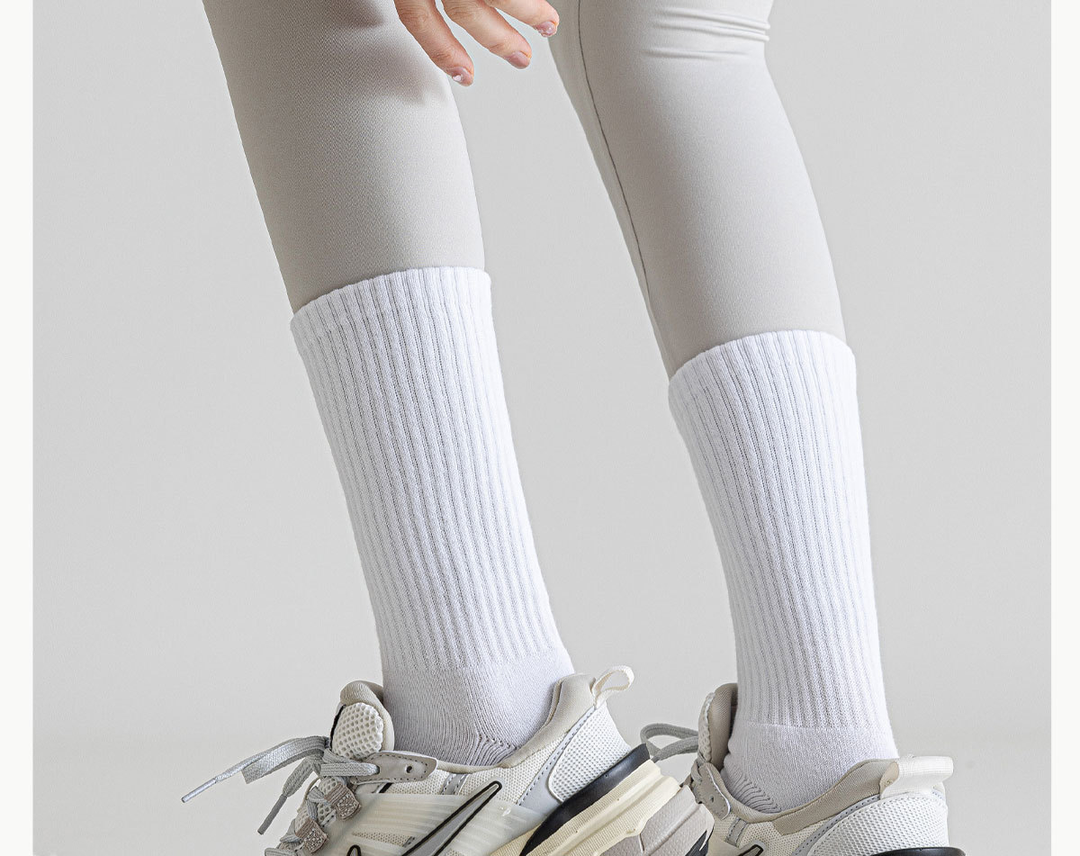 화이트 스포츠 양말 어린이 중간 길이 양말 가을 및 겨울 수건 바닥 미끄럼 방취제 면 양말 피트니스 러닝 로프 건너 뛰기 스타킹
