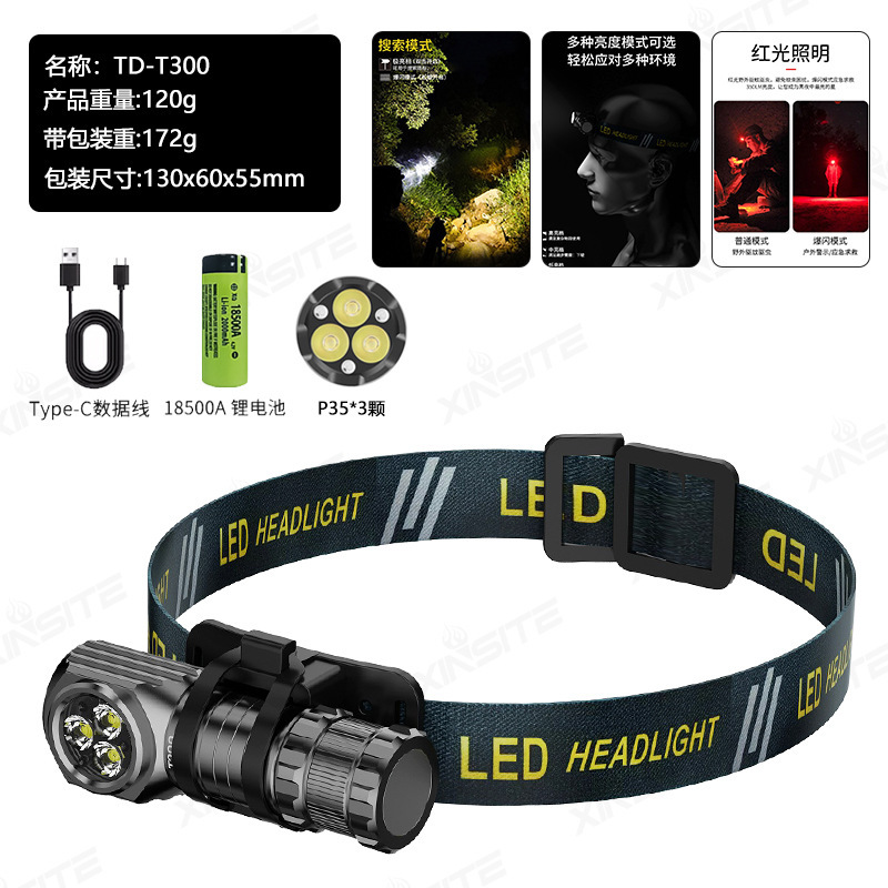 국경 새로운 야외 밝은 헤드 라이트 다기능 긴 내구 헤드 램프 분리 가능한 비상 손전등스토어 가기
