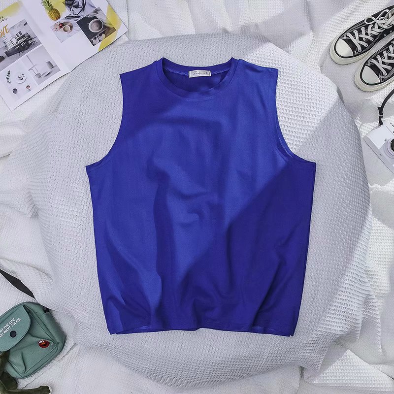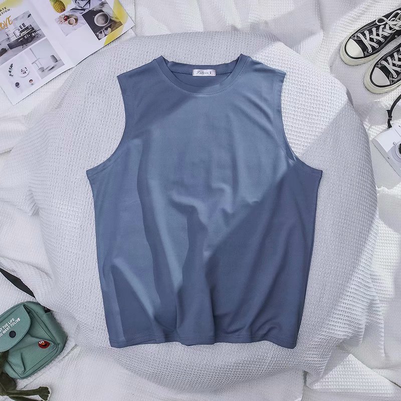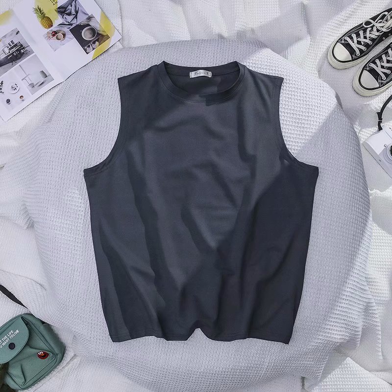 대외 무역 여름 농구 허리 코트 스포츠 조끼 남자 느슨한 크루 넥베이스 셔츠 한국 유행 남자 민소매 티셔츠