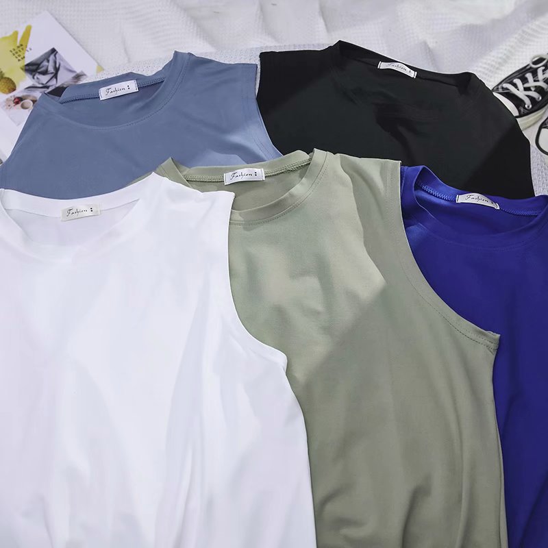대외 무역 여름 농구 허리 코트 스포츠 조끼 남자 느슨한 크루 넥베이스 셔츠 한국 유행 남자 민소매 티셔츠스토어 가기
