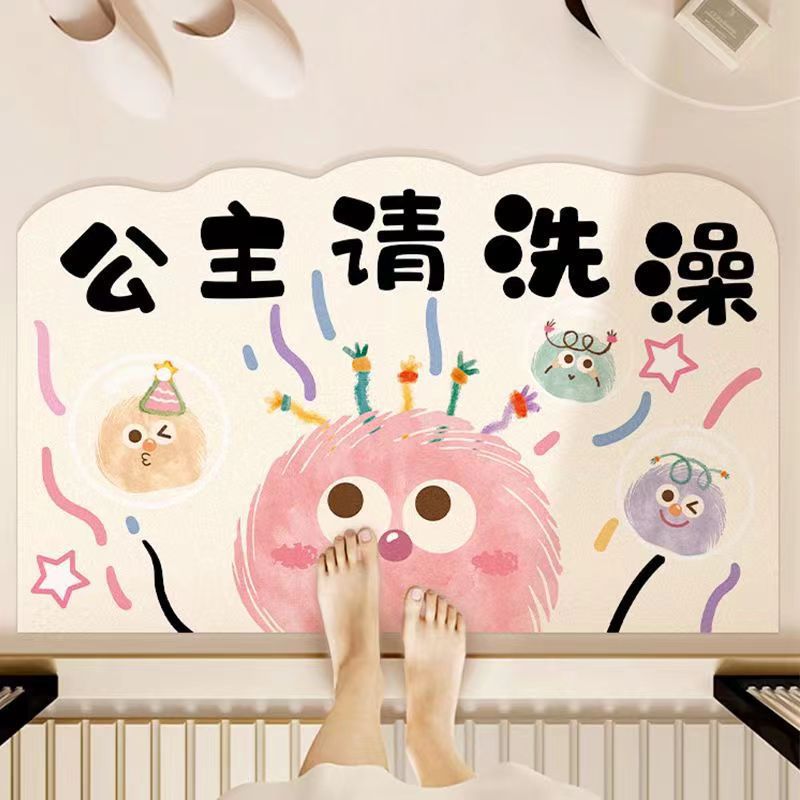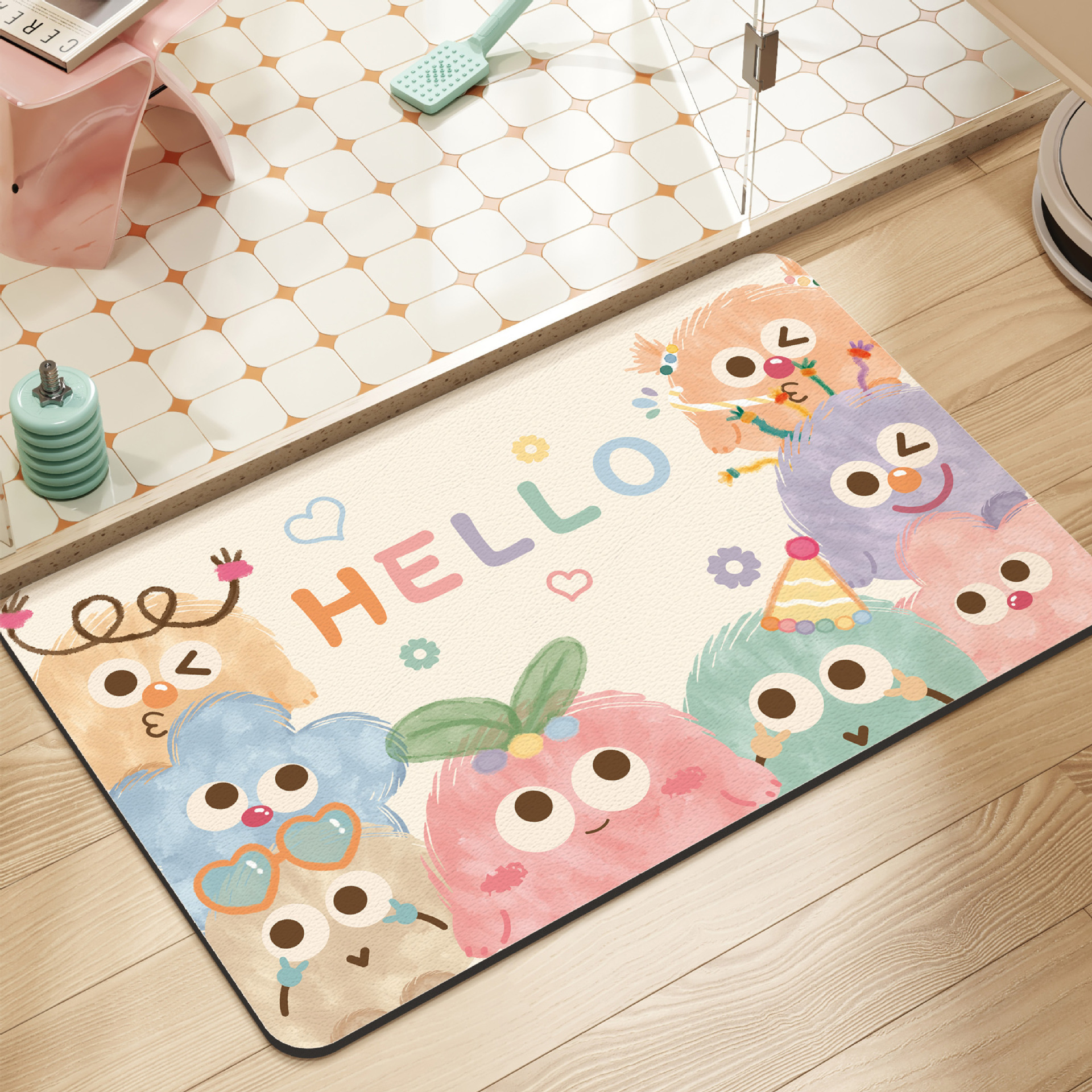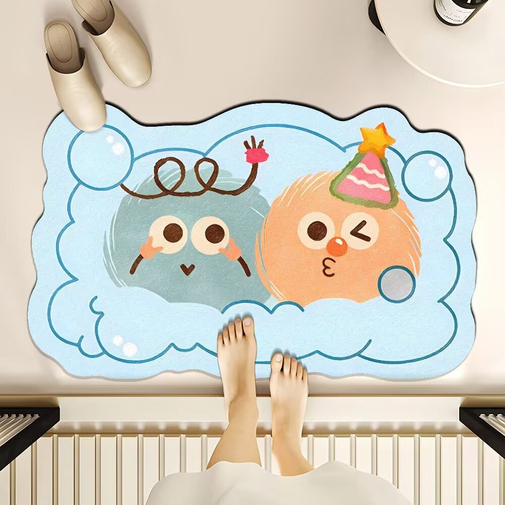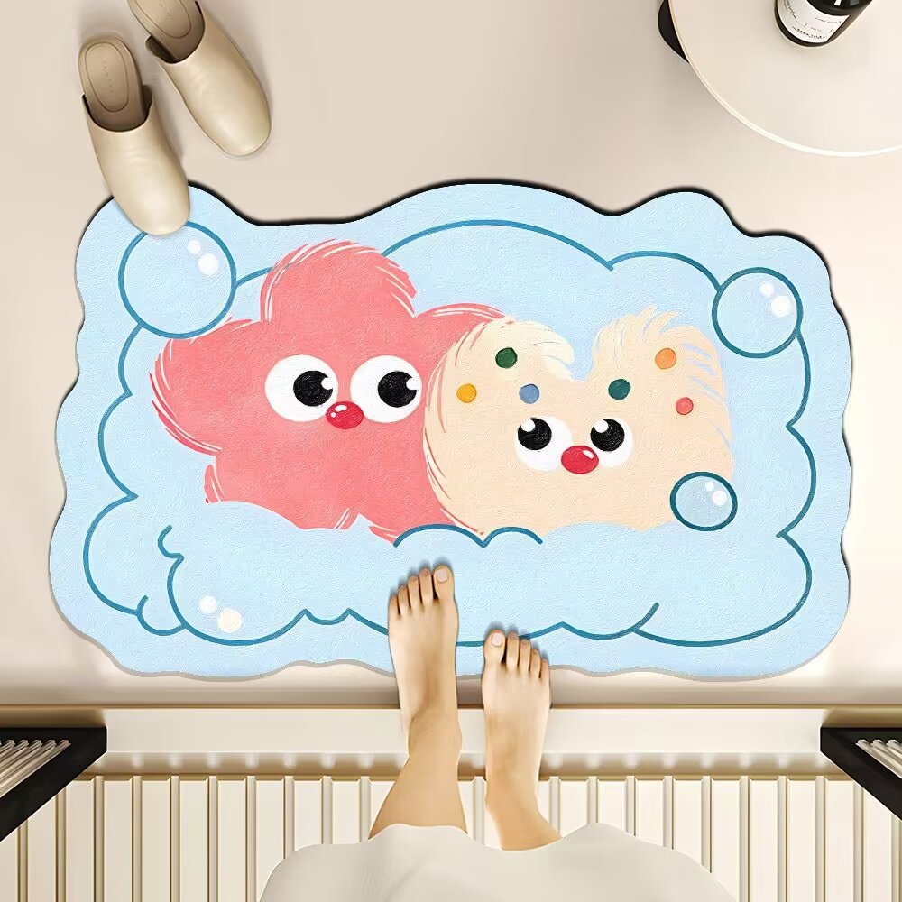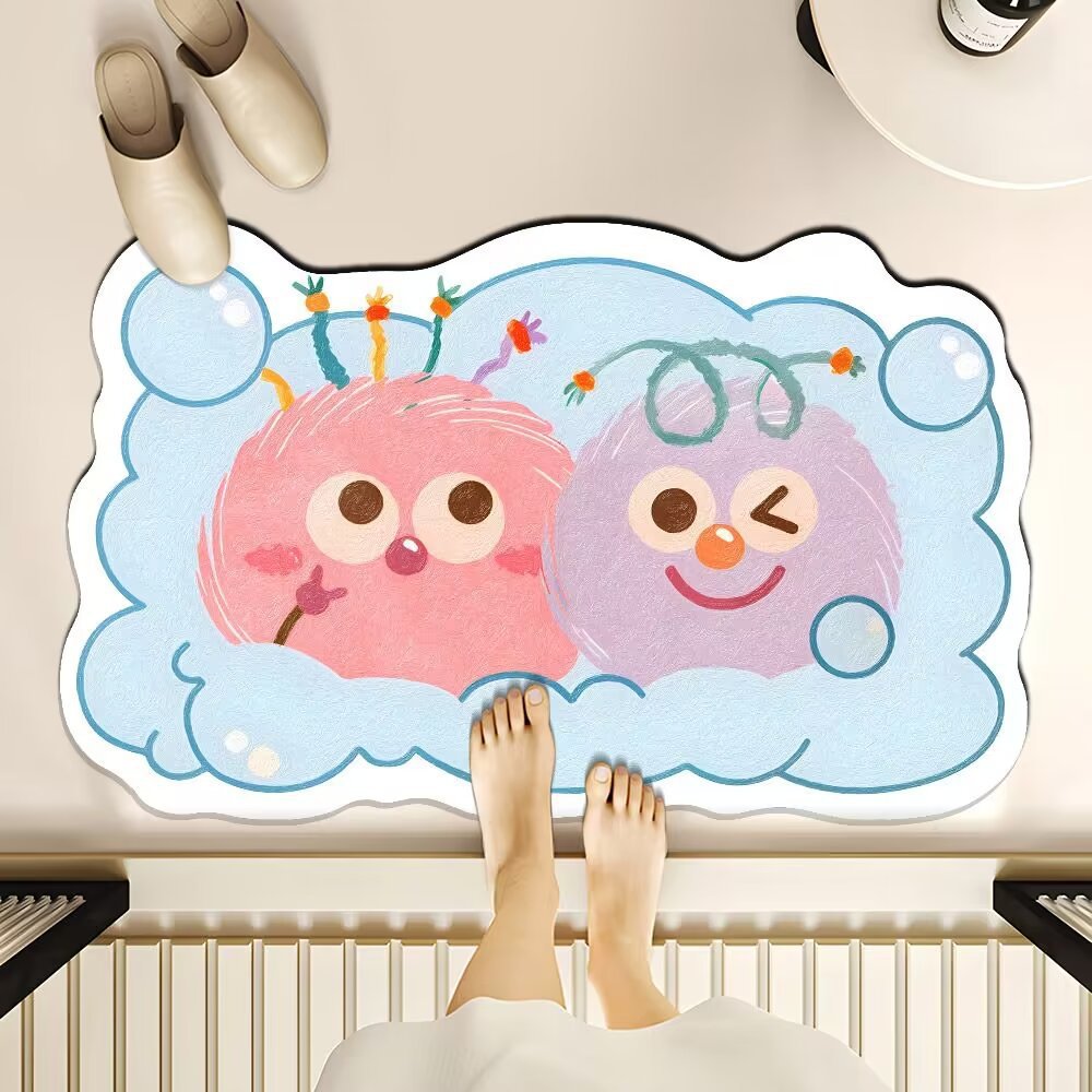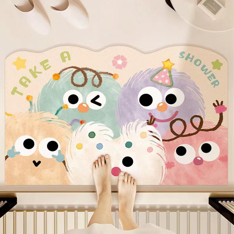 만화 귀여운 창조적 인 헤어 볼 욕실 흡수성 풋 매트 도파민 재미 불규칙한 화장실 문 매트스토어 가기