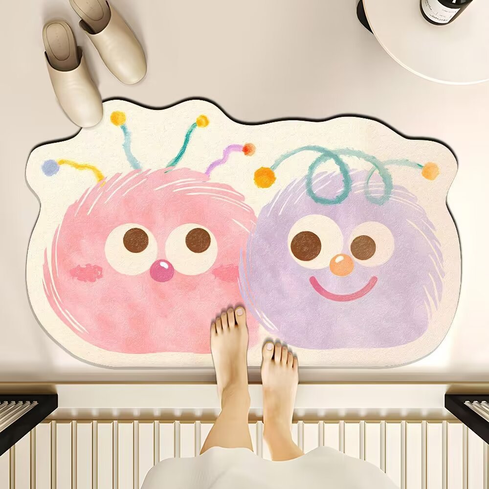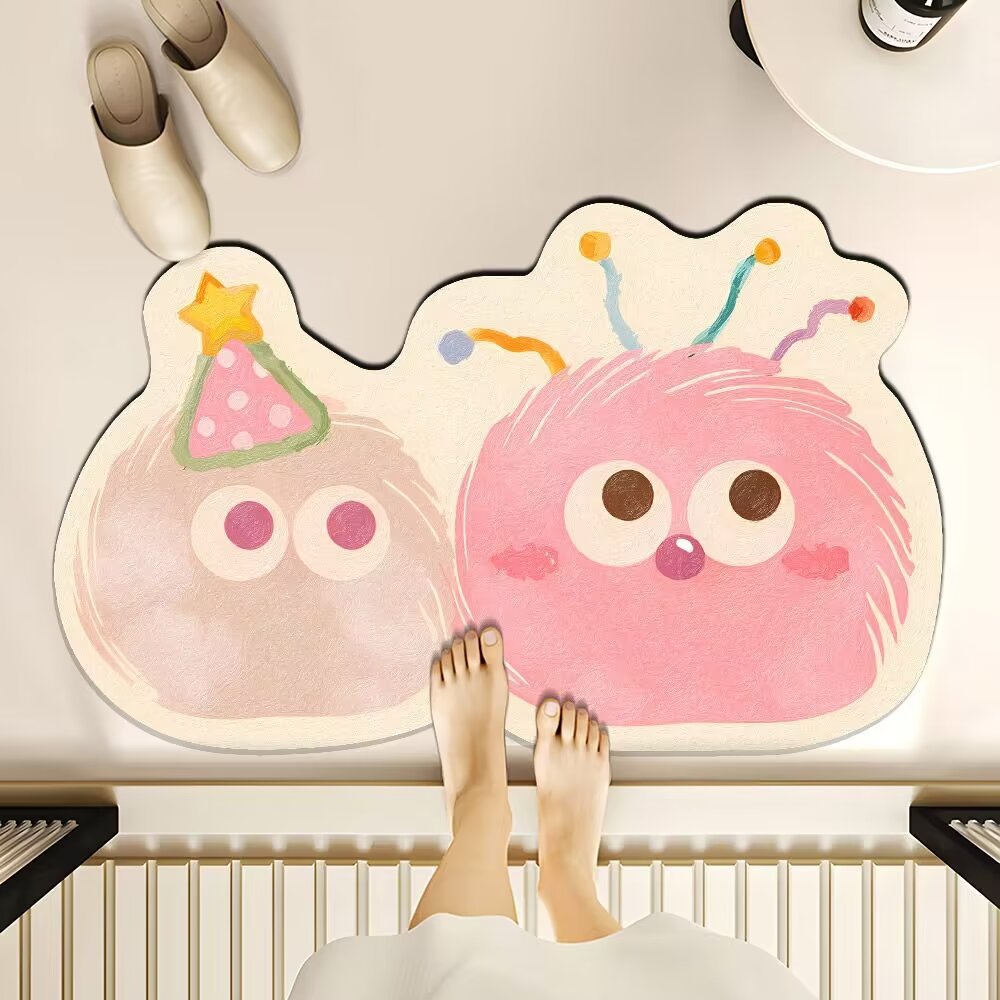 만화 귀여운 창조적 인 헤어 볼 욕실 흡수성 풋 매트 도파민 재미 불규칙한 화장실 문 매트
