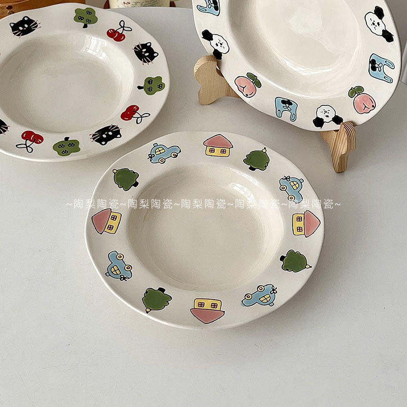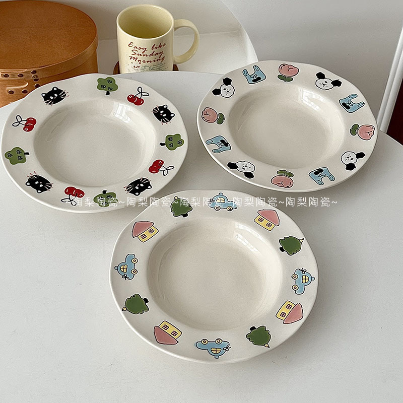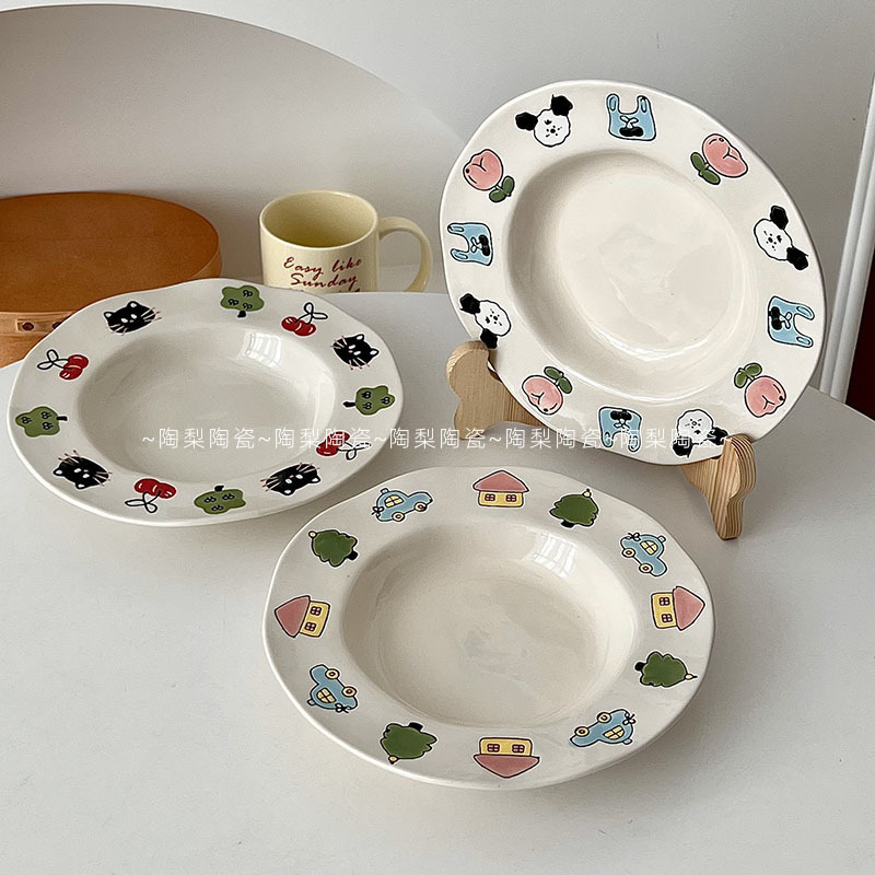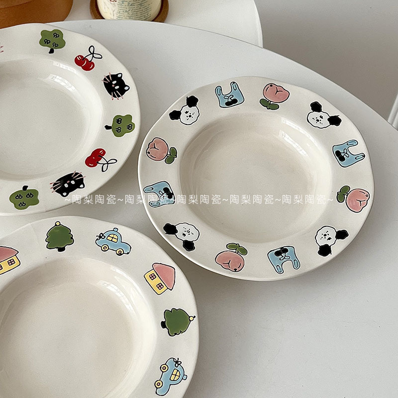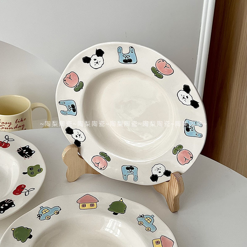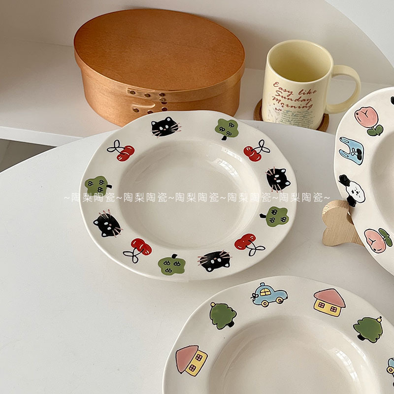 높은 뷰티 가치 Ins 스타일 아침 식사 플레이트 가정용 귀여운 세라믹 플레이트 접시 디너 플레이트 디저트 과일 플레이트 샐러드 플레이트 딥