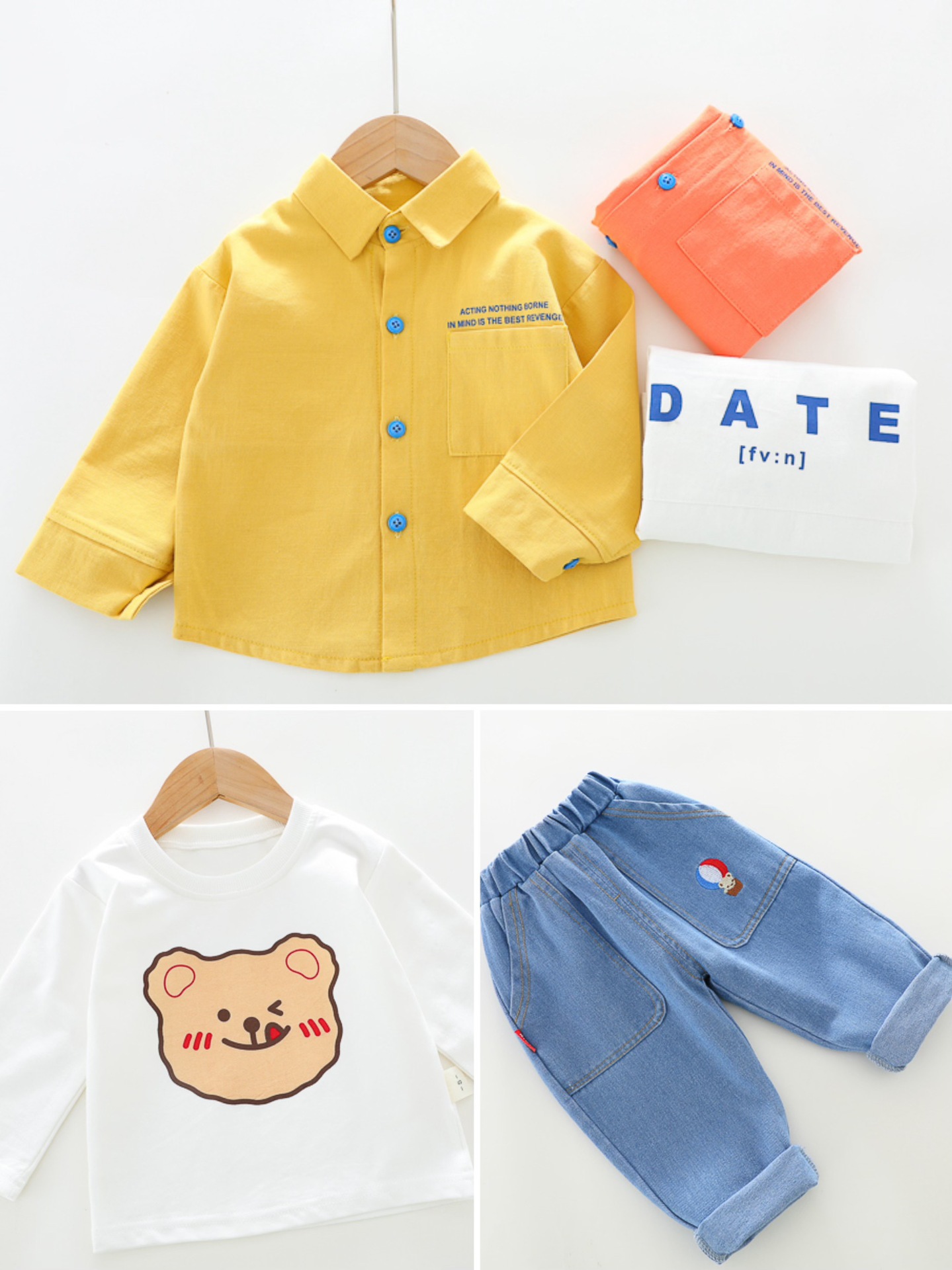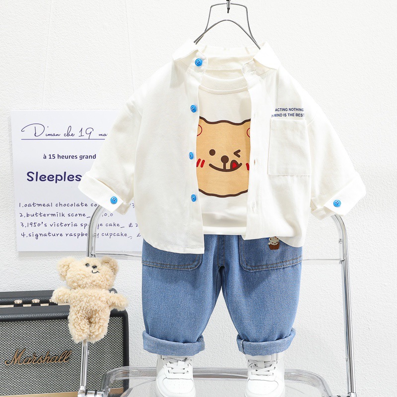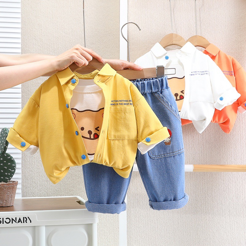 진 베이비 아동복 남성 아동복 새 봄과 가을 의류 아기 패션 세트 한국 셔츠 코트 긴팔 3 종 세트스토어 가기