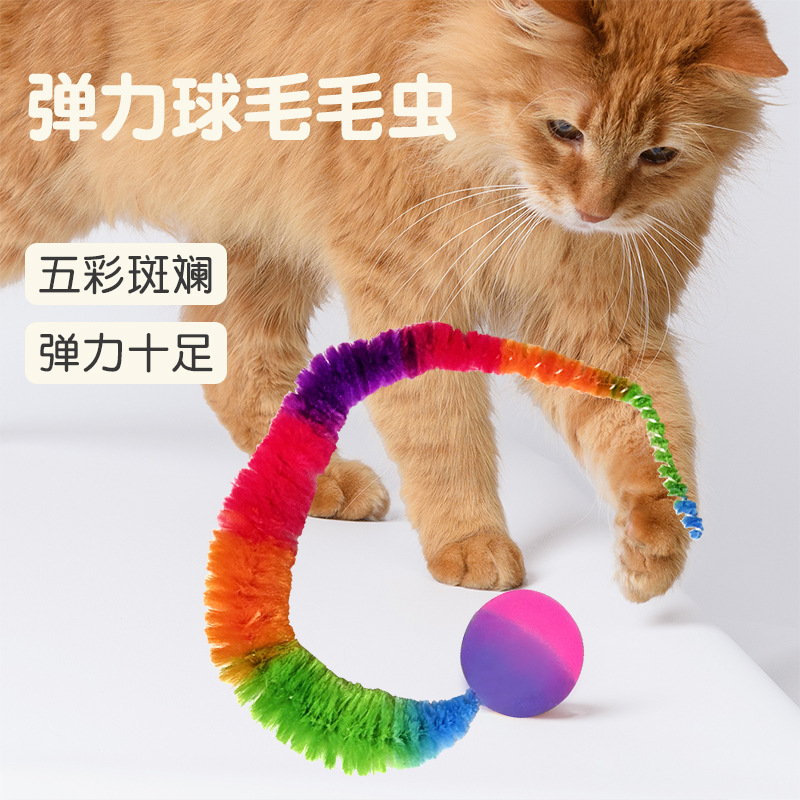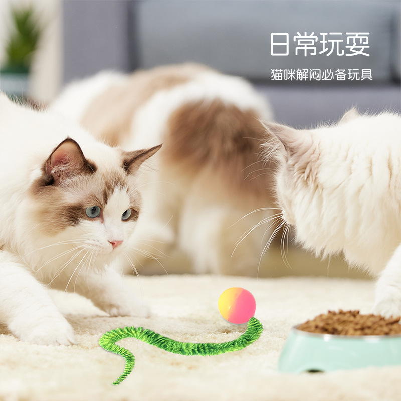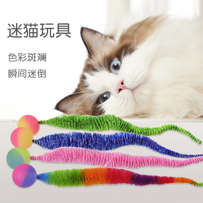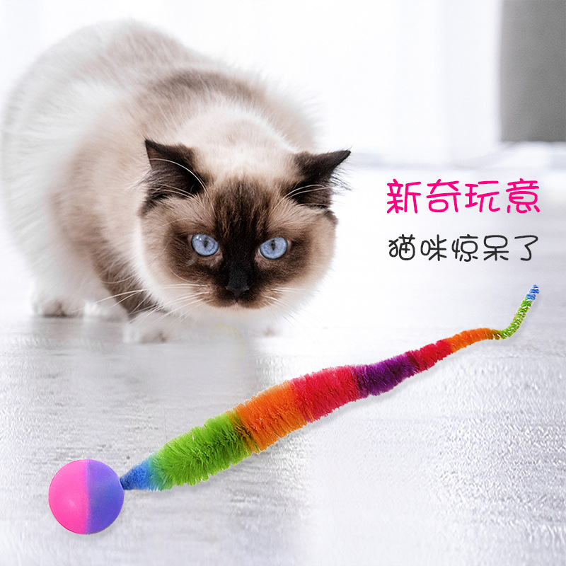 튀는 공 고양이 장난감 애벌레 고양이 장난감 자기 구호 색 공 깃털 재미 고양이 유물 롤링 볼스토어 가기