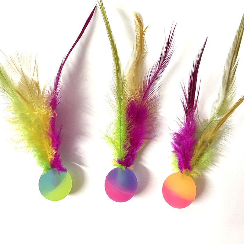 튀는 공 고양이 장난감 애벌레 고양이 장난감 자기 구호 색 공 깃털 재미 고양이 유물 롤링 볼