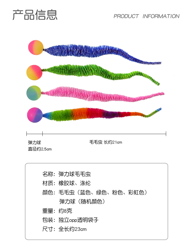 • 무지개색 애벌레 탄력볼깃털 스타일