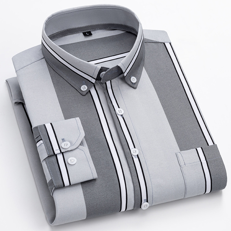 국경을 넘는 새로운 남성용 수직 줄무늬 긴팔 셔츠 패션 멀티 컬러 슬림 핏 캐주얼 셔츠 남성용스토어 가기
