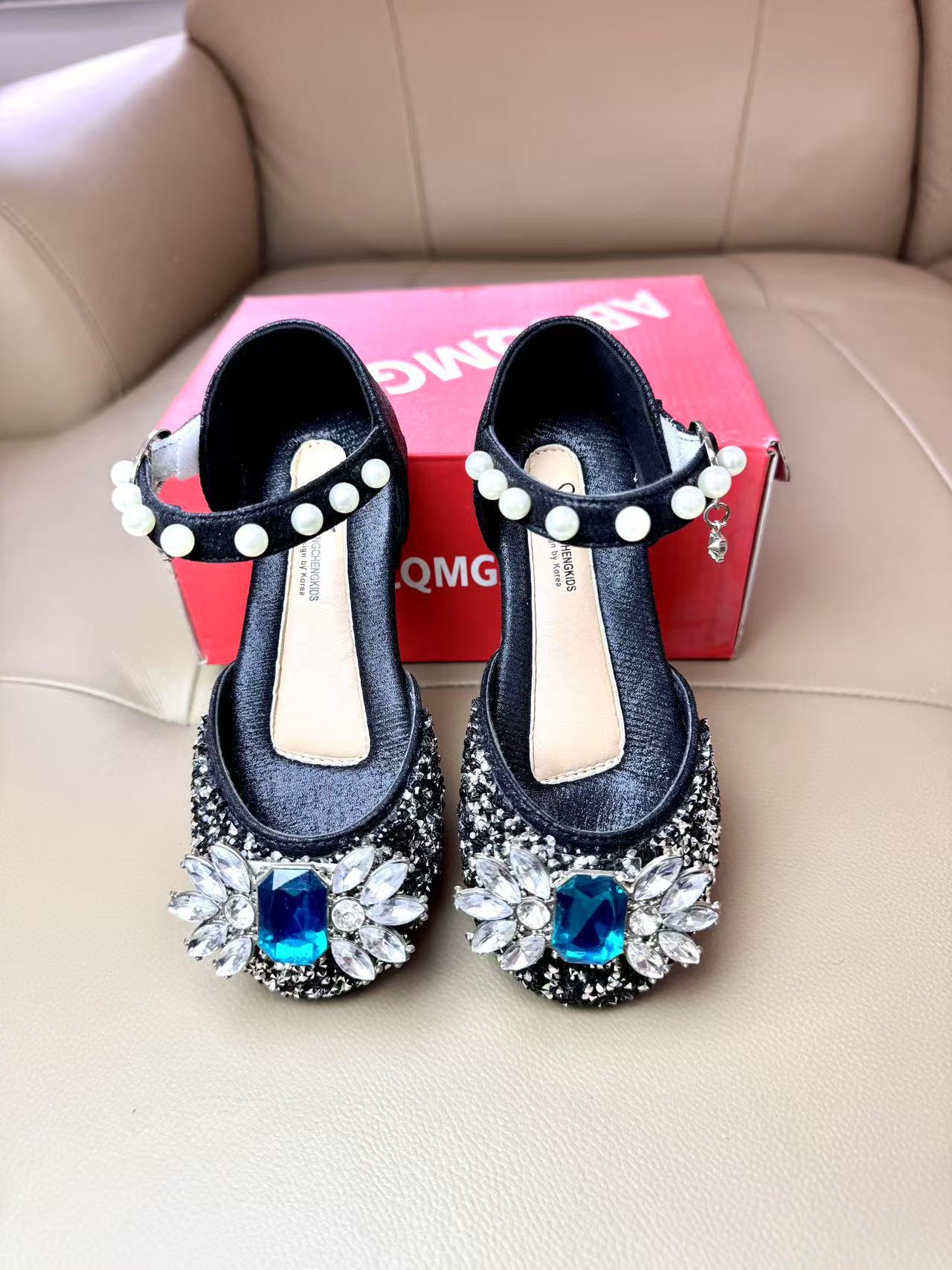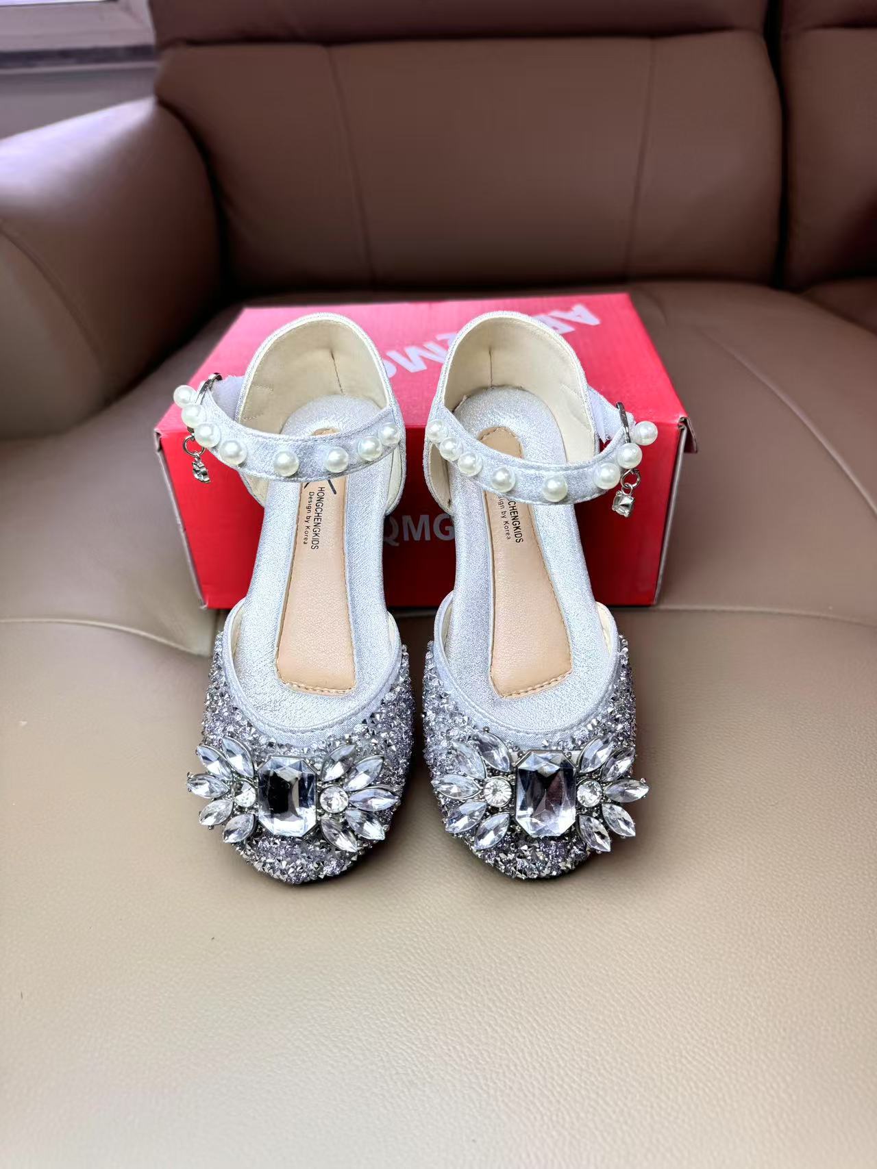 봄과 여름 2025 활 한국 스타일 라인스톤 소프트 솔 걸스 샌들 공주 신발 봄 소녀 가죽 신발