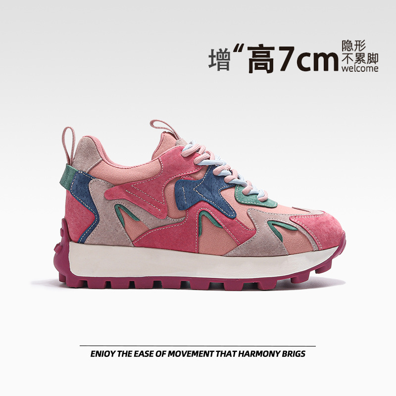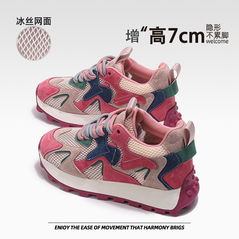 작은 두꺼운 단독 높이 증가 와플 포레스트 검프 신발 여성의 2025 봄 패션 올 매치 아빠 통기성 스포츠 캐주얼 신발스토어 가기