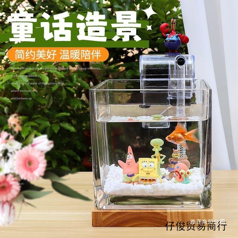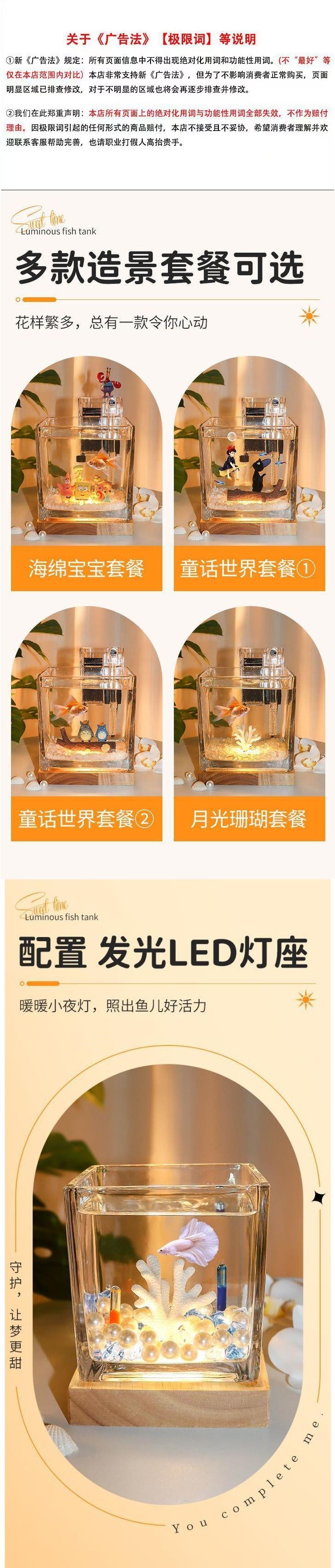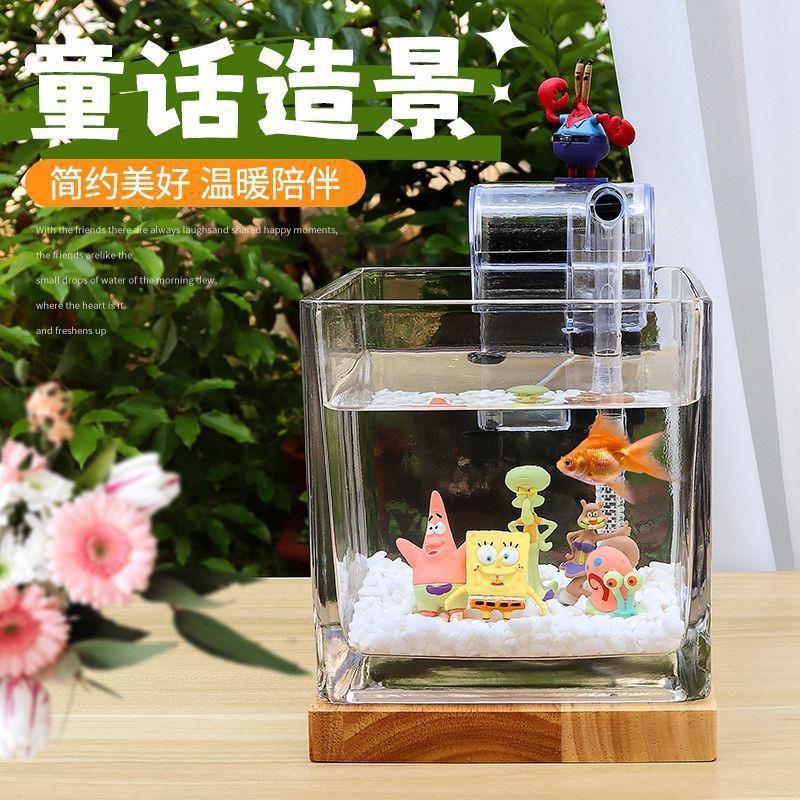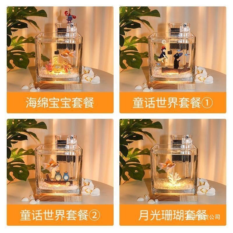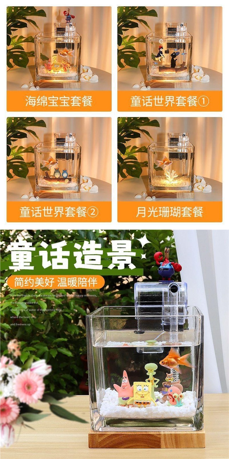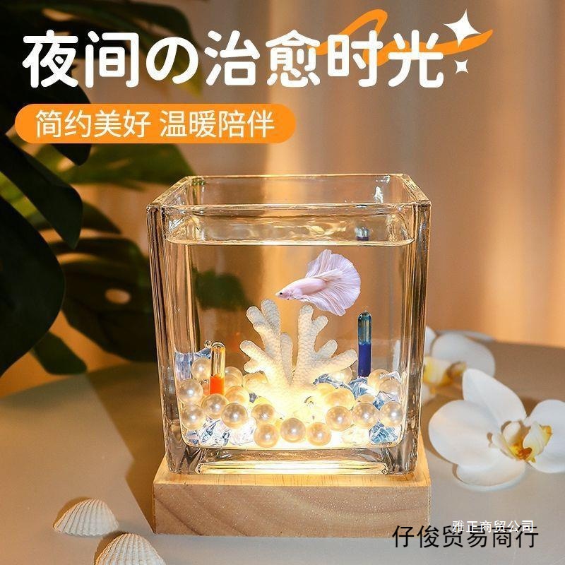 사각 빛나는 betta 물고기 탱크 기본 작은 마이크로 조경 사무실 물고기 양식 데스크탑 조경 창조적 인 생태 탱크스토어 가기