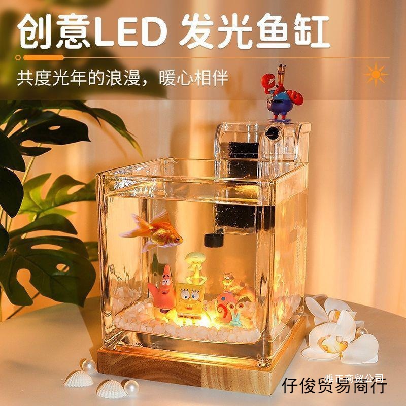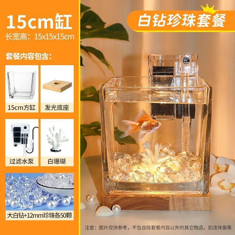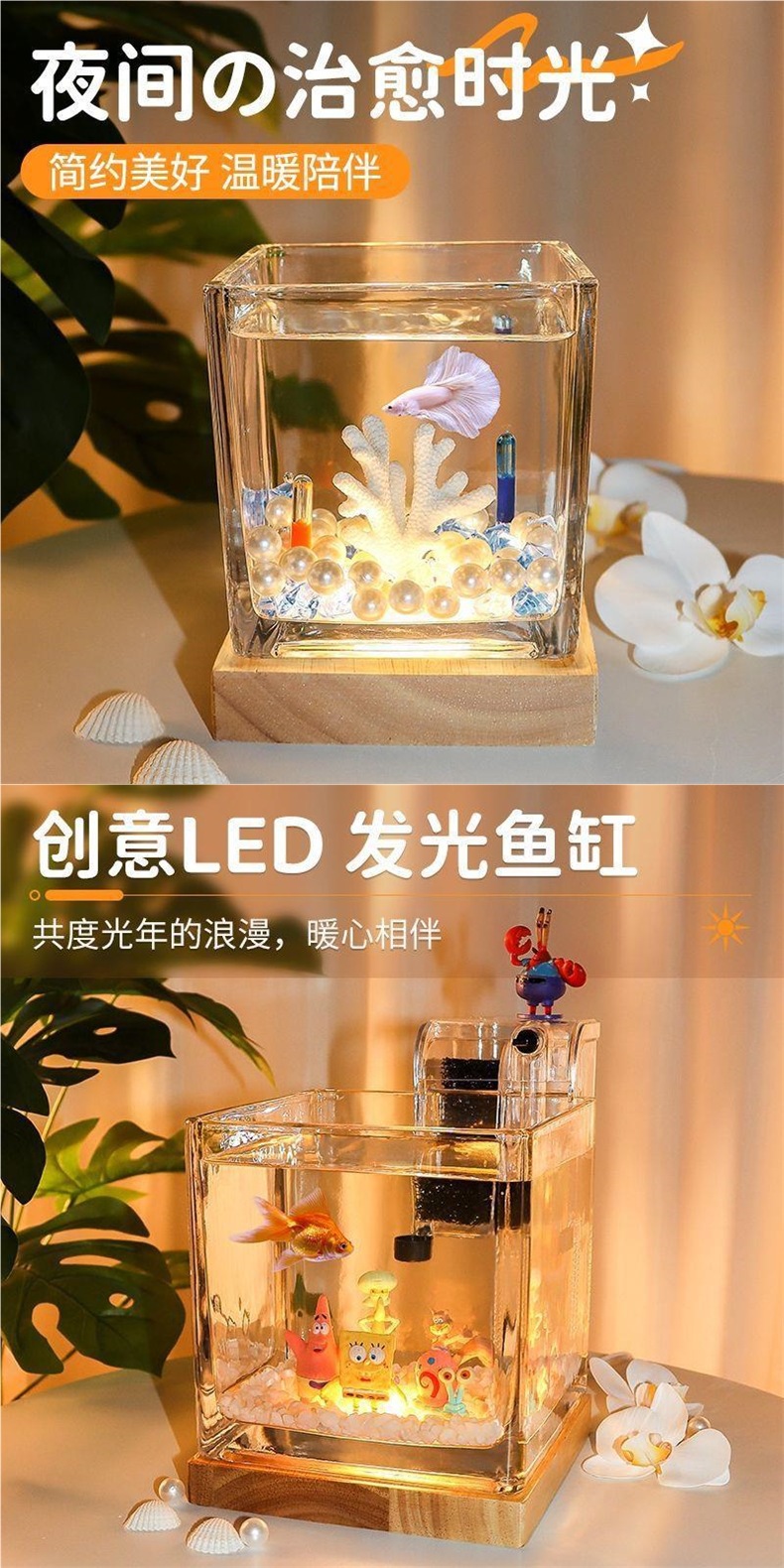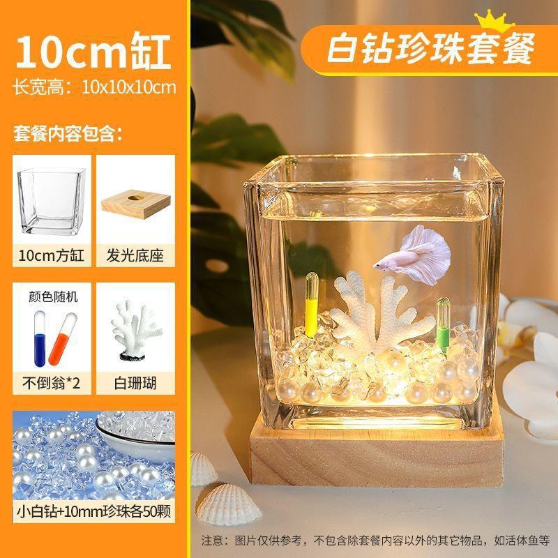 사각 빛나는 betta 물고기 탱크 기본 작은 마이크로 조경 사무실 물고기 양식 데스크탑 조경 창조적 인 생태 탱크