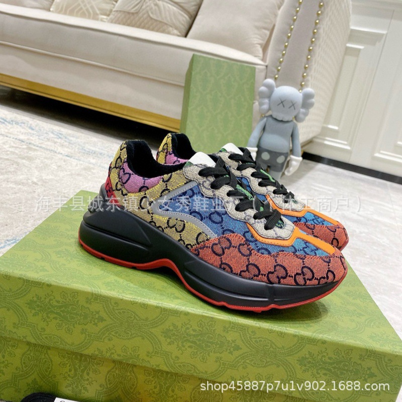 국경 간 대외 무역 GG 남성 신발 아빠 신발 클래식 더블 G 인쇄 무지개 딸기 미키 스포츠 커플 남성 신발