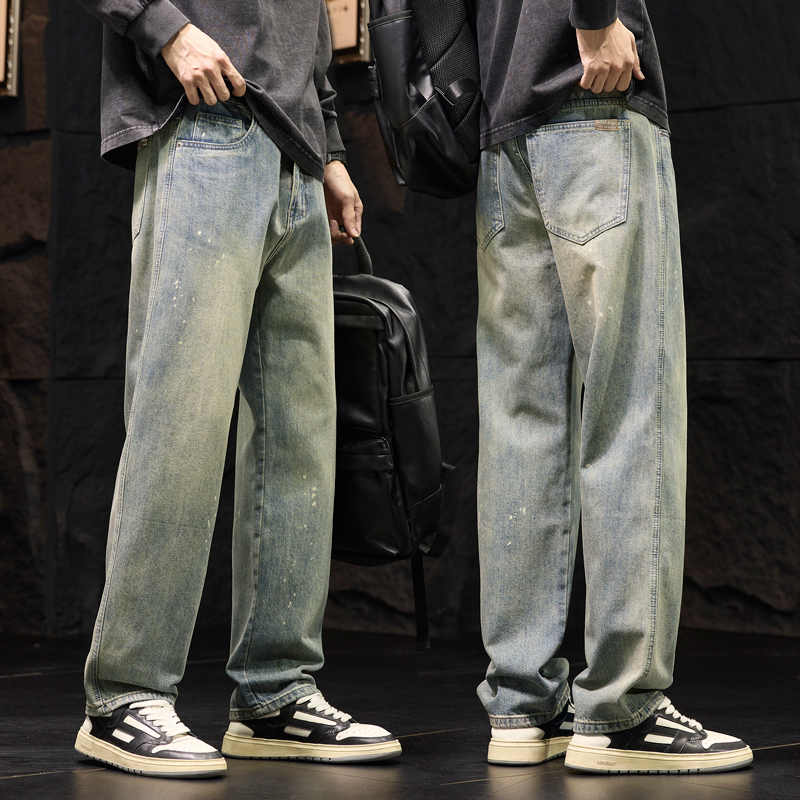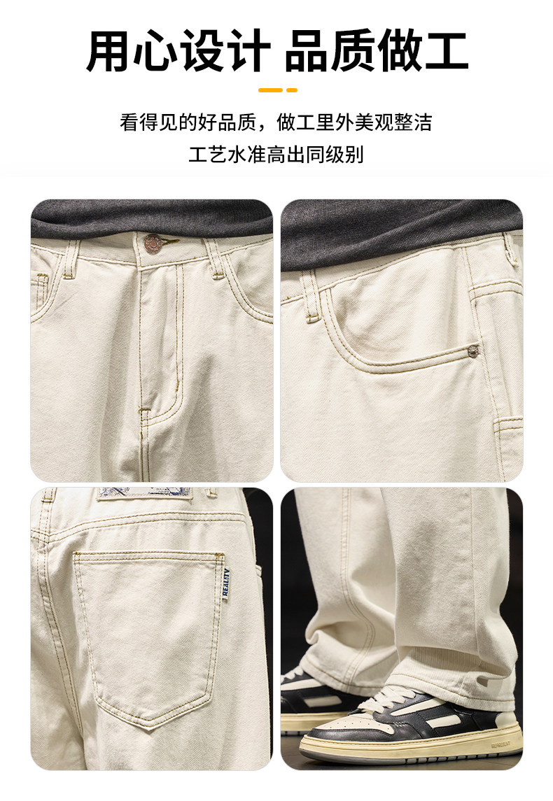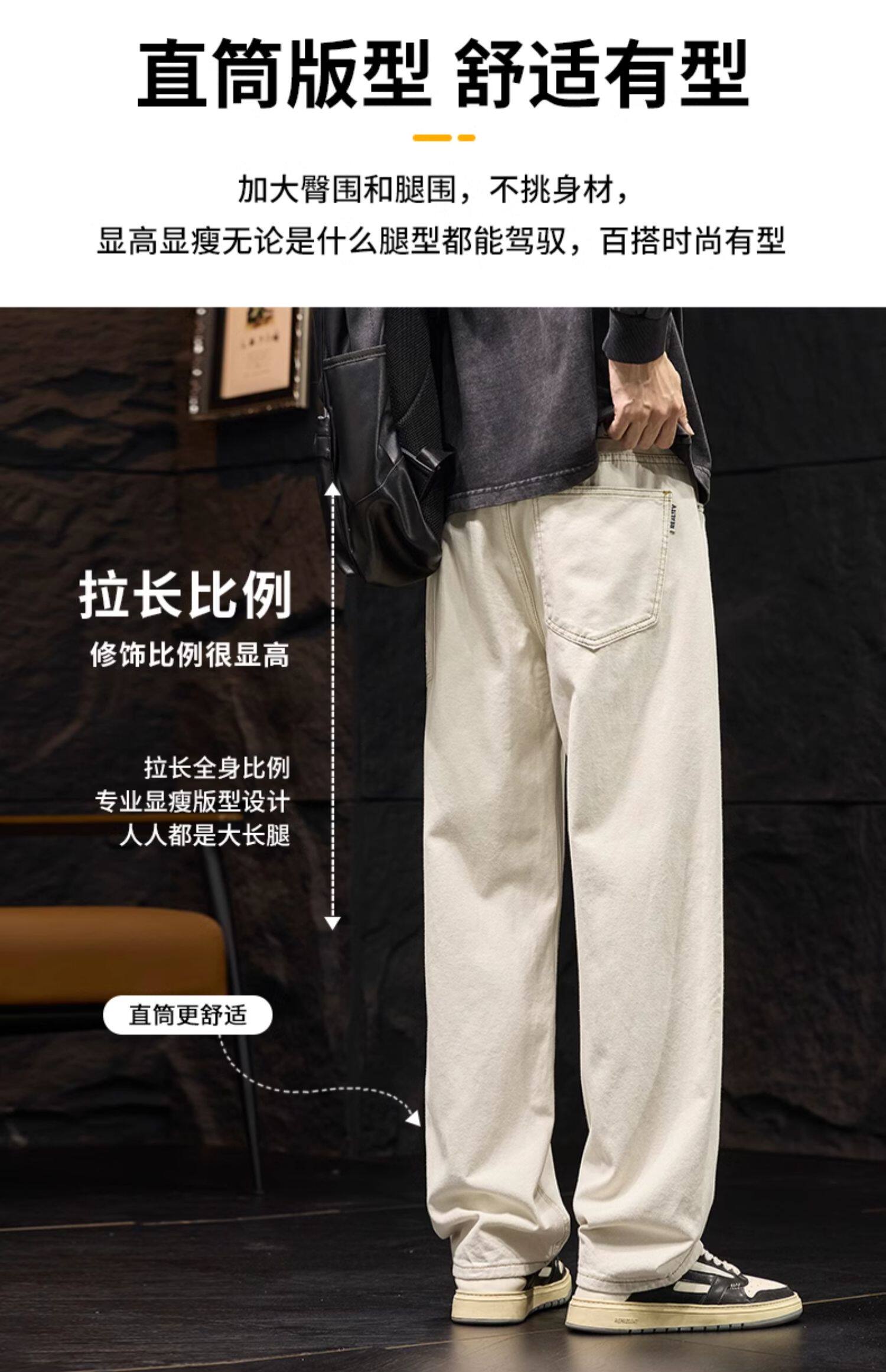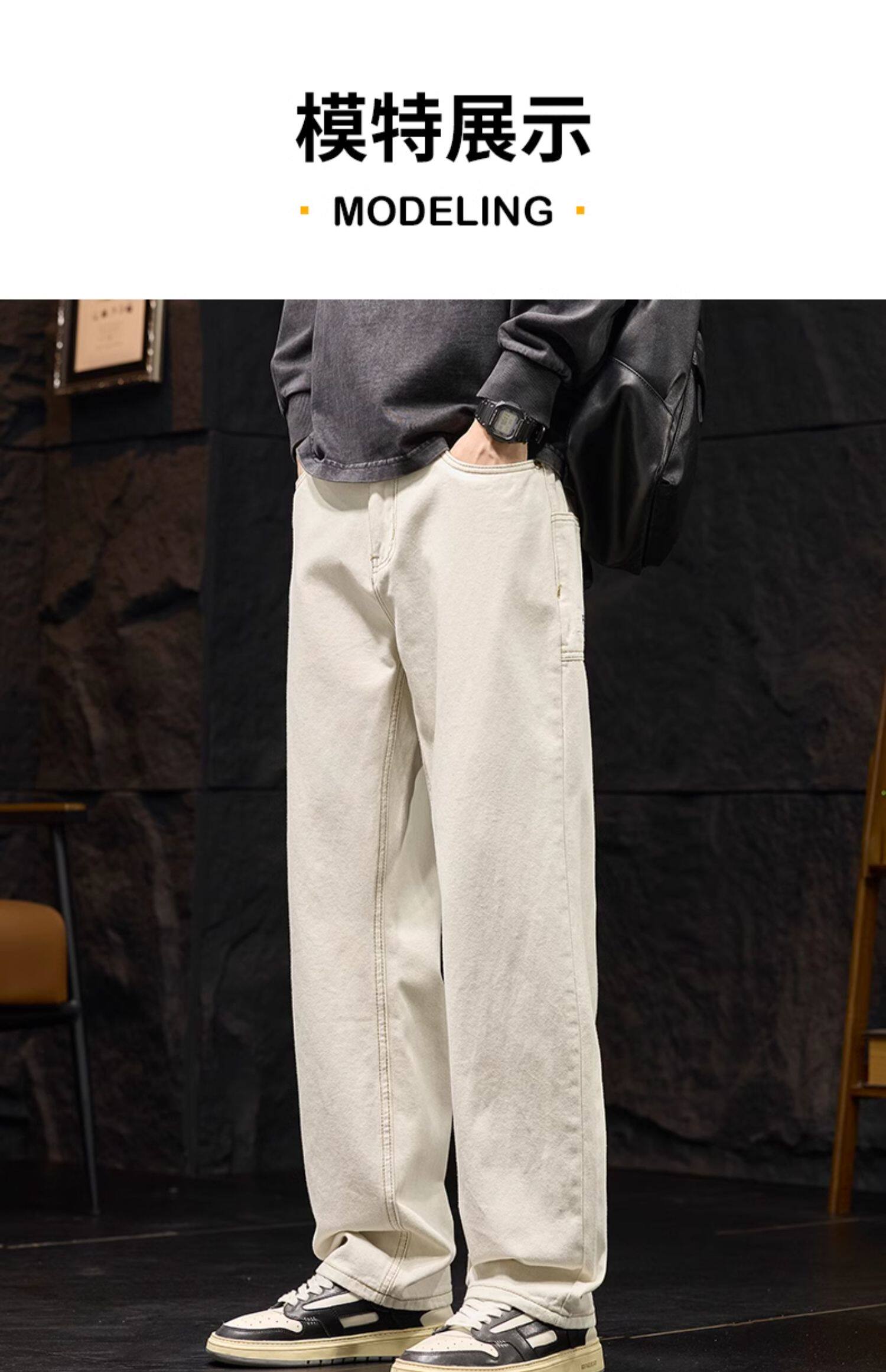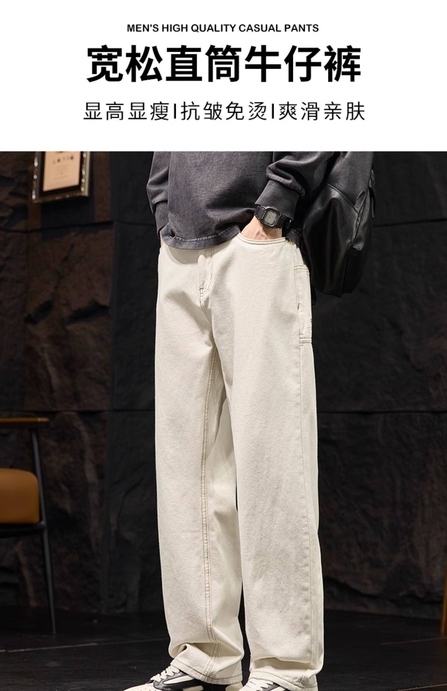 코일 청바지 남성 봄과 가을 패션 브랜드 느슨한 스트레이트 아이보리 캐주얼 긴 바지 2025 봄 새로운스토어 가기