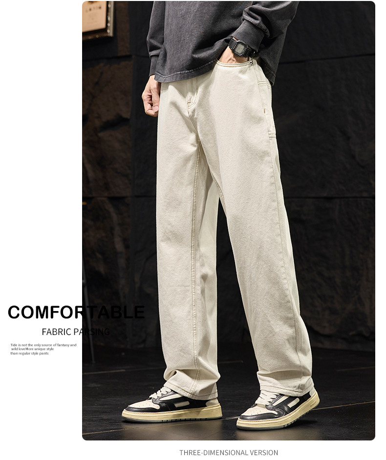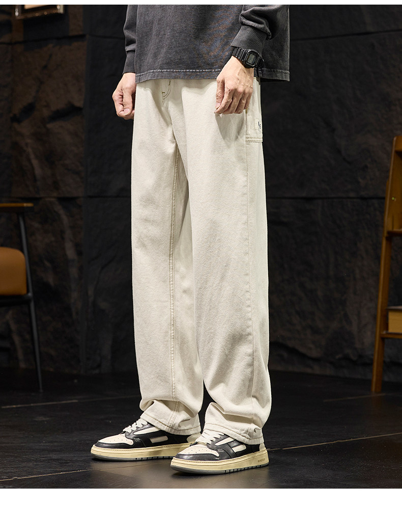 코일 청바지 남성 봄과 가을 패션 브랜드 느슨한 스트레이트 아이보리 캐주얼 긴 바지 2025 봄 새로운