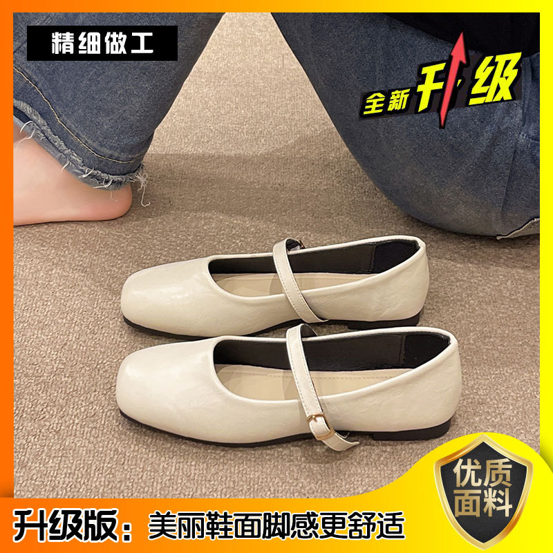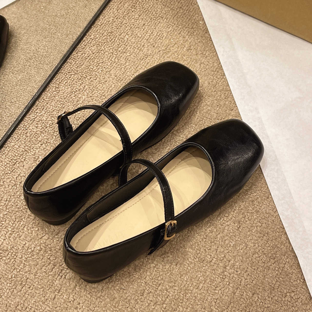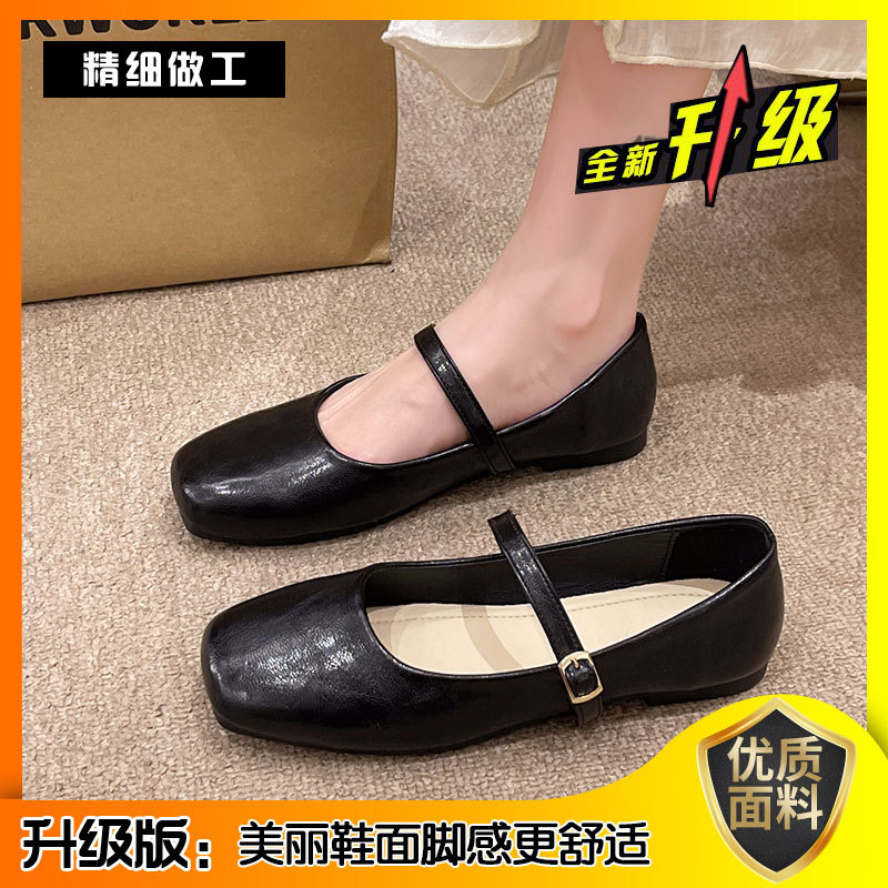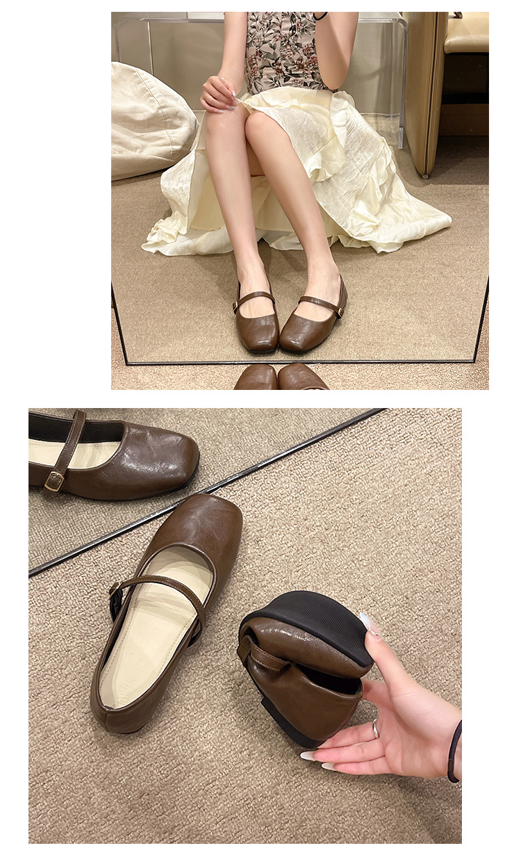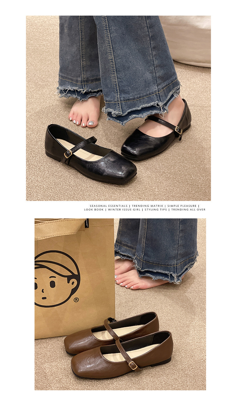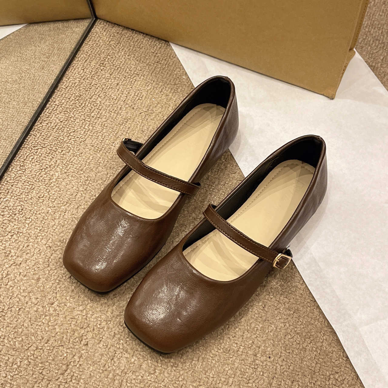 여성을위한 부드러운 사각형 발가락 플랫 신발 2025 새로운 봄, 여름 복고풍 갈색 저녁 스타일 스커트 메리 제인 신발스토어 가기