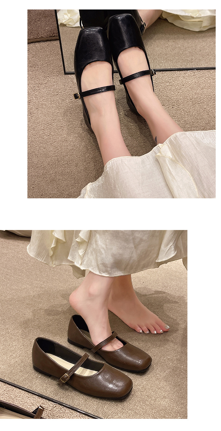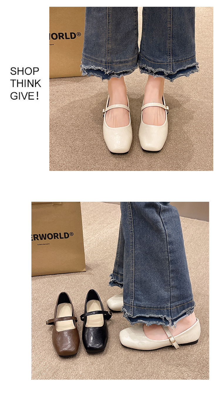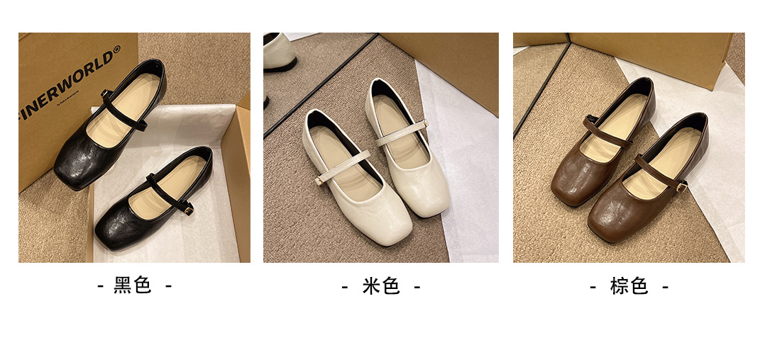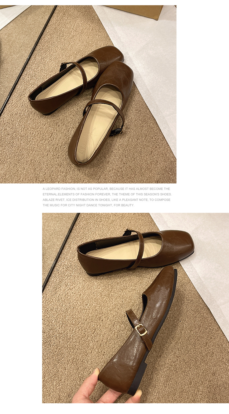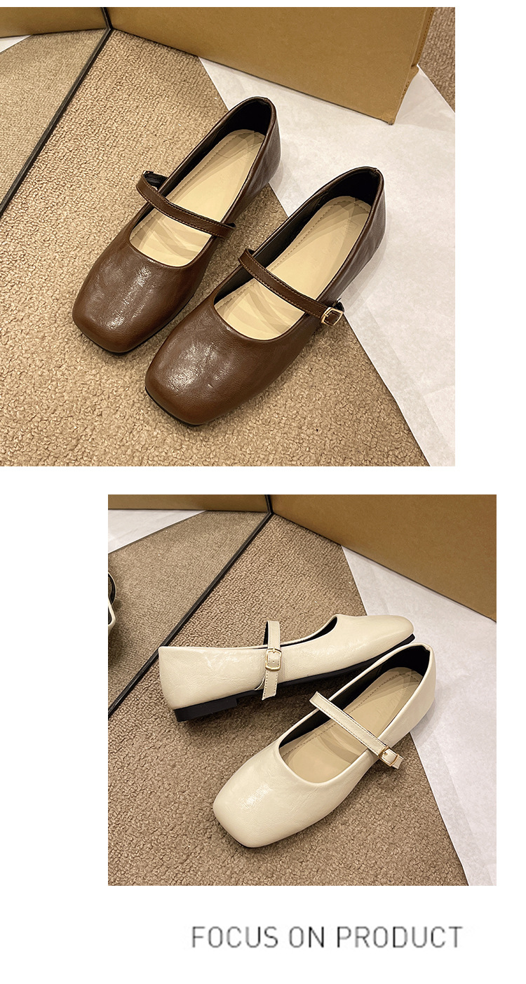 여성을위한 부드러운 사각형 발가락 플랫 신발 2025 새로운 봄, 여름 복고풍 갈색 저녁 스타일 스커트 메리 제인 신발스토어 가기