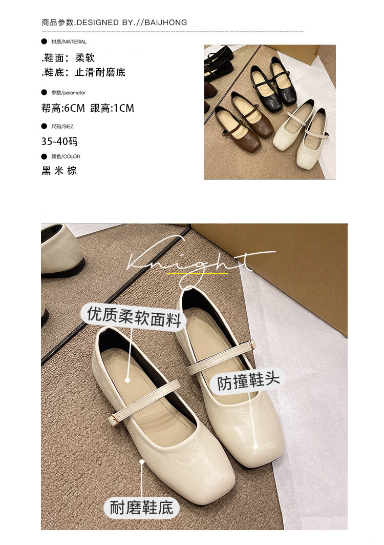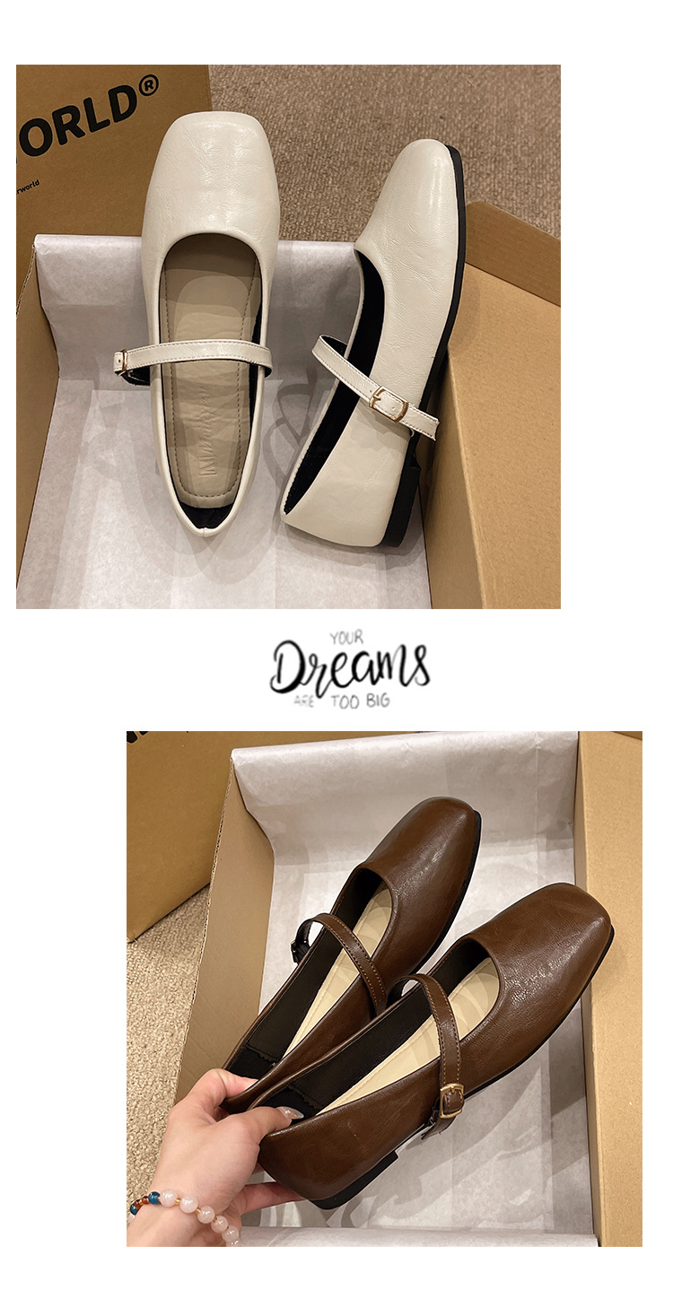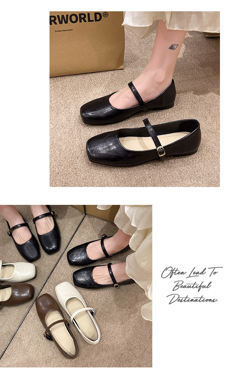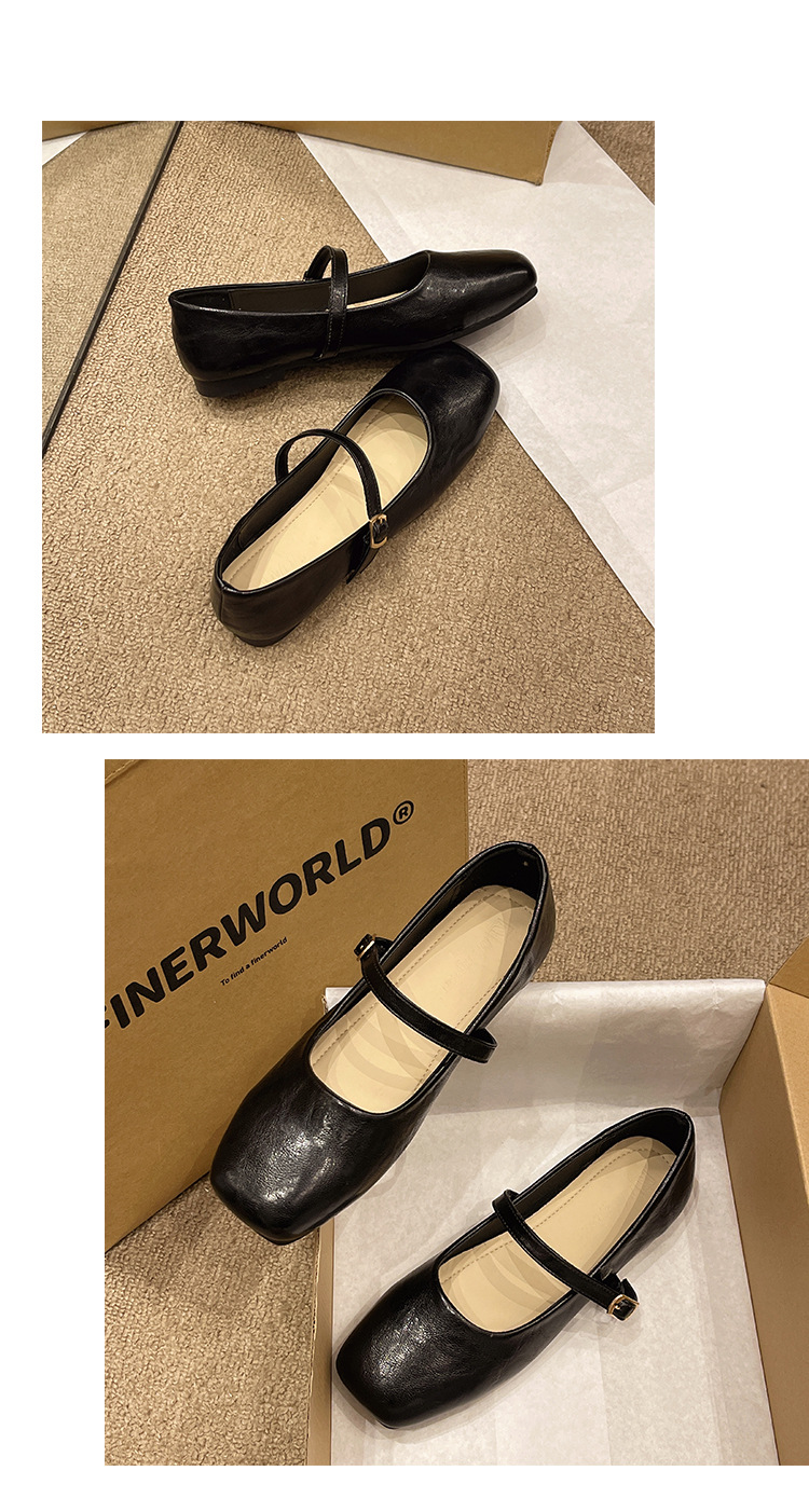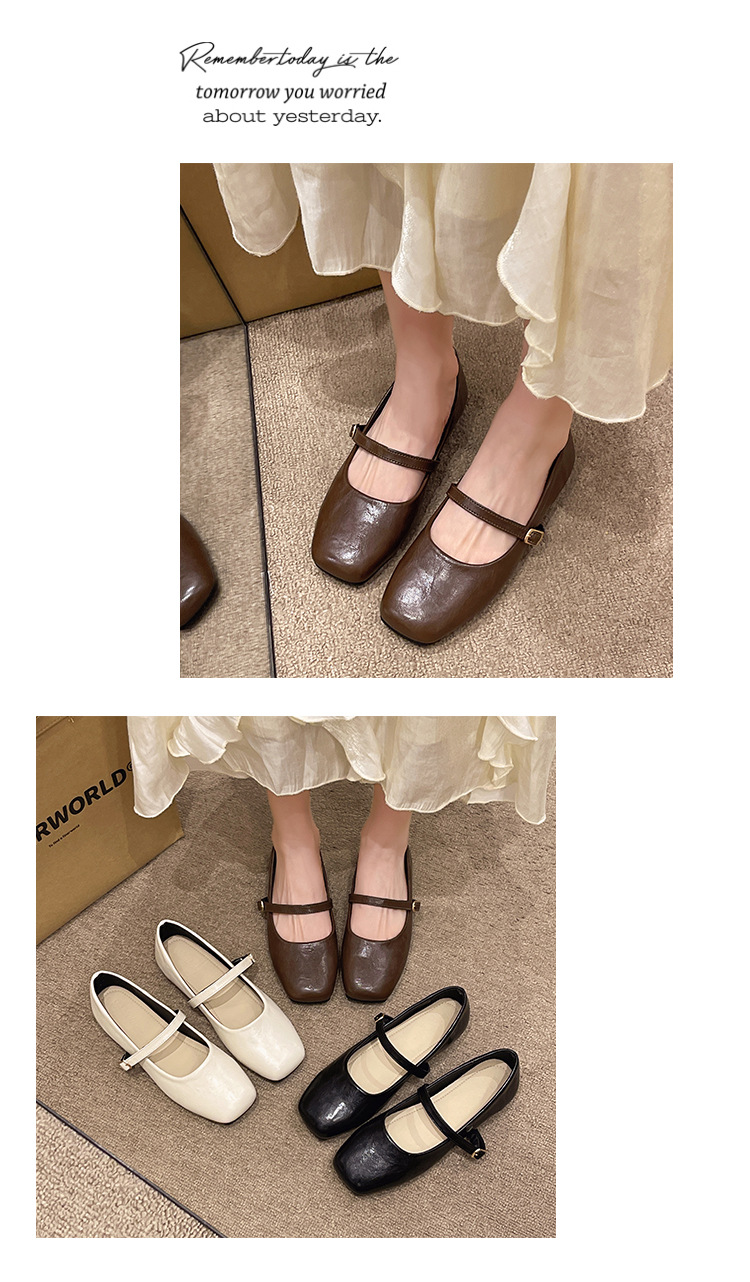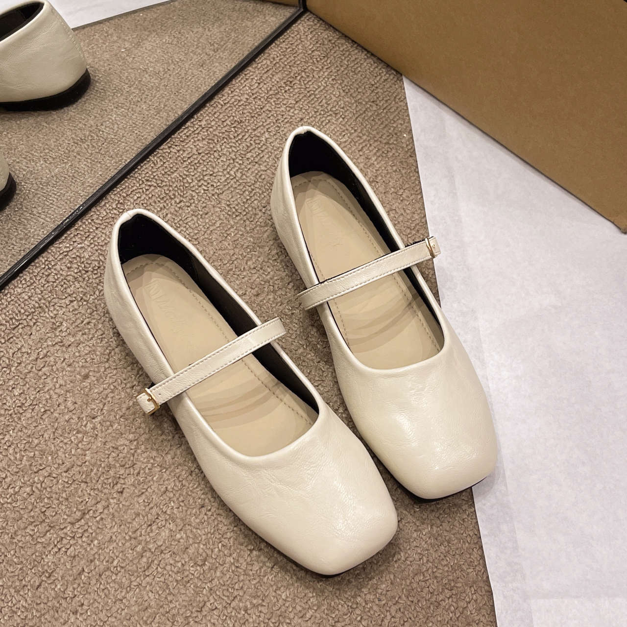 여성을위한 부드러운 사각형 발가락 플랫 신발 2025 새로운 봄, 여름 복고풍 갈색 저녁 스타일 스커트 메리 제인 신발스토어 가기