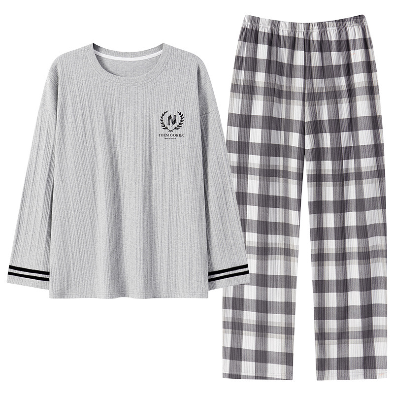 남성용 잠옷 신상 고급 긴팔 긴바지 봄 가을 남성용 심플 청소년 외출복 홈웨어 세트