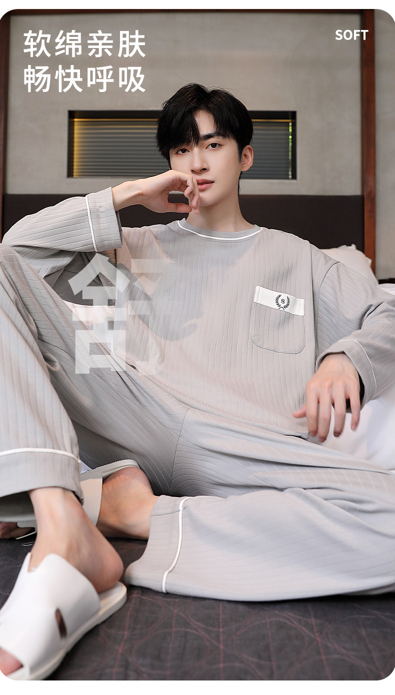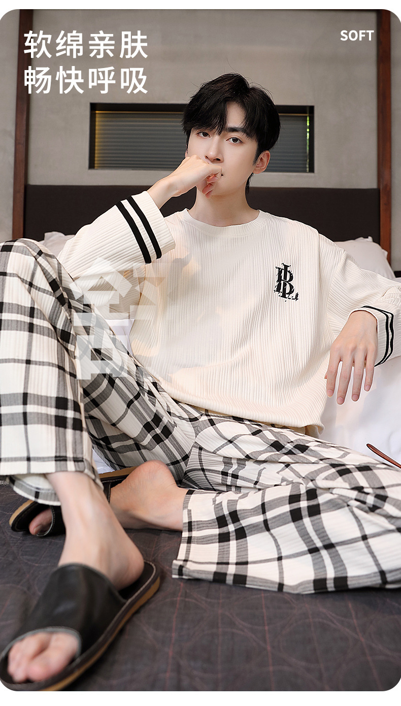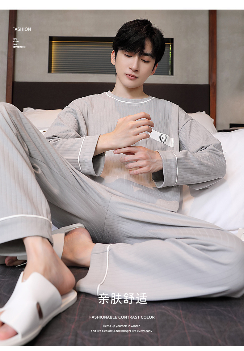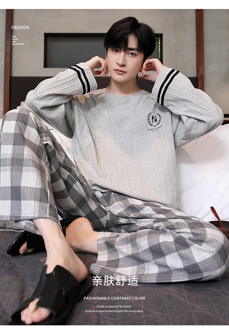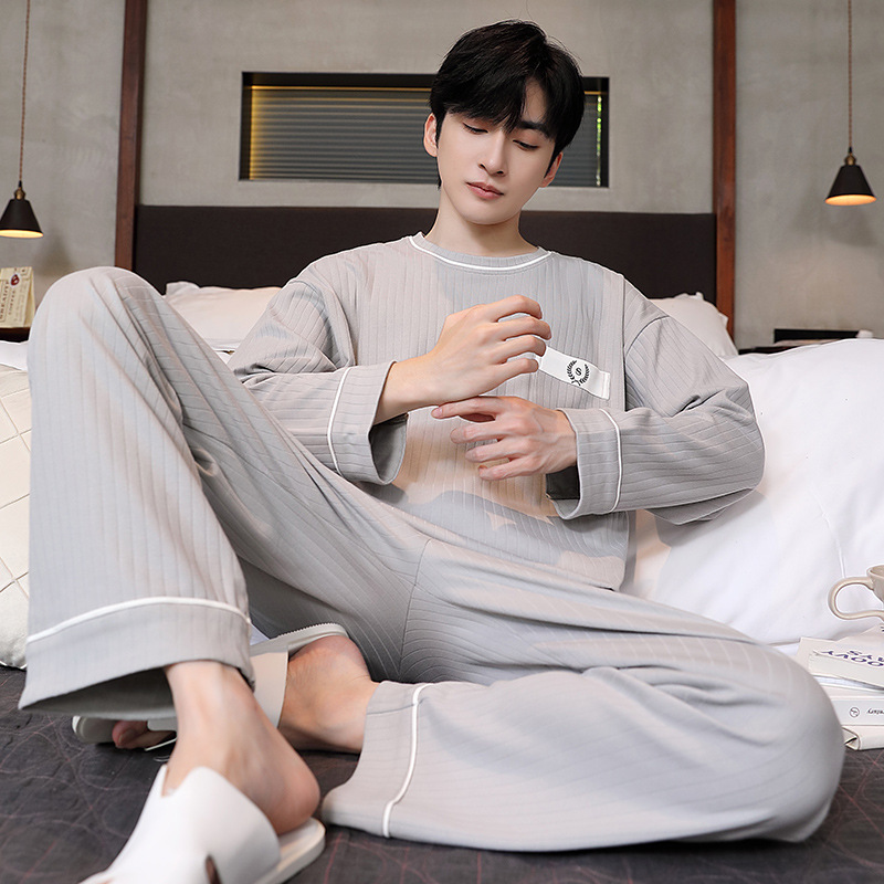 남성용 잠옷 신상 고급 긴팔 긴바지 봄 가을 남성용 심플 청소년 외출복 홈웨어 세트스토어 가기
