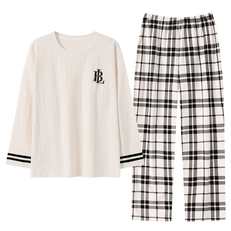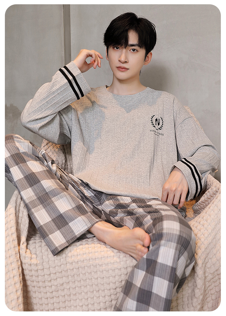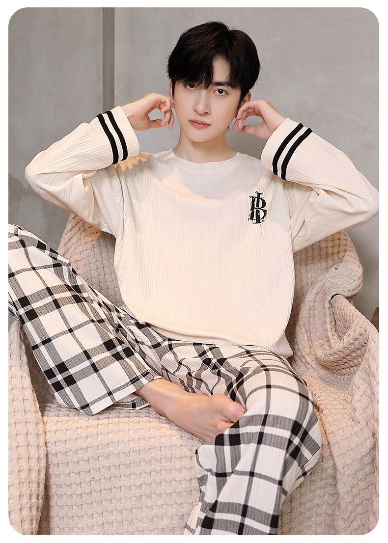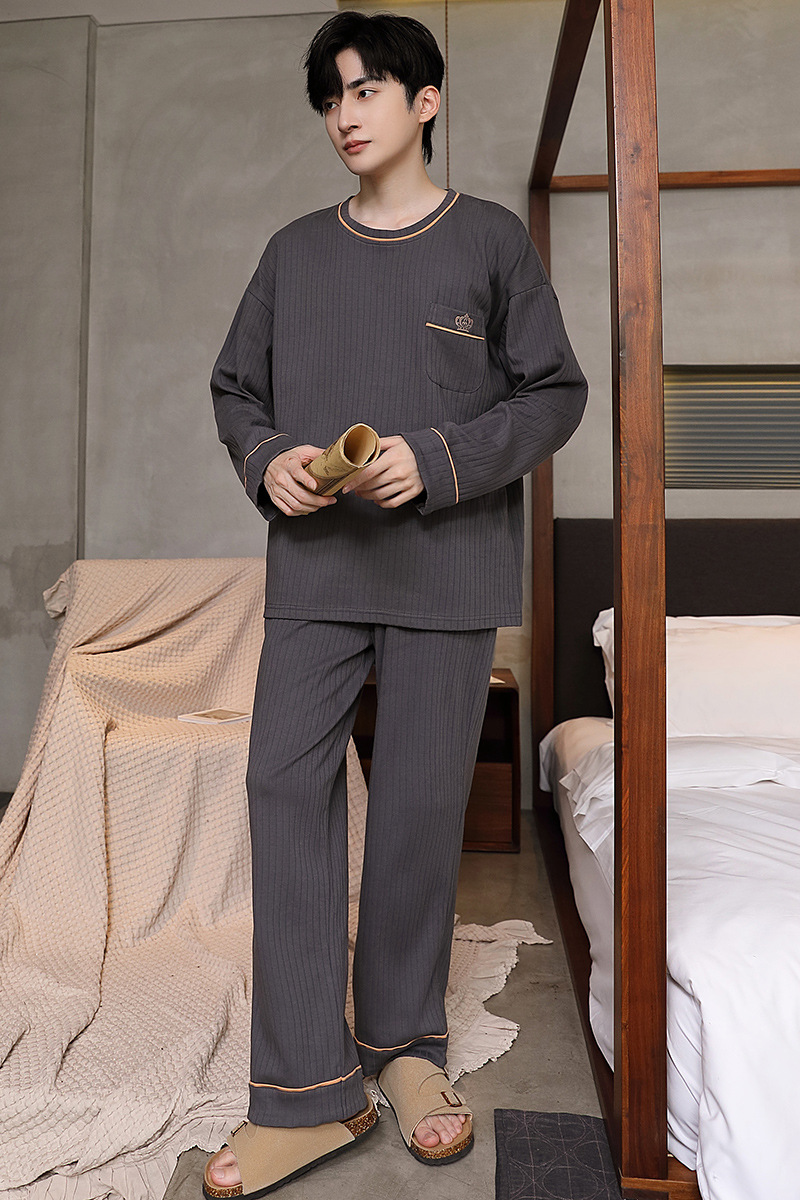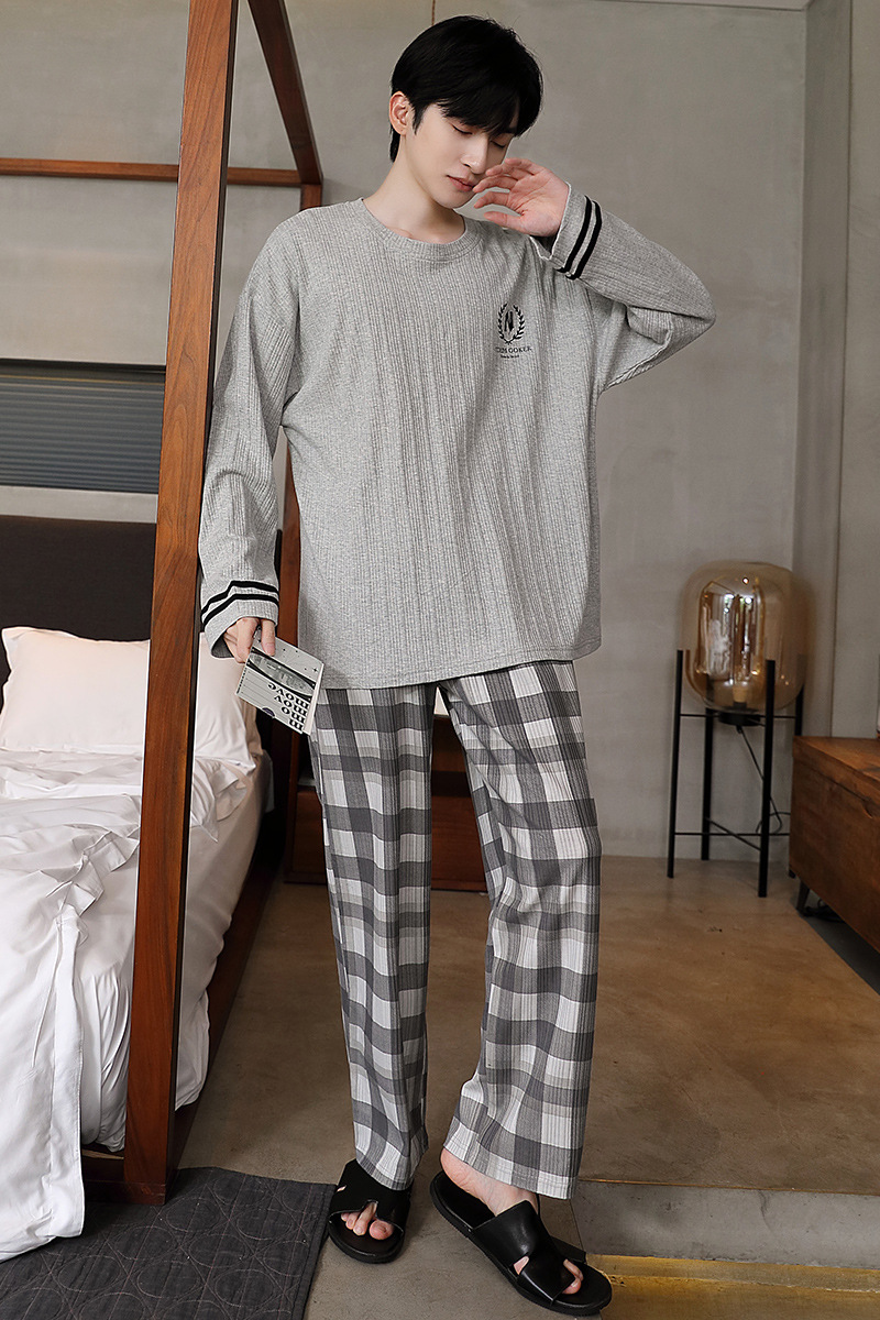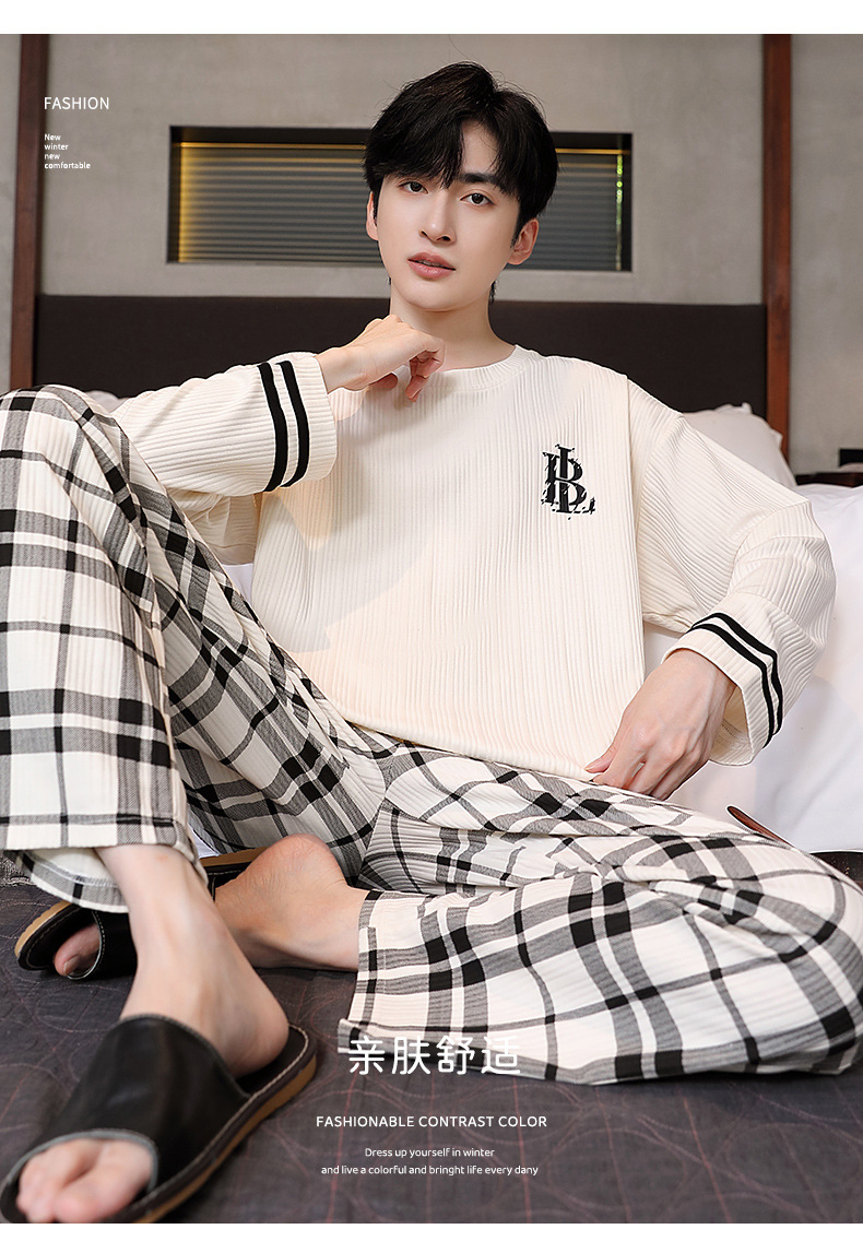 남성용 잠옷 신상 고급 긴팔 긴바지 봄 가을 남성용 심플 청소년 외출복 홈웨어 세트스토어 가기