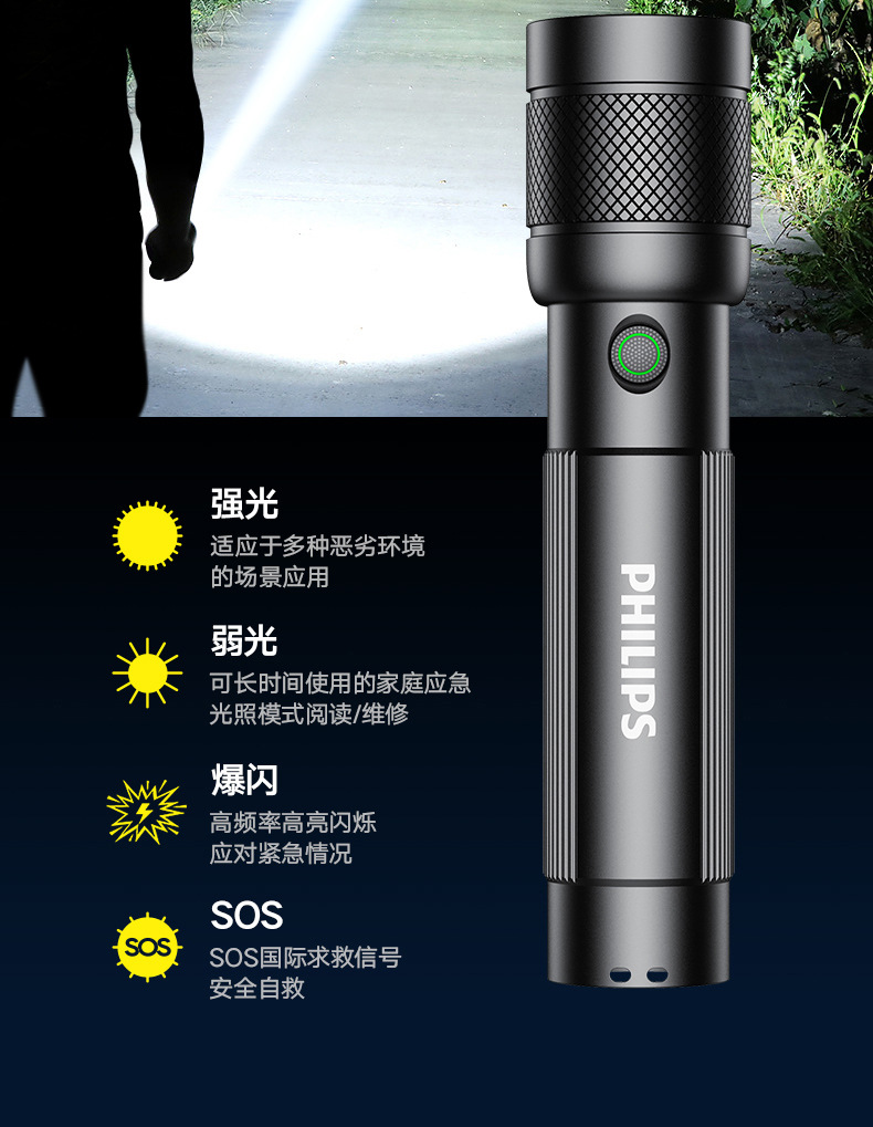 필립스 손전등 가정용 작은 필드 생존 야외 조명 비상 조명 SFL247스토어 가기