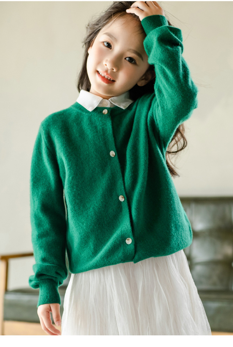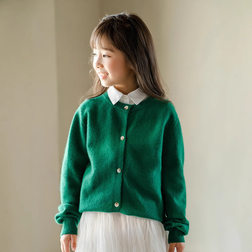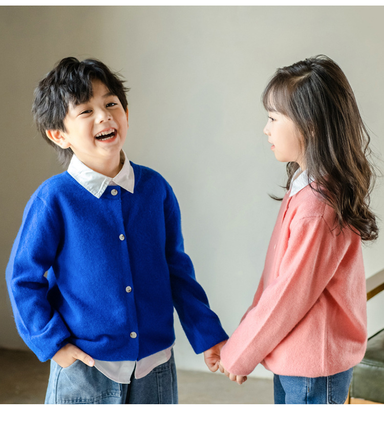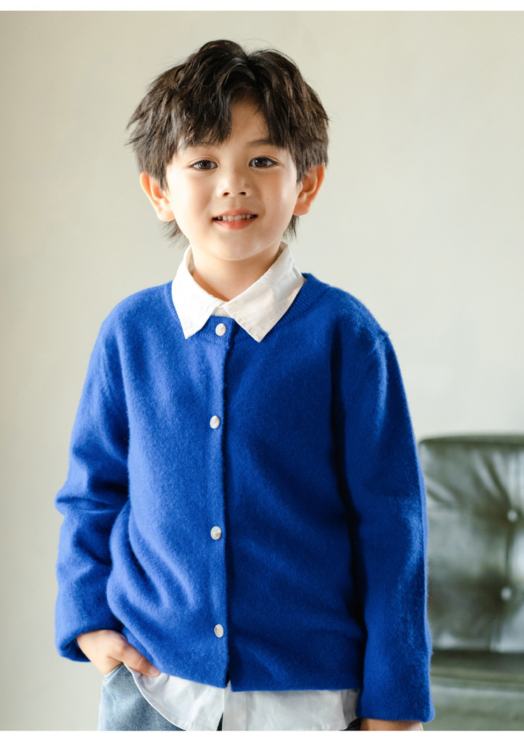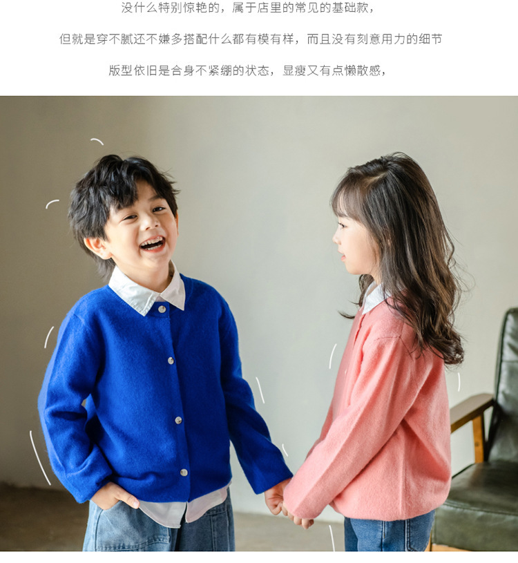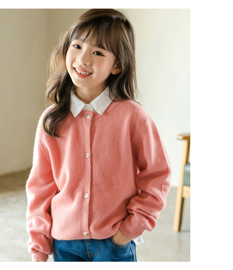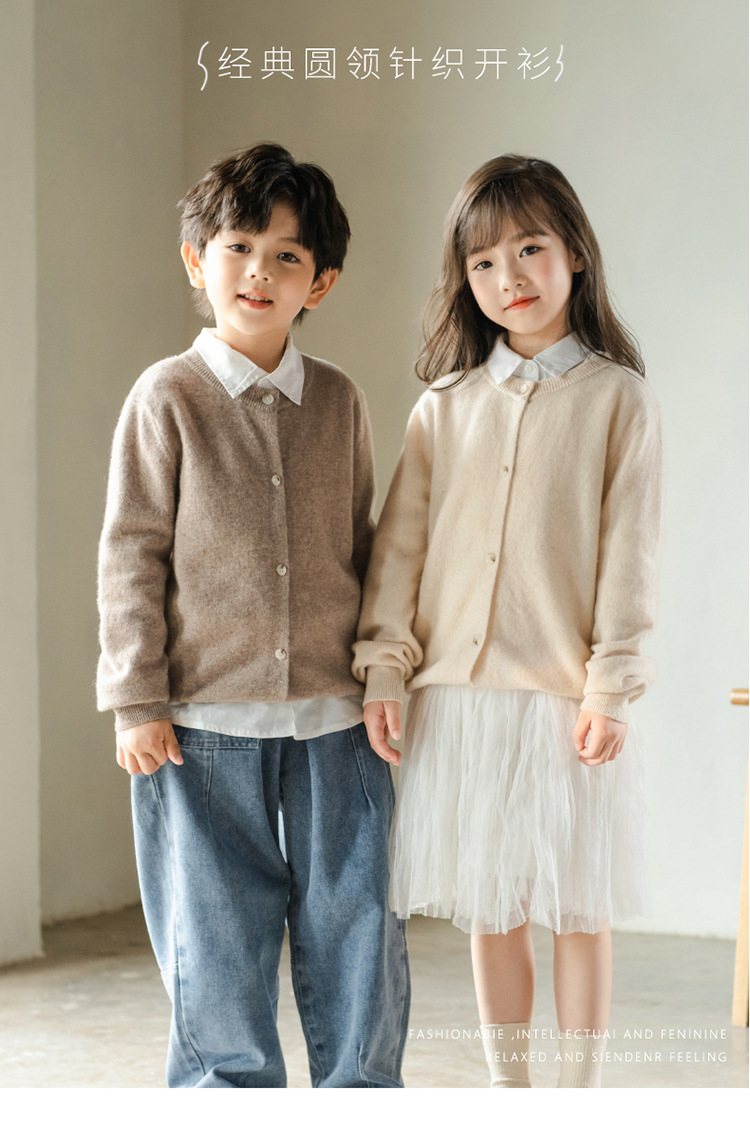 남녀 어린이 크루 넥 퓨어 울 니트 카디건 가을과 겨울 새로운 캐주얼 올 매치 재킷 큰 어린이 스웨터스토어 가기