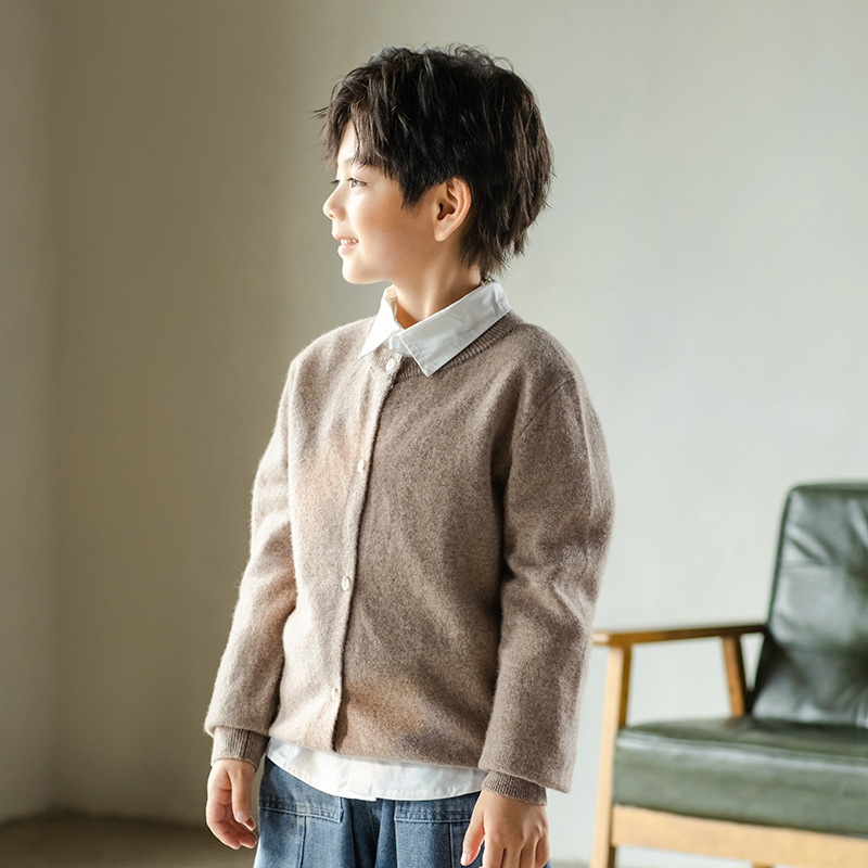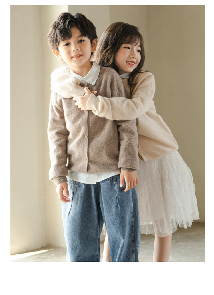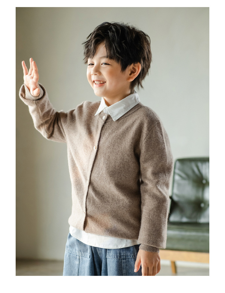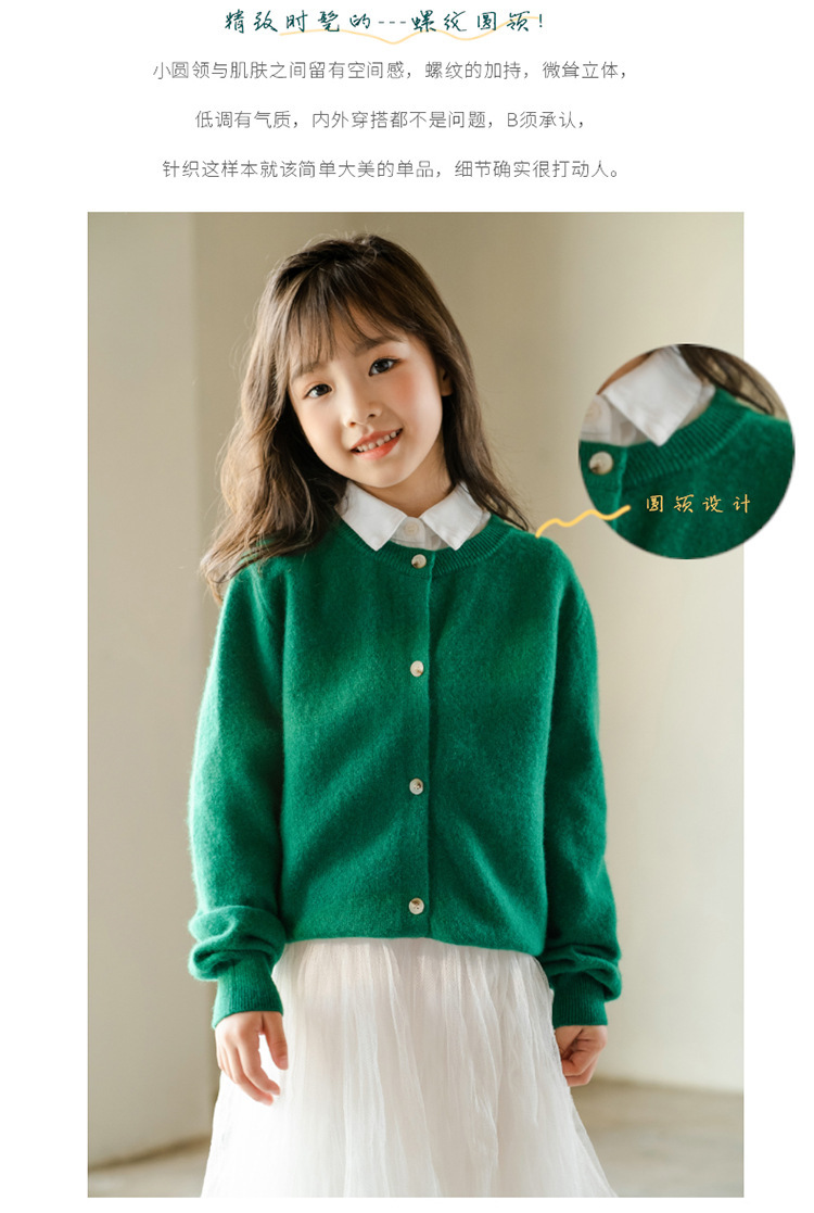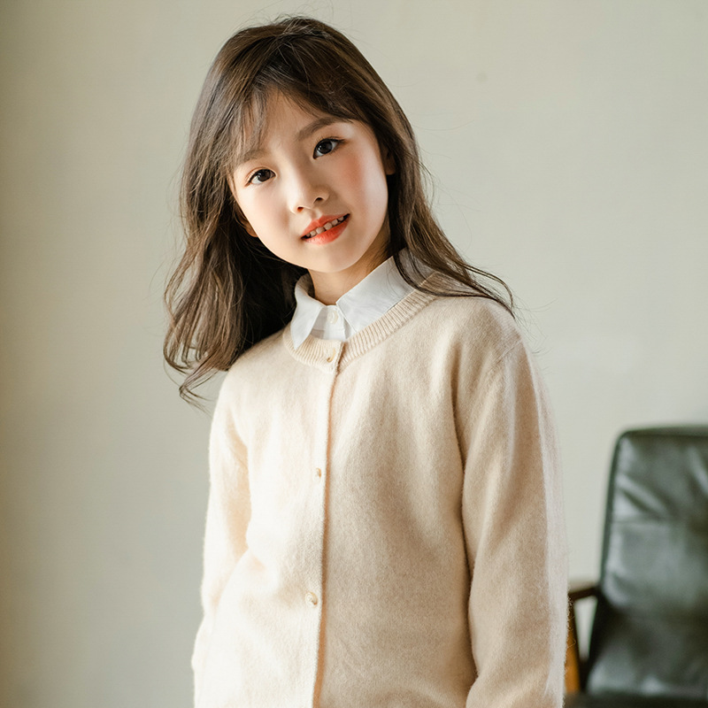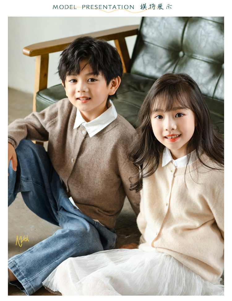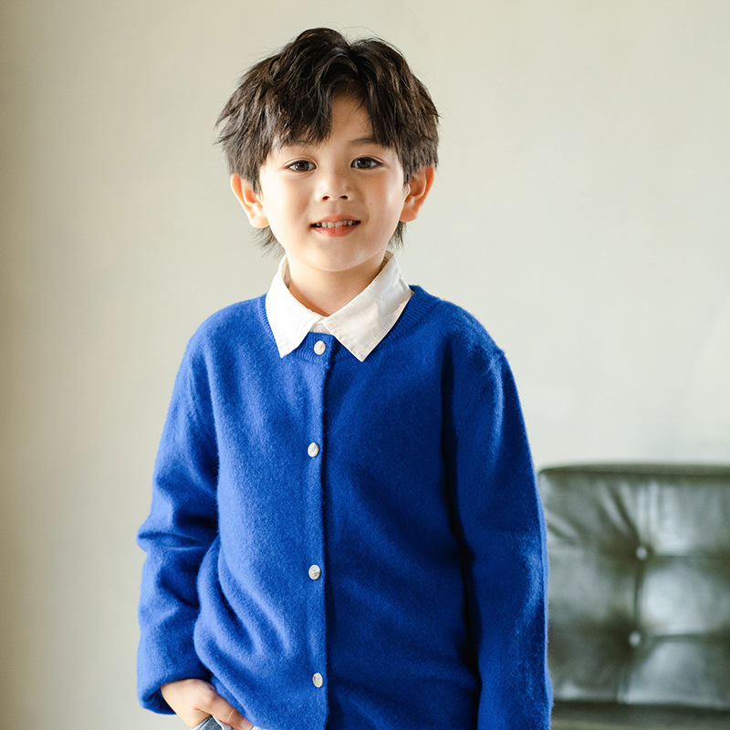 남녀 어린이 크루 넥 퓨어 울 니트 카디건 가을과 겨울 새로운 캐주얼 올 매치 재킷 큰 어린이 스웨터스토어 가기