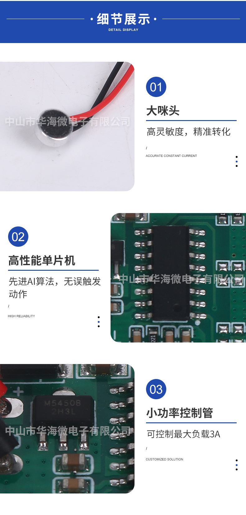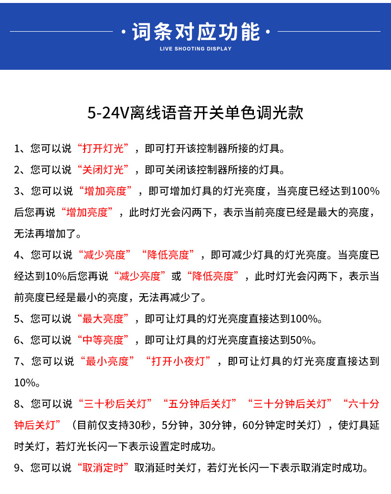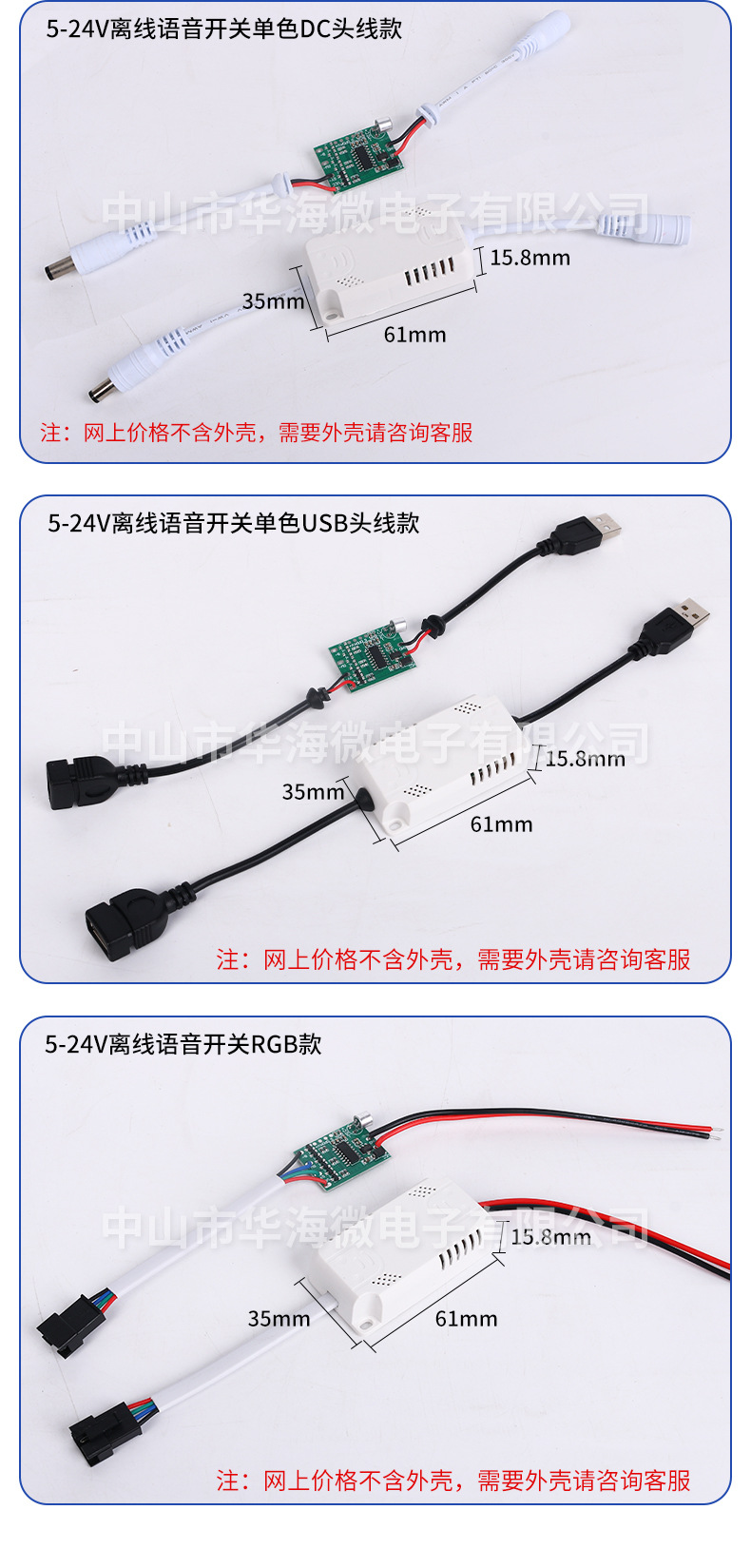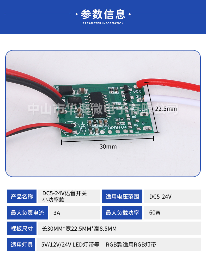 라이트 바 음성 스위치 저전력 회로 기판 저전압 음성 스위치로 음성 라이트 스위치 DC5-24V 빛