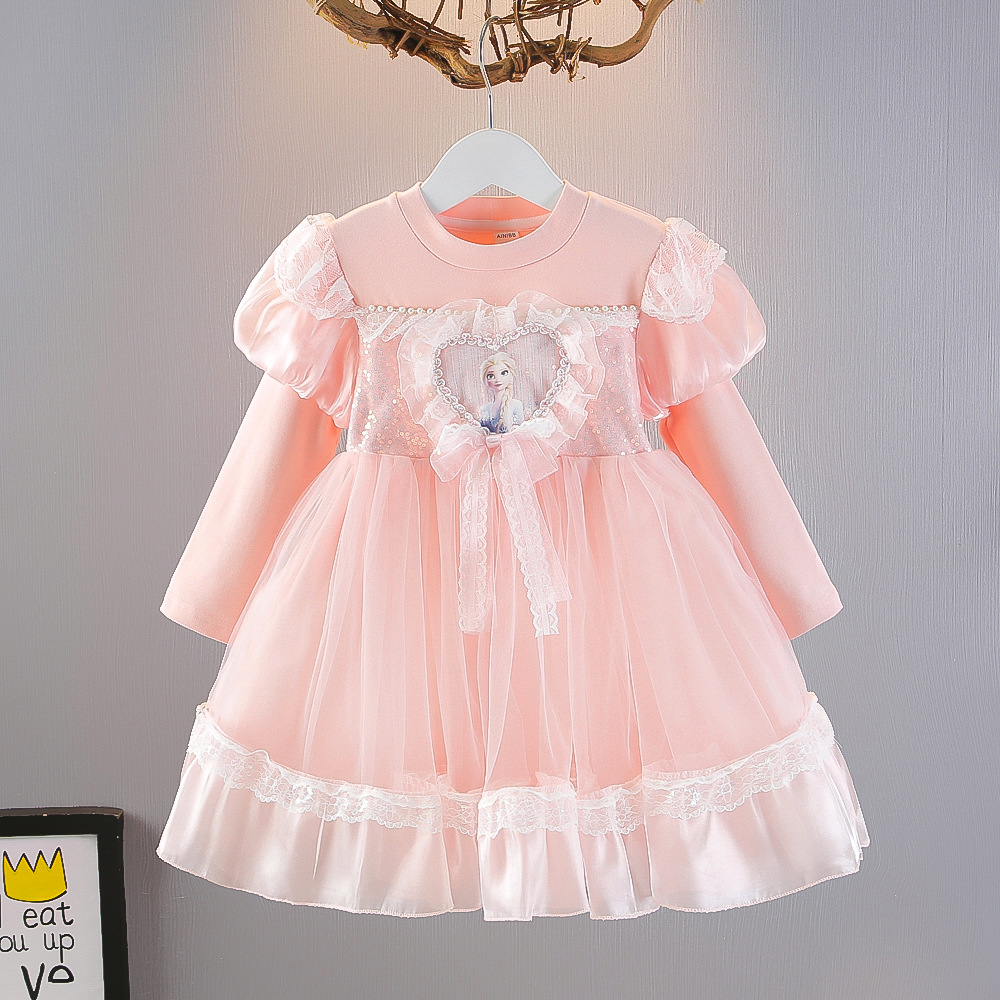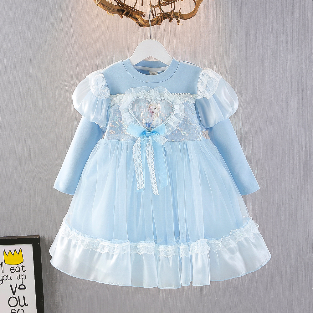 어린이 의류 도매 소녀 봄과 가을 Aisha 원피스 2025 어린이 Aisha 거품 소매 메쉬 공주 스커트스토어 가기