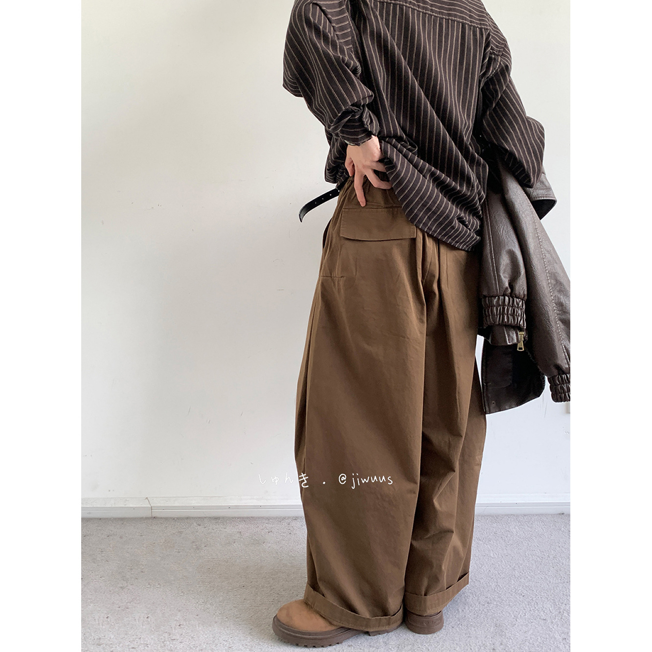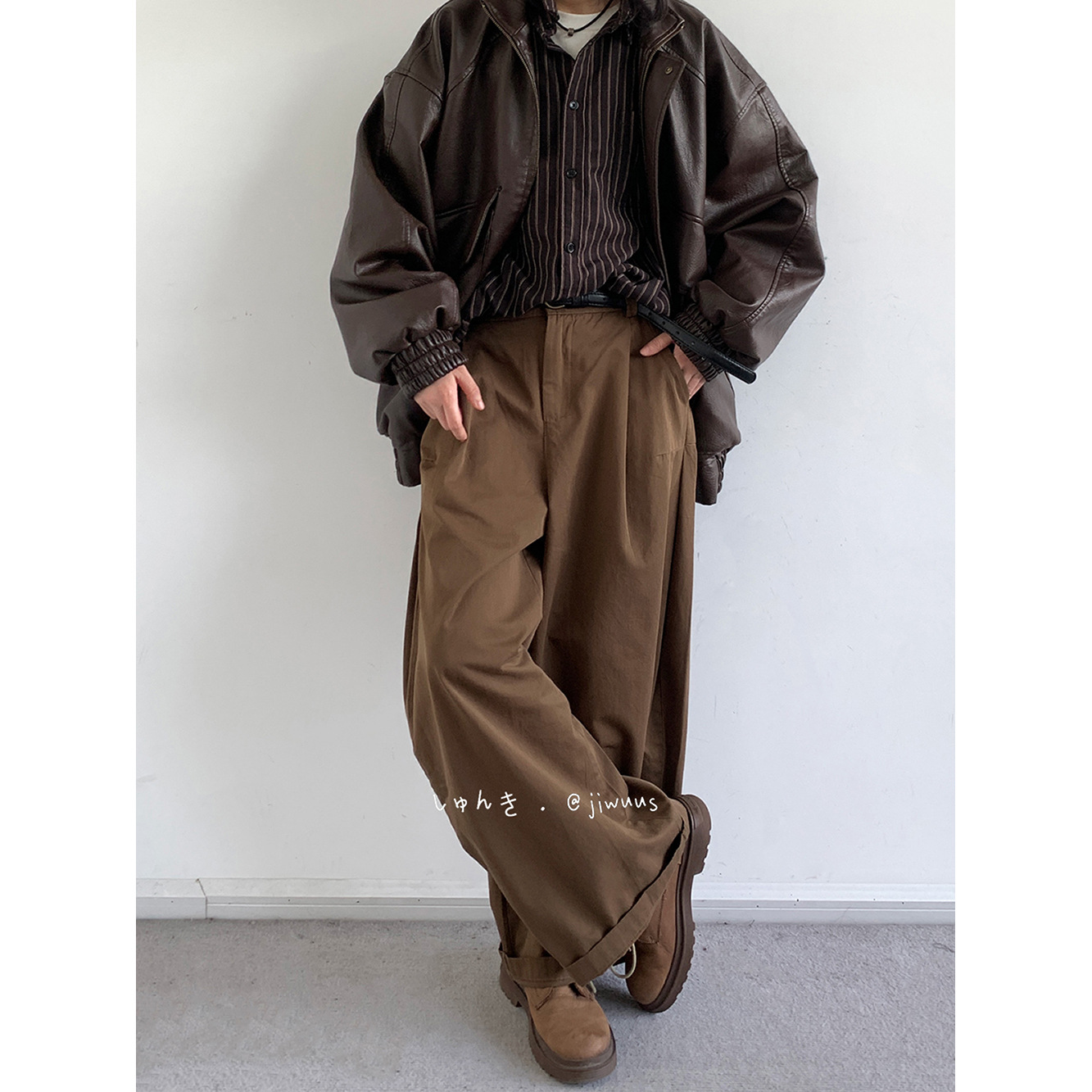 일본식 바지 남자 가을과 겨울 바지 레트로 높은 허리 슬리밍 스트레이트 레그 넓은 다리 바지 느슨한 캐주얼 긴 바지스토어 가기