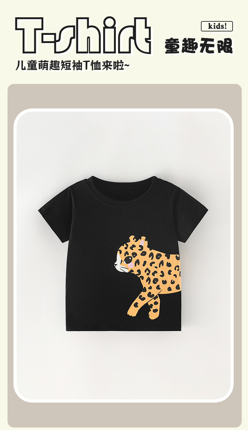 국경 간 말위 소녀 티셔츠 여름 새로운 유럽과 미국 어린이 둥근 목 짧은 소매 귀여운 프린트 아동용 탑
